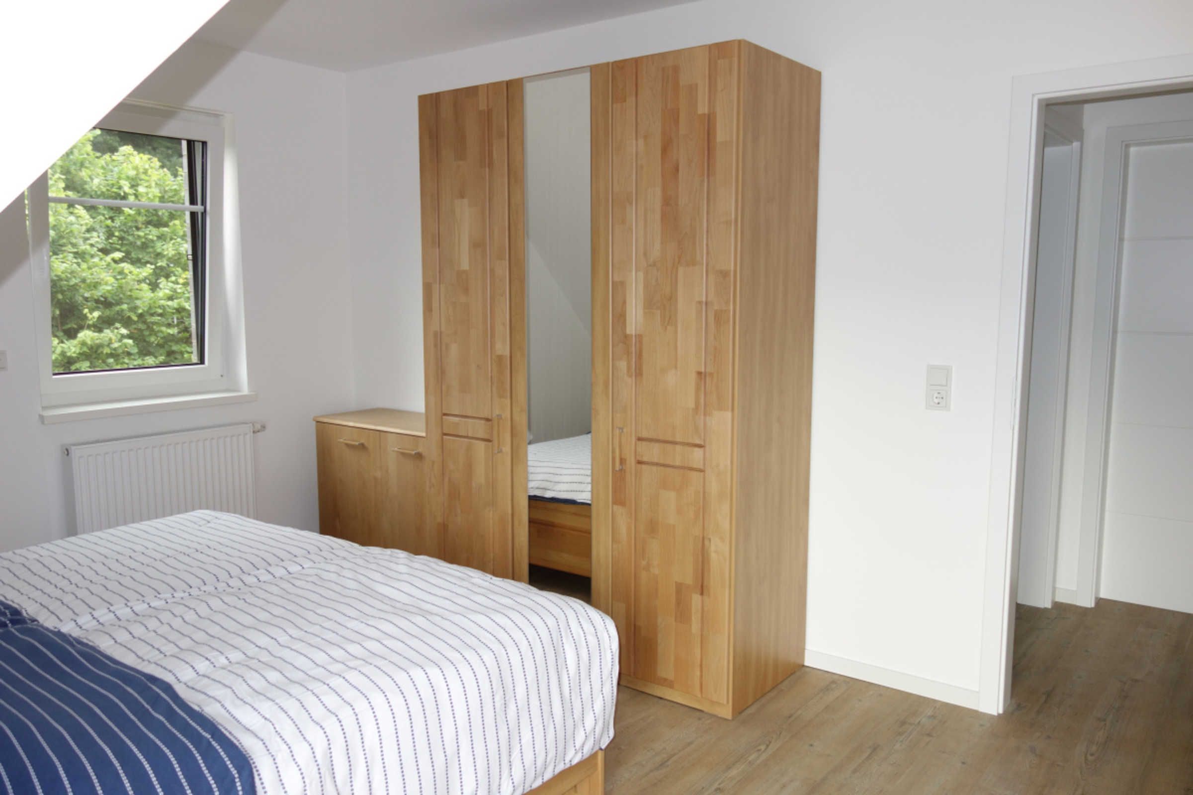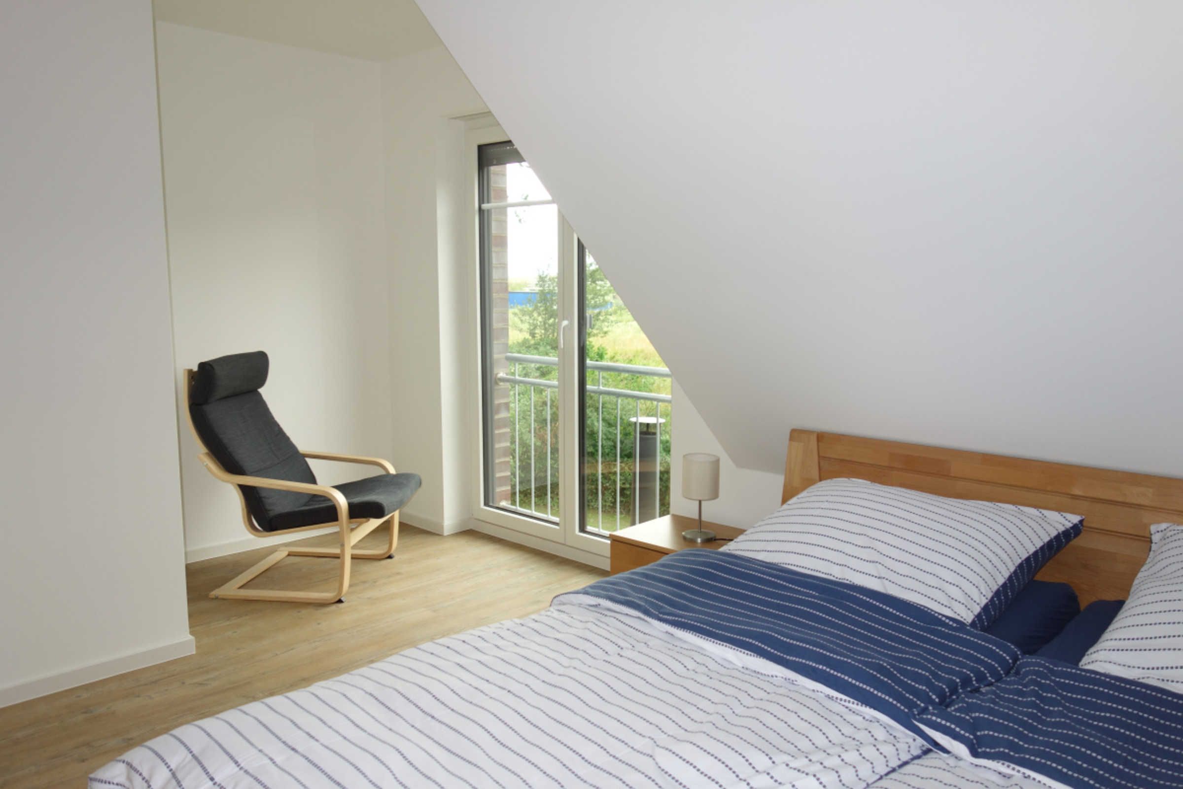 Eines der beiden Schlafzimmer verfügt über ein Doppelbett, das andere über zwei Einzelbetten. In einem Schlafzimmer ist eine kleine Leseecke mit Stuhl und bodentiefem Fenster. In dem 2.Schlafzimmer steht zusätzlich ein Flachbildfernseher.
