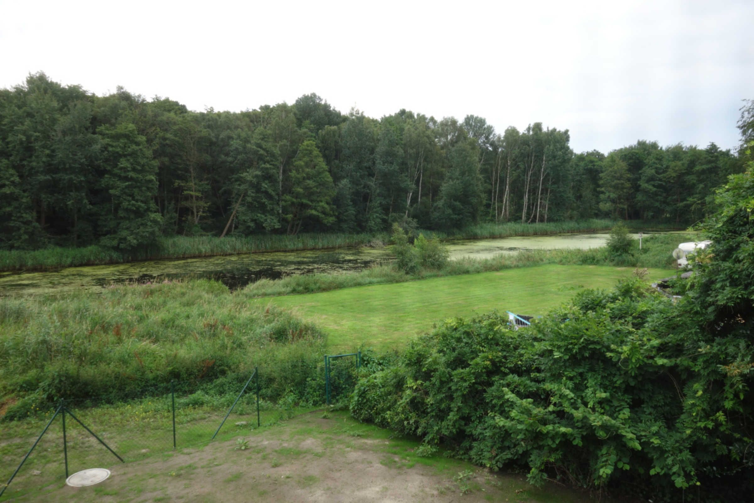 Auf der Grünfläche gibt es eine Grillmöglichkeit, eine Terrasse mit Gartenmöbeln und einen PKW-Stellplatz.