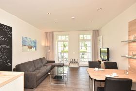 Sie wohnen in einer stilvoll eingerichteten Wohnung mit Blick zur Ostsee, den Kreidefelsen und einer Minute Gehweg zum Strand.