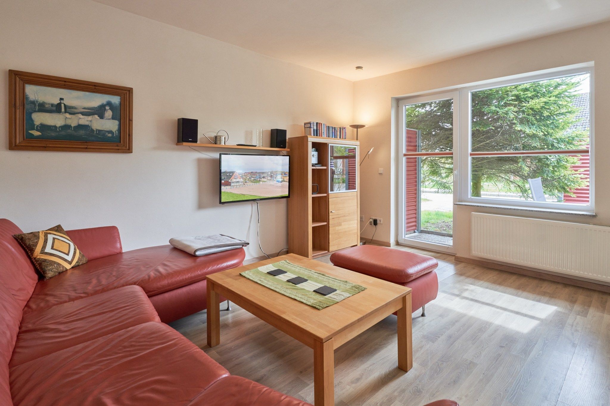 Die 2-Zimmer-Ferienwohnung verfügt über ein Wohnzimmer mit einem großen Ledersofa, außerdem gibt es einen 40 SAT-TV sowie einen WLAN-Internetanschluss.