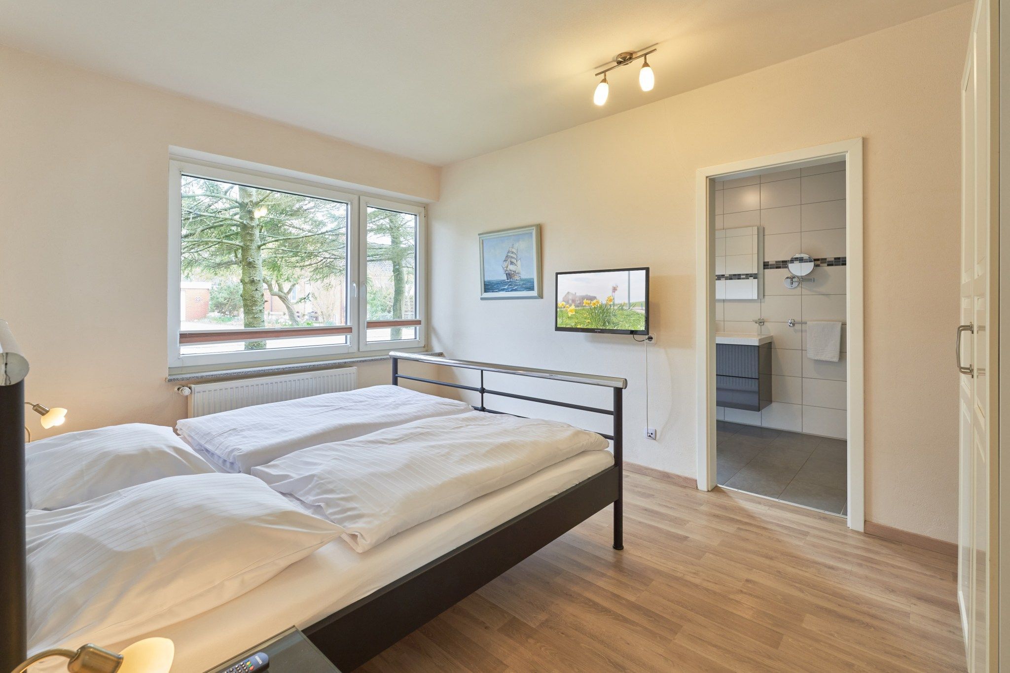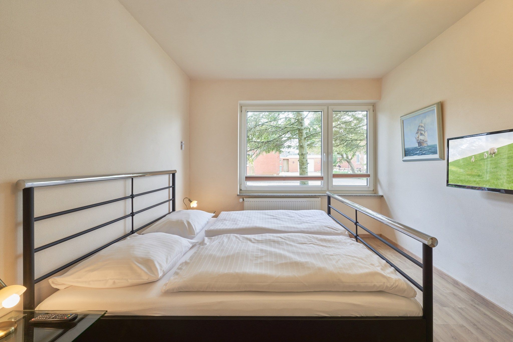 Das Schlafzimmer ist mit einem Doppelbett (180x200 cm), einem Kleiderschrank und einem 32 SAT-TV ausgestattet.