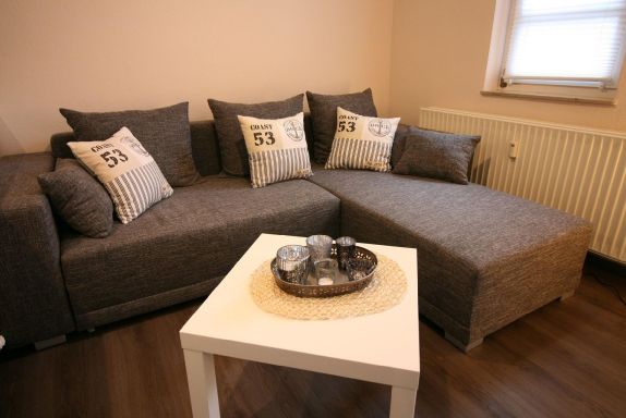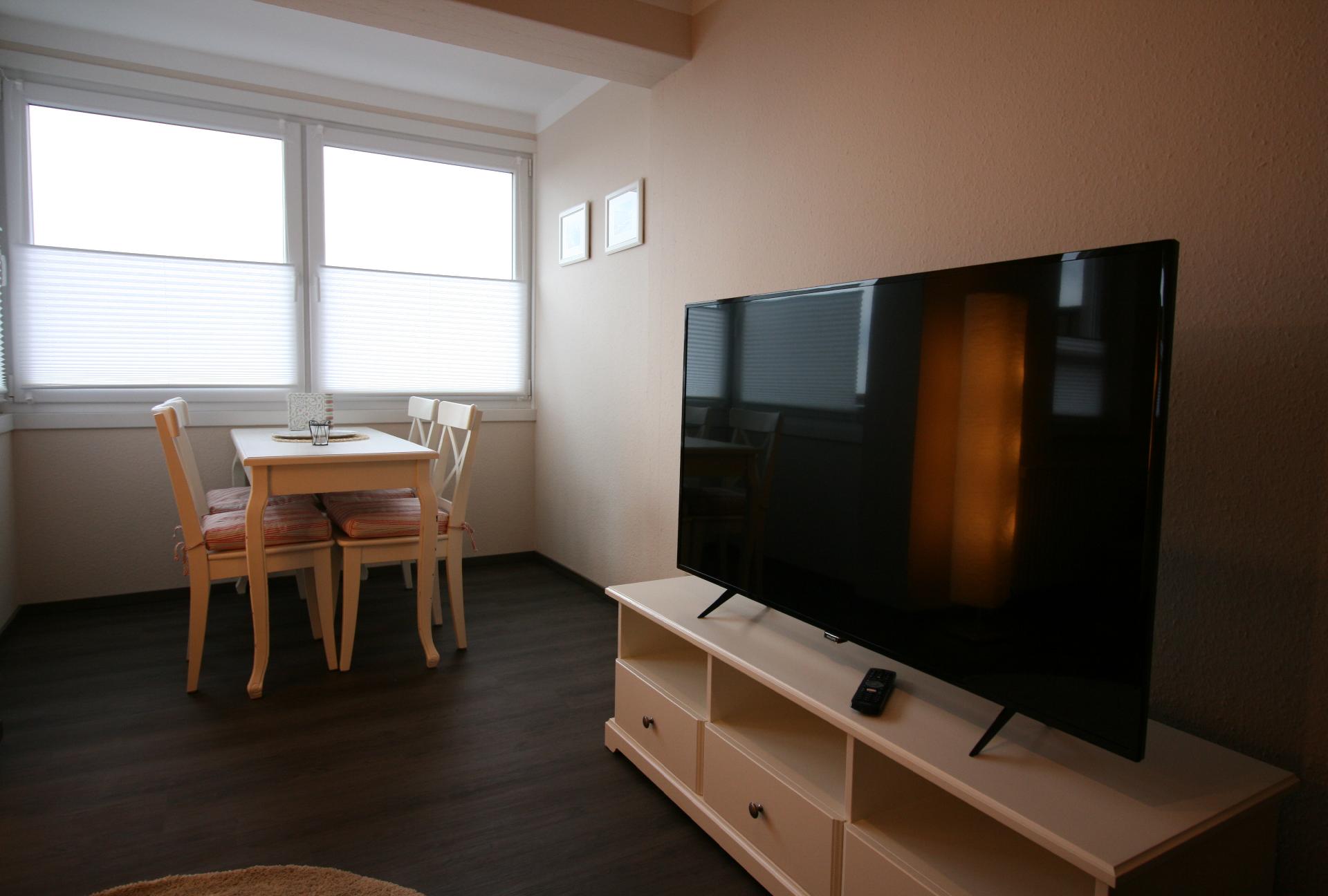 Wohnen: Analog-TV; Doppelsofa; DVD-Player; Musikanlage; TV