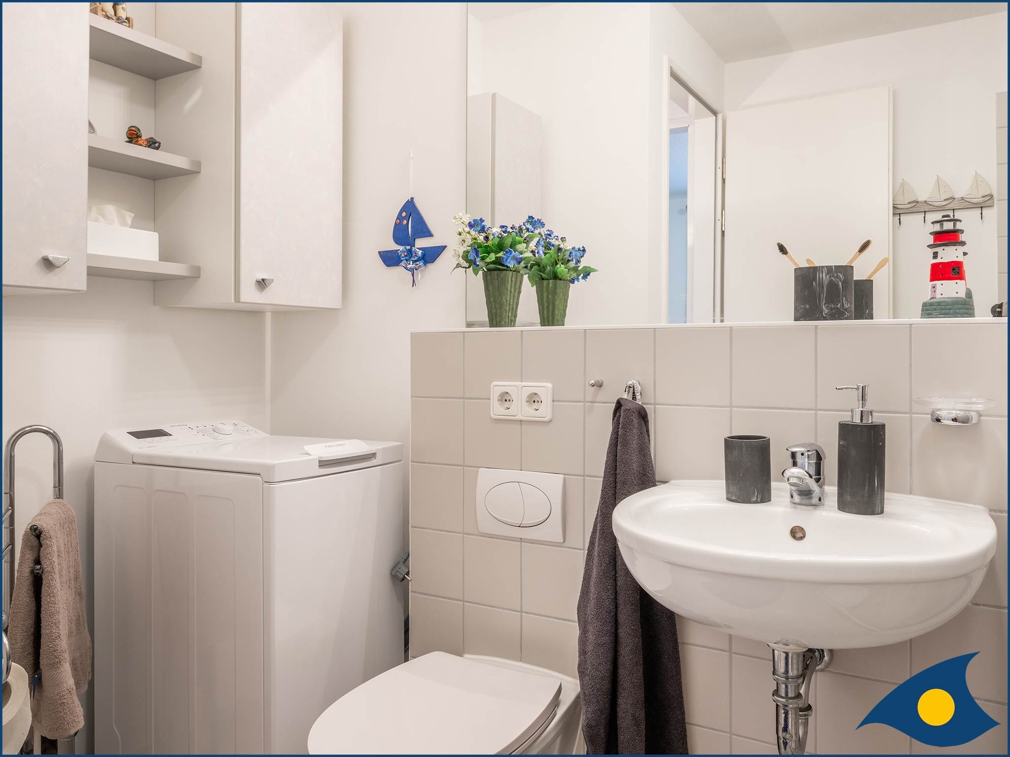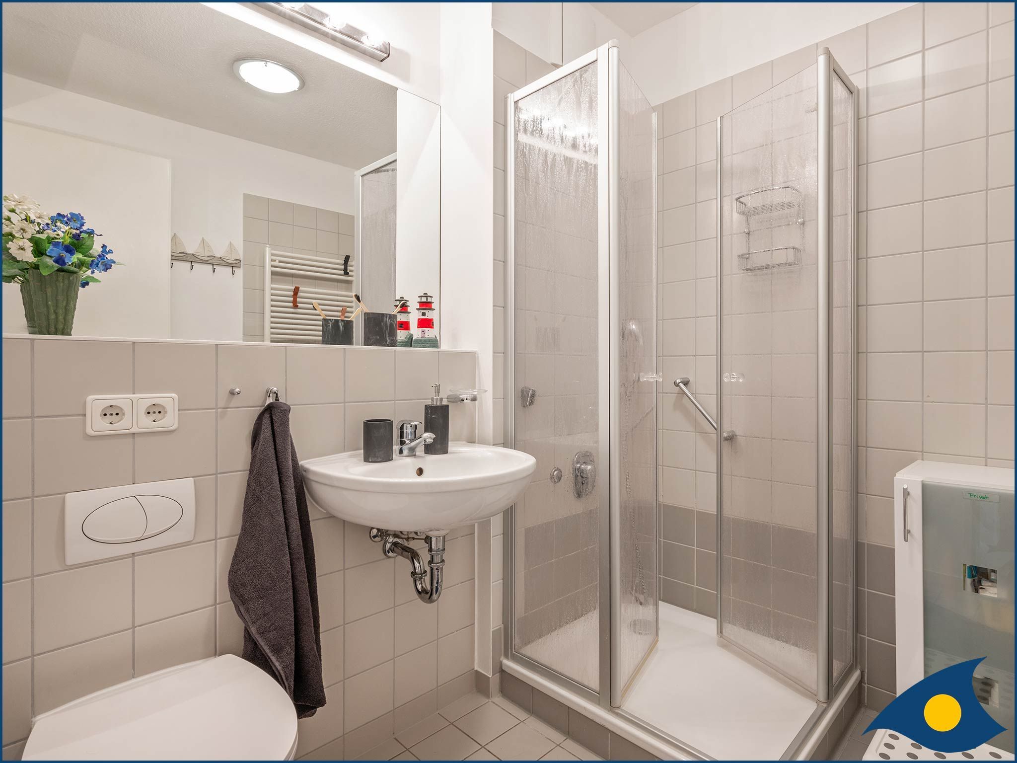 • Badezimmer mit Dusche, Waschmaschine
