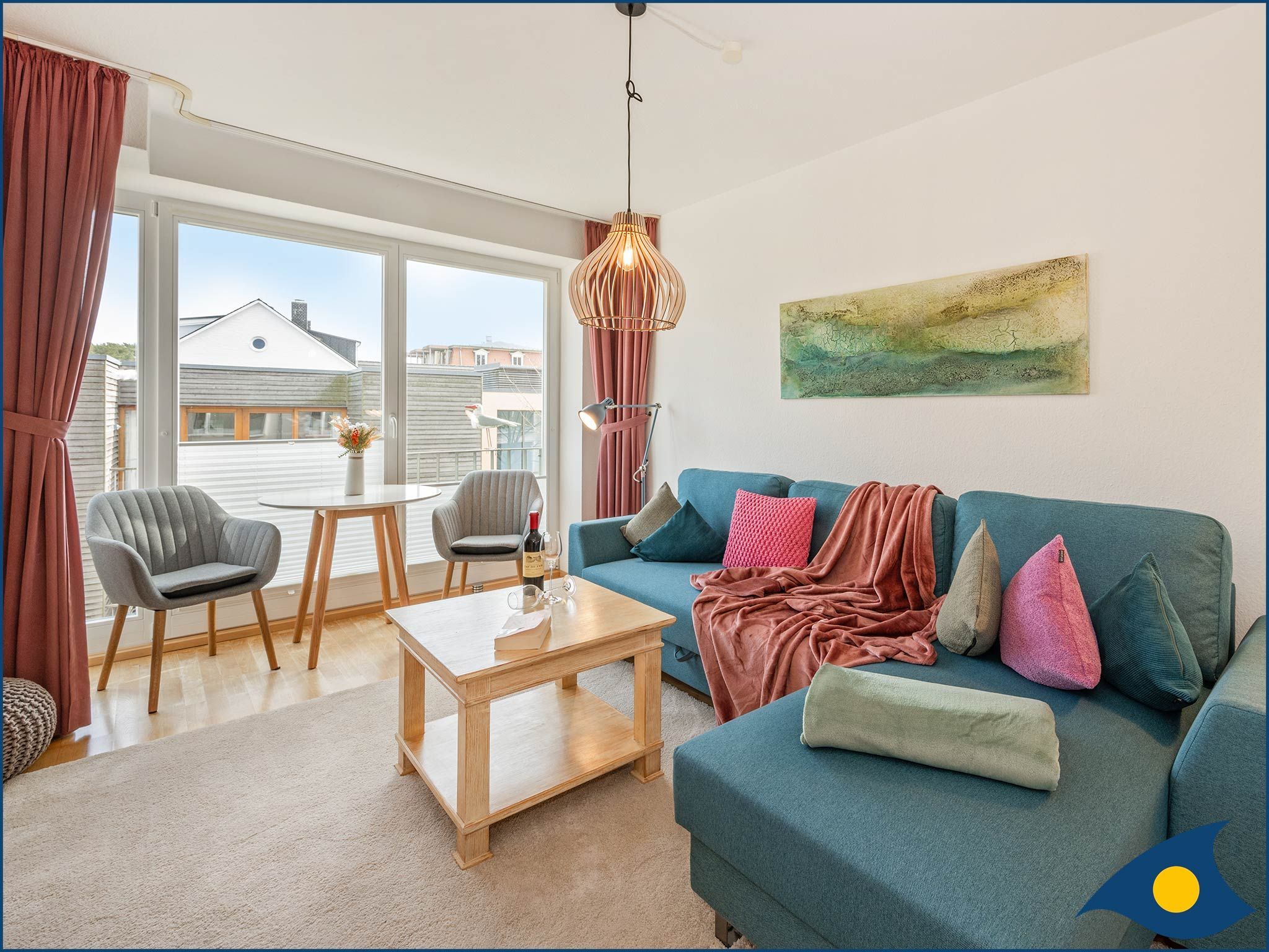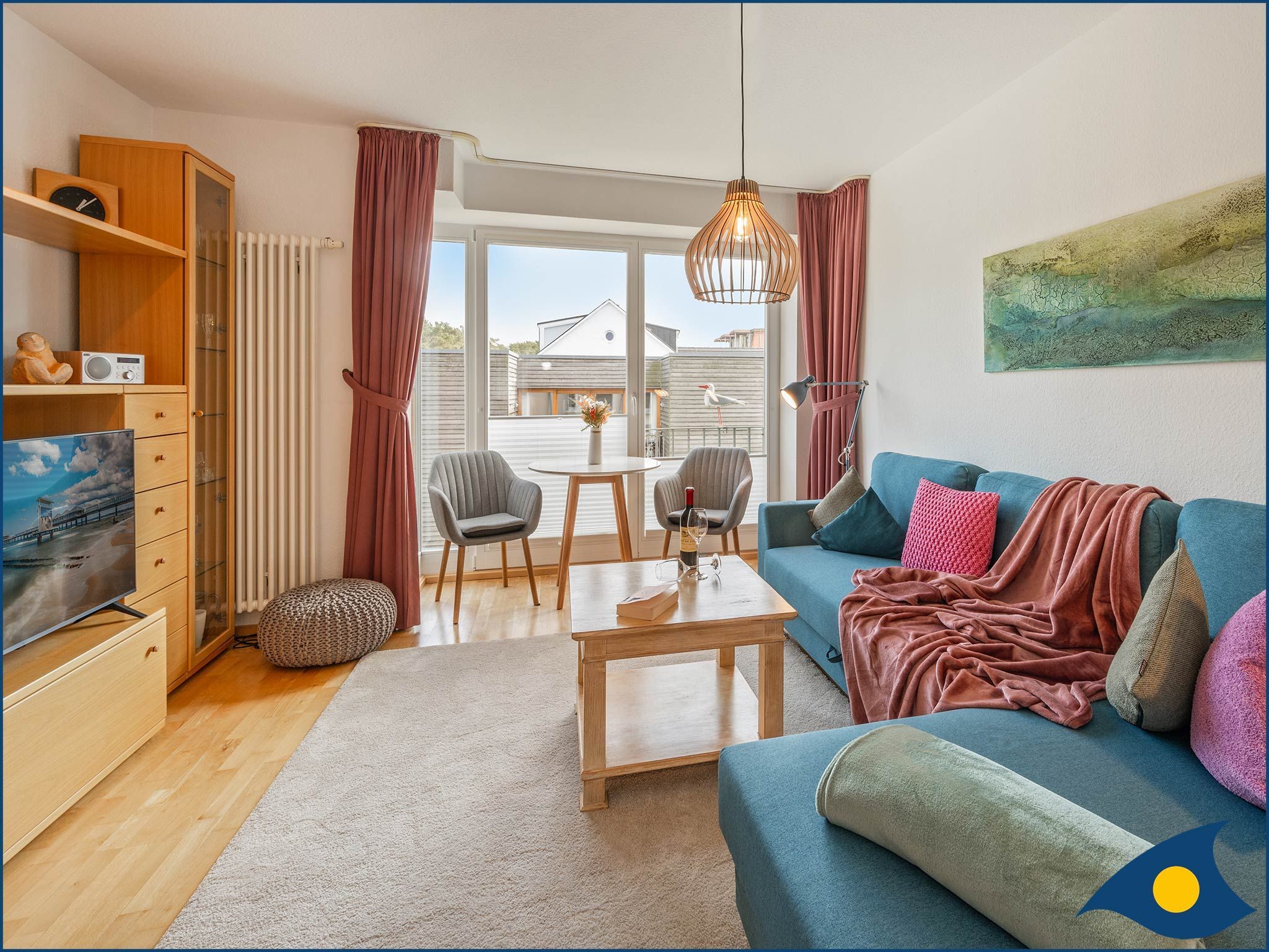 • gemütliches helles Wohnzimmer mit Smart-TV und französischem Balkon