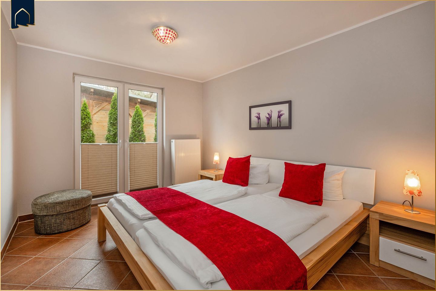 Die Wohnung befindet sich in ruhiger, dennoch zentraler Lage – nur ca. 1 km vom feinsandigen Ostseestrand entfernt. Einkaufsmöglichkeiten und Restaurants sind fußläufig in ca. 350 m erreichbar, der nächste Bahnhof sowie öffentliche Verkehrsmittel liegen in nur 300 m Entfernung. Wer Lust auf eine Runde Golf hat, erreicht den nächsten Golfplatz nach rund 4,2 km – ebenso wie einen nahegelegenen See.