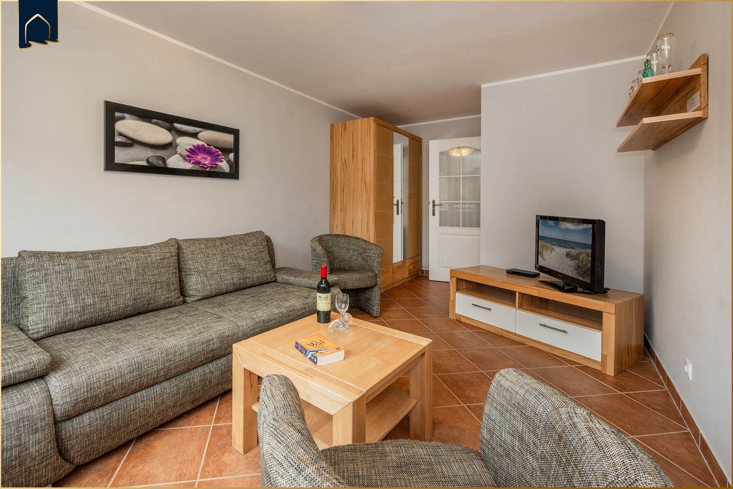 Diese gemütliche Ferienwohnung auf Usedom bietet auf 35 m² ein perfekt abgestimmtes Raumkonzept für bis zu 4 Personen. Mit einem separaten Schlafzimmer, einem komfortablen Wohnbereich mit Schlafsofa, einem modernen Badezimmer mit Dusche und einer voll ausgestatteten Küche eignet sich die Unterkunft ideal für Paare oder kleine Familien. Der gemütliche Esstisch lädt zu gemeinsamen Mahlzeiten ein, und ein Ganzkörperspiegel sowie zahlreiche Fenster sorgen für ein luftiges, freundliches Raumgefühl.