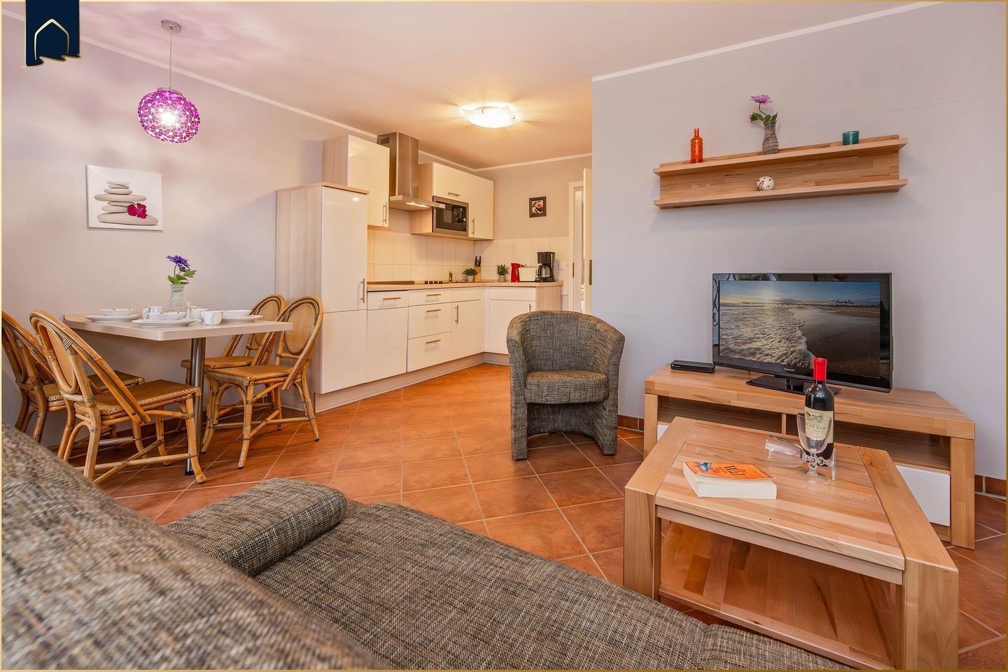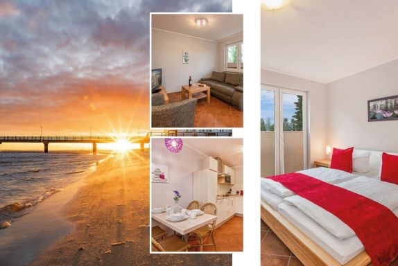 Diese gemütliche Ferienwohnung auf Usedom bietet auf 35 m² ein perfekt abgestimmtes Raumkonzept für bis zu 4 Personen. Mit einem separaten Schlafzimmer, einem komfortablen Wohnbereich mit Schlafsofa, einem modernen Badezimmer mit Dusche und einer voll ausgestatteten Küche eignet sich die Unterkunft ideal für Paare oder kleine Familien. Der gemütliche Esstisch lädt zu gemeinsamen Mahlzeiten ein, und ein Ganzkörperspiegel sowie zahlreiche Fenster sorgen für ein luftiges, freundliches Raumgefühl.