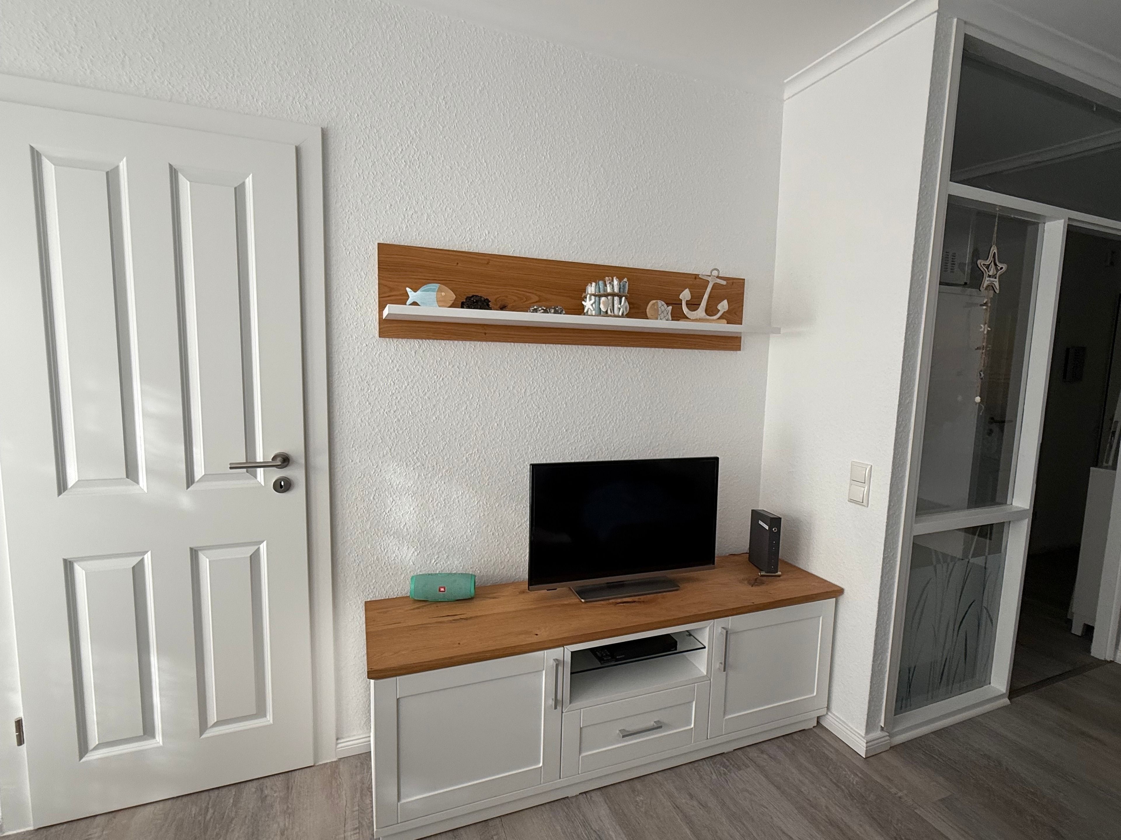 Es gibt ein schönes Badezimmer mit Dusche und WC, wo man sich etwas entspannen kann.