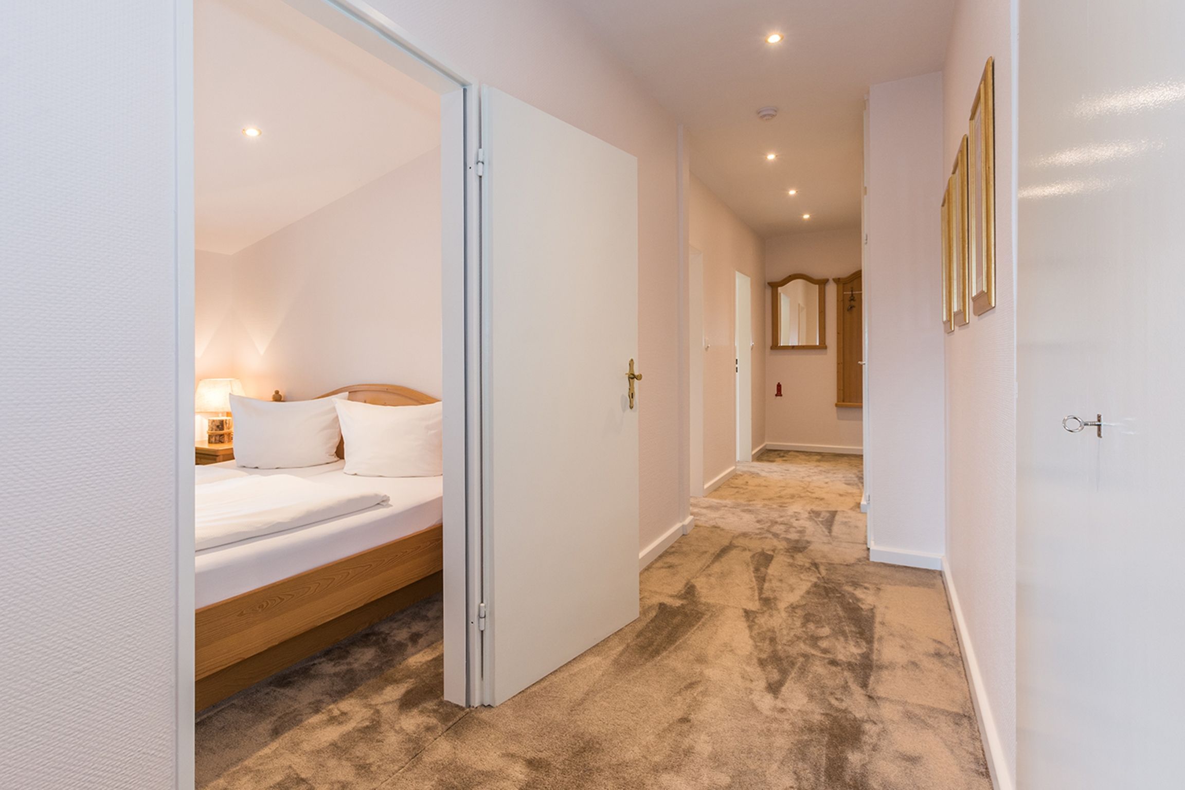 Das Appartement 4 befindet sich im Haupthaus der Anlage im Obergeschoss .
