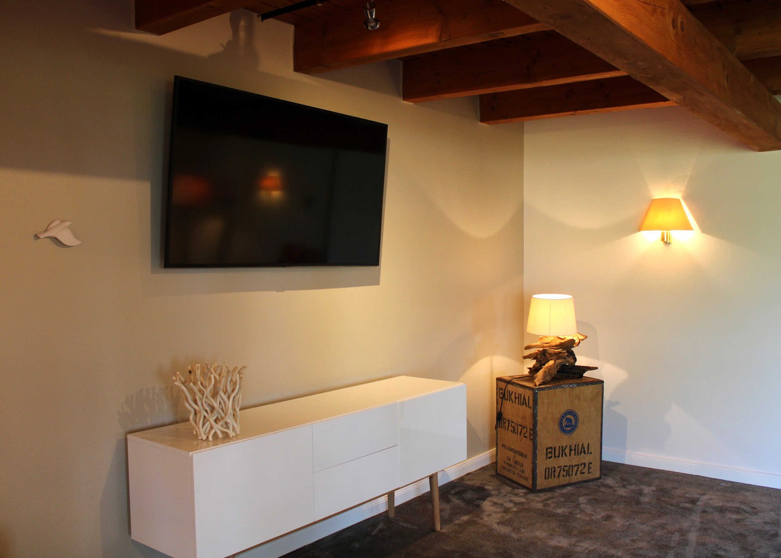 Sie sind mit TV und einem Audiosystem (mit integriertem Anschluss für iPhone, iPod und iPad, CD-Player und Radio) ausgestattet. Die Küchenzeile verfügt neben dem Herd über eine Spülmaschine, Kaffeemaschine, Wasserkocher, Toaster und ist mit einem Backofen ausgestattet. Die Badezimmer mit Dusche und WC, Fön, Kosmetikspiegel und Handtuchwärmer.