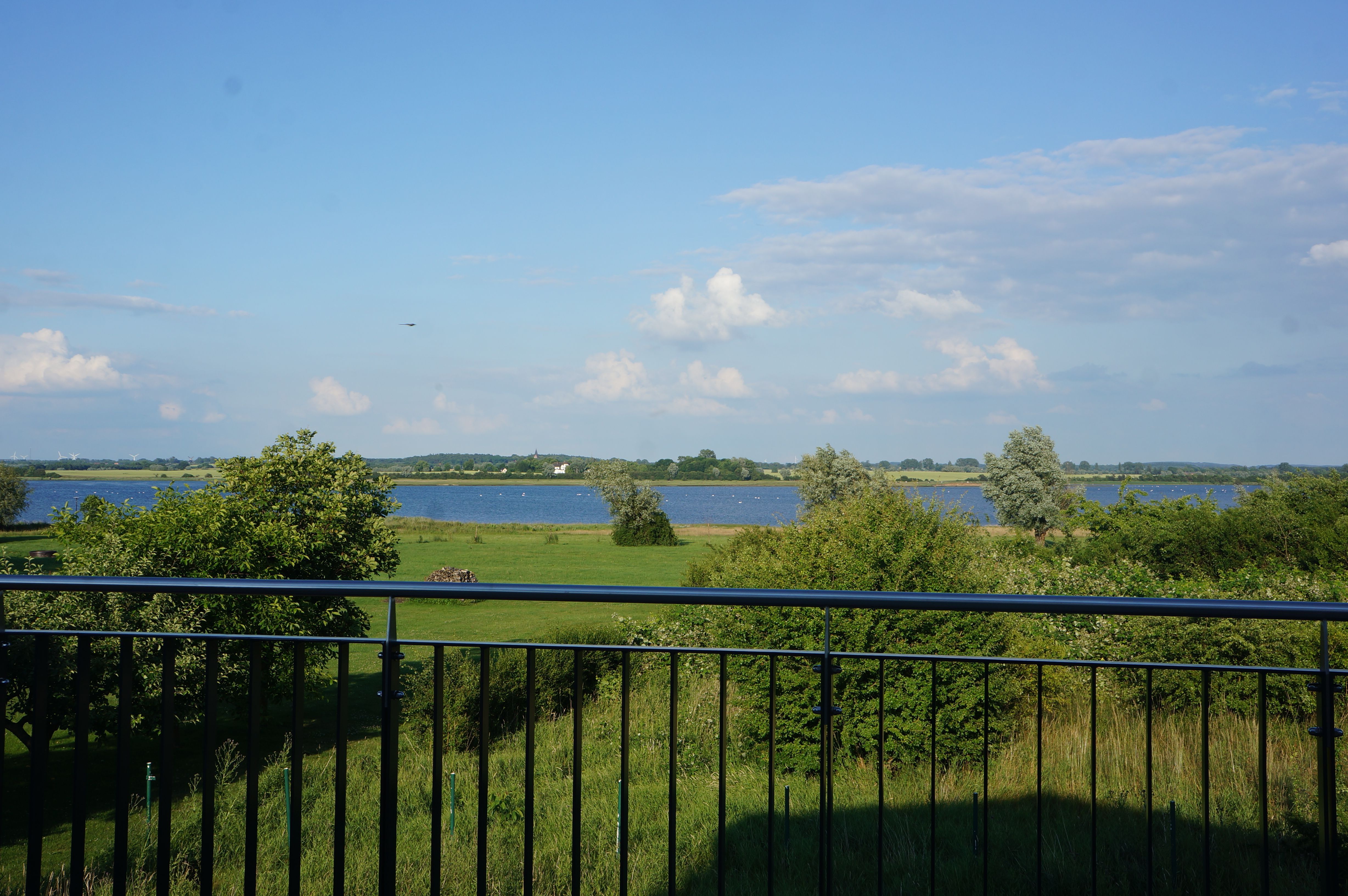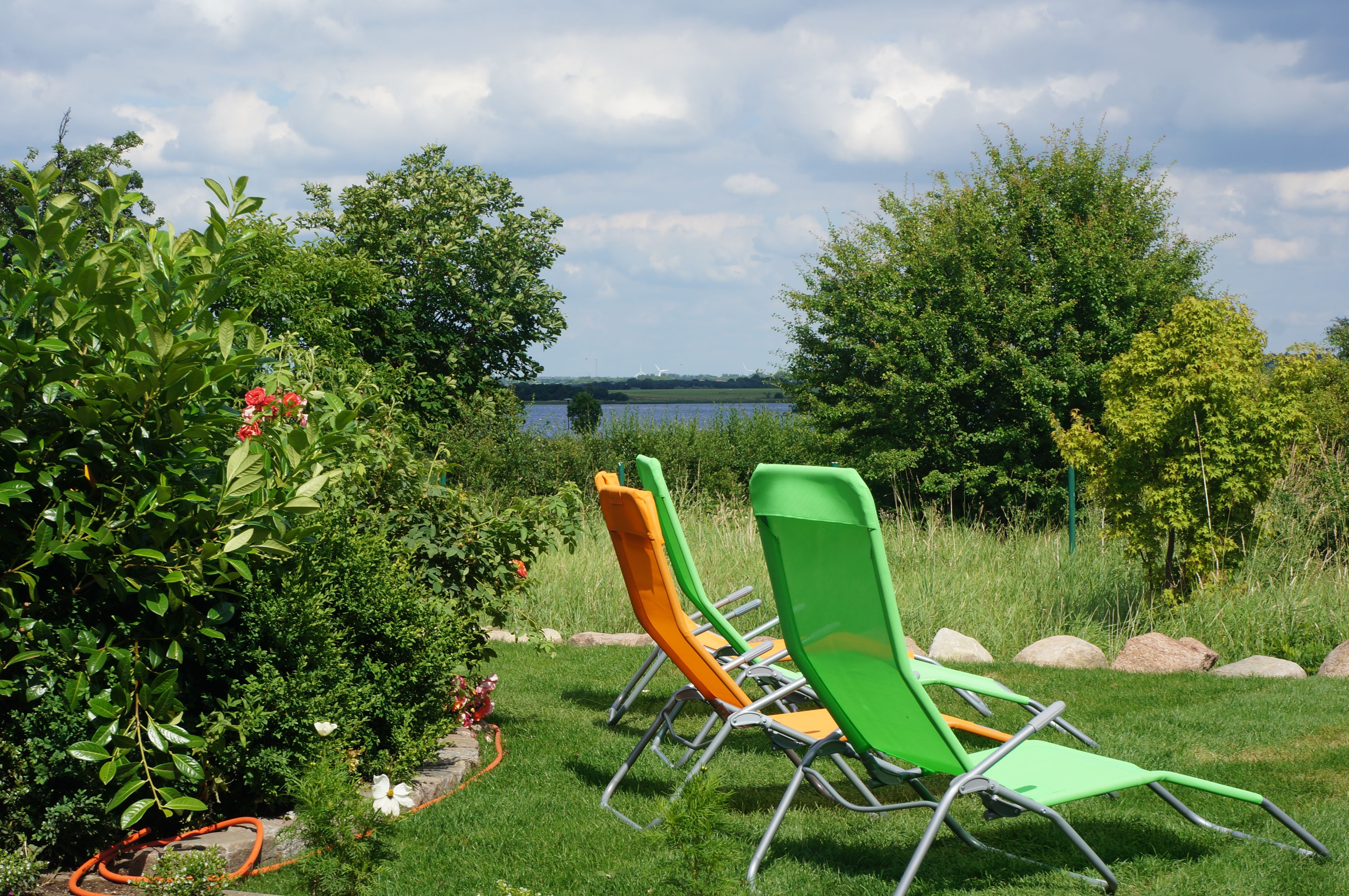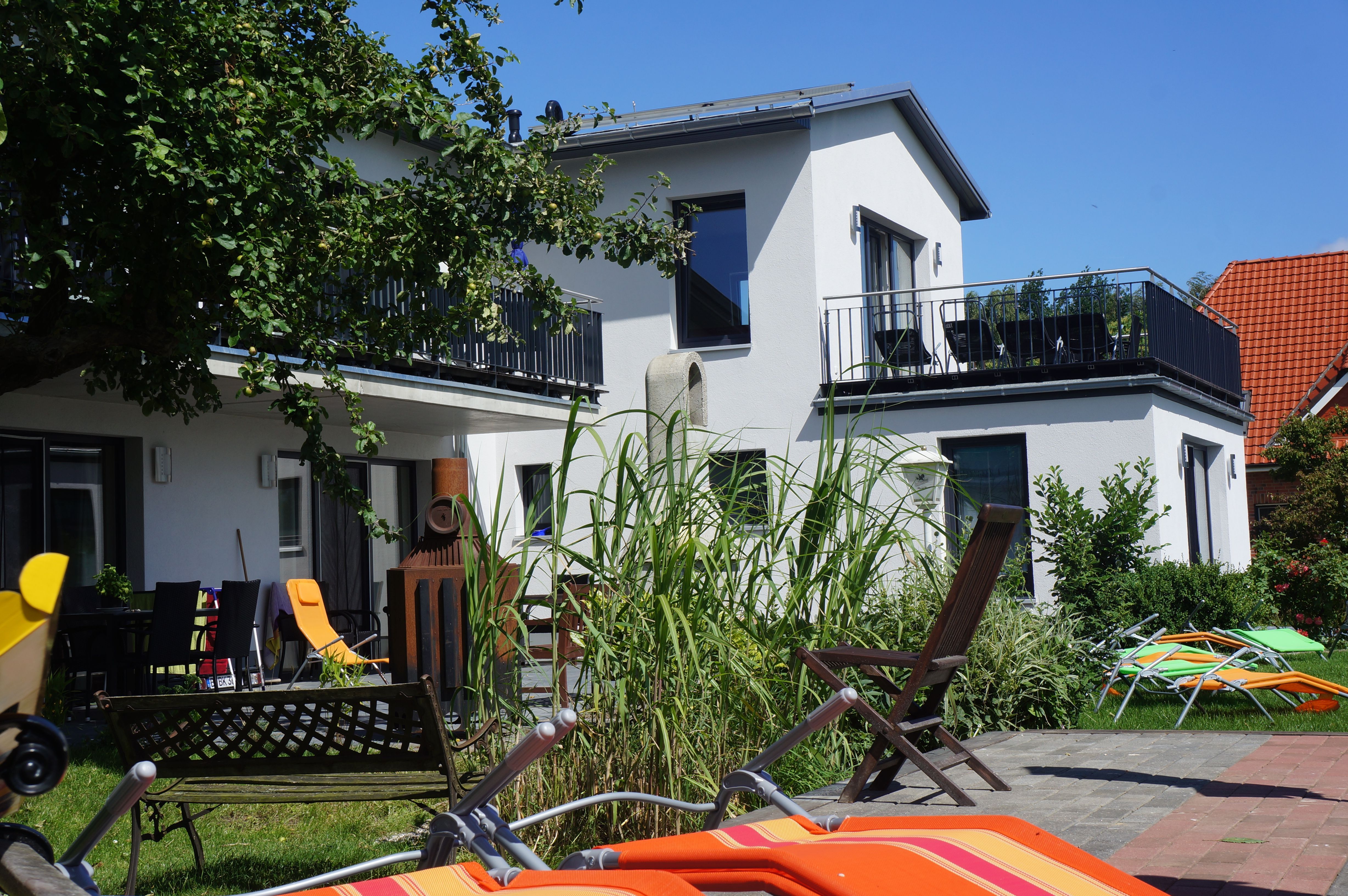 Das Ferienhaus ist von einem über 1500 m2 großen, idyllischen Garten umgeben, an dem ein Naturschutzgebiet grenzt und in Sichtweite zum Breitling (Ostsee) gelegen, so dass Sie die ungestörte Ruhe und den Blick auf die Bucht genießen können.
