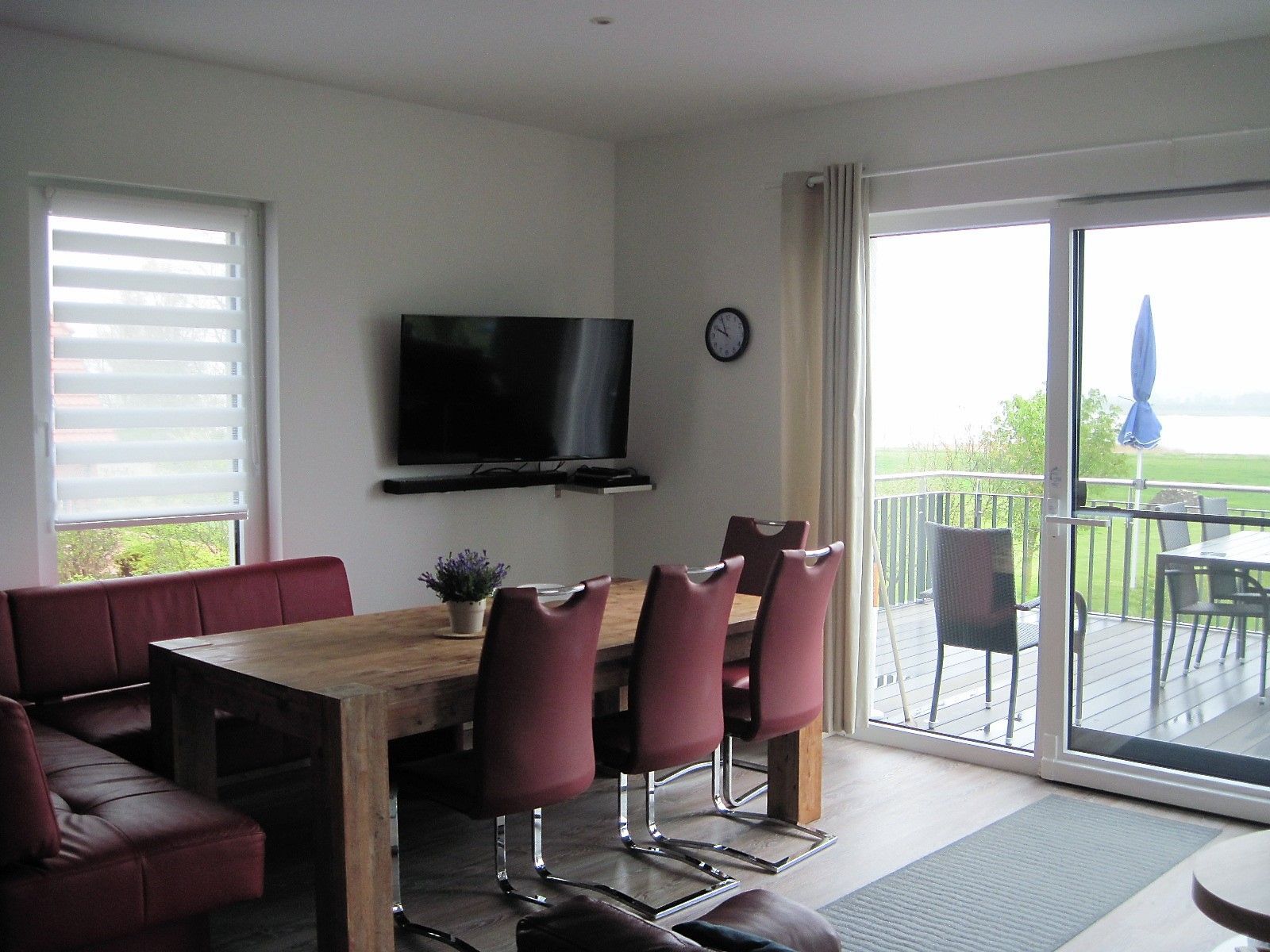 Am großen Esstisch finden bis zu 10 Personen Platz.