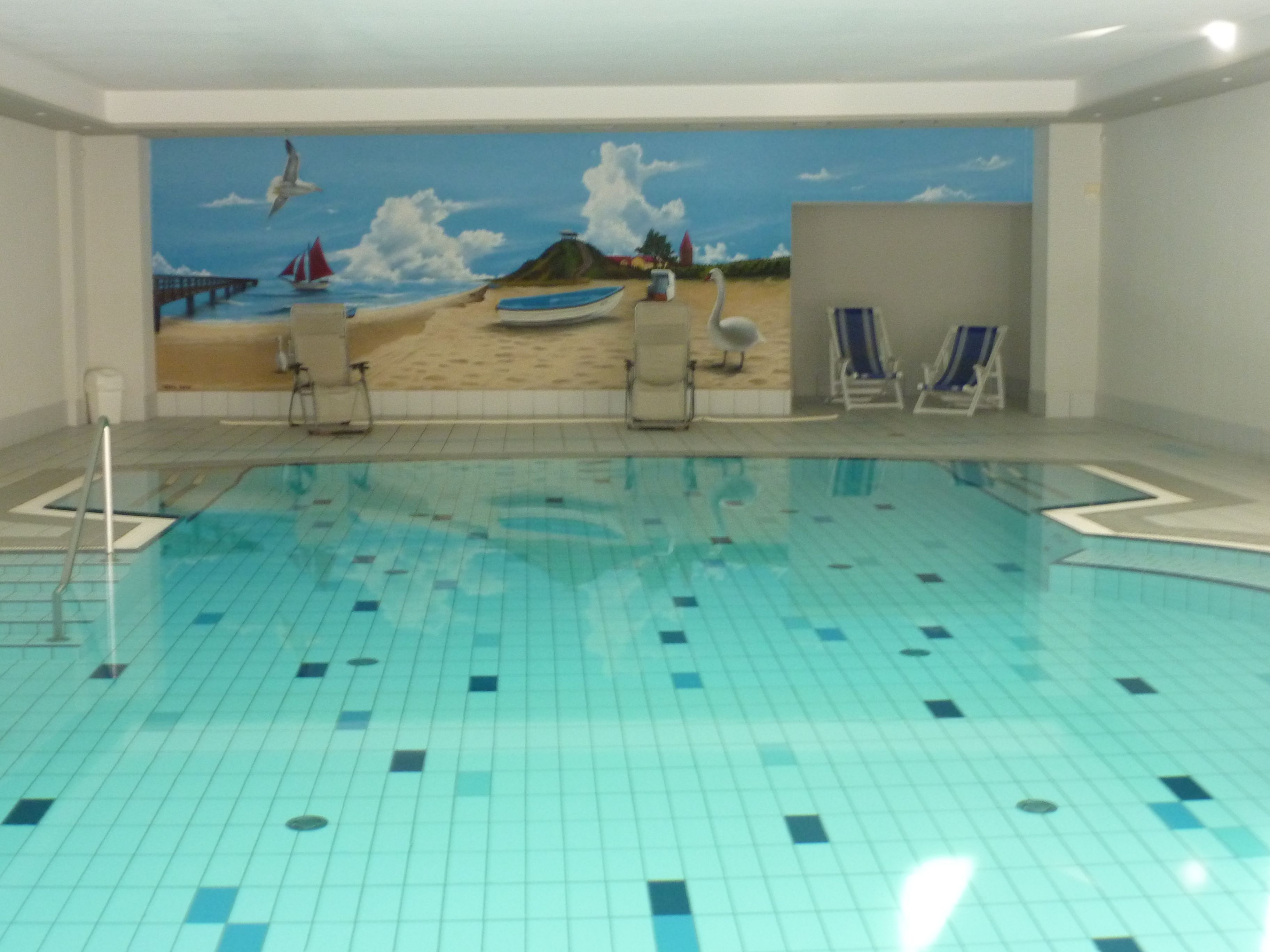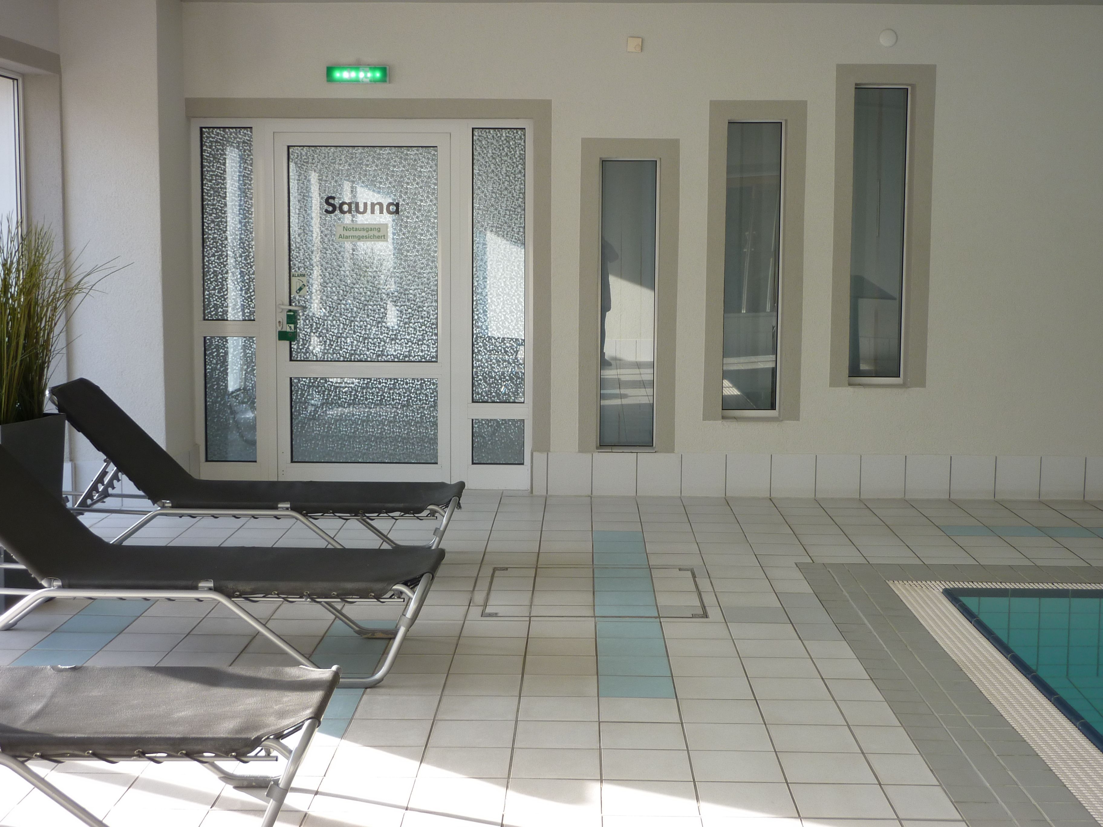 Das Schwimmbad (täglich) sowie der Saunabereich (Die., Fr., Sa.) können kostenfrei im Kurhaus direkt nebenan mitbenutzt werden.
