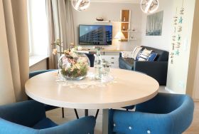 Die helle 2-Raum-Nichtaucherwohnung 104RB521 befindet im 5. Obergeschoss des Aufgangs 105 (Block I) und ist bequem per Fahrstuhl zu erreichen. Das Apartment verfügt über einen Frühstücksbalkon mit Blick auf die Ostsee.