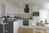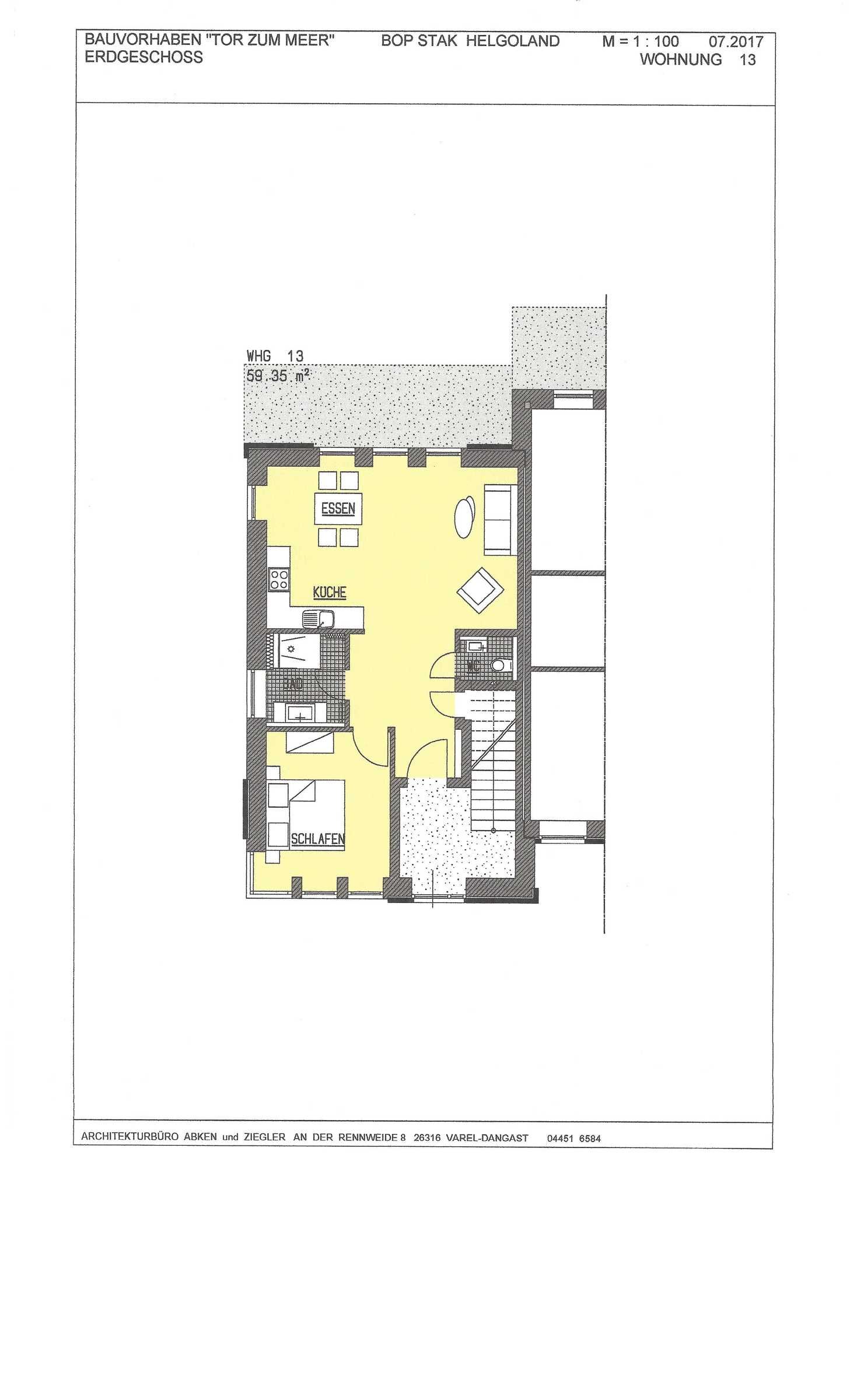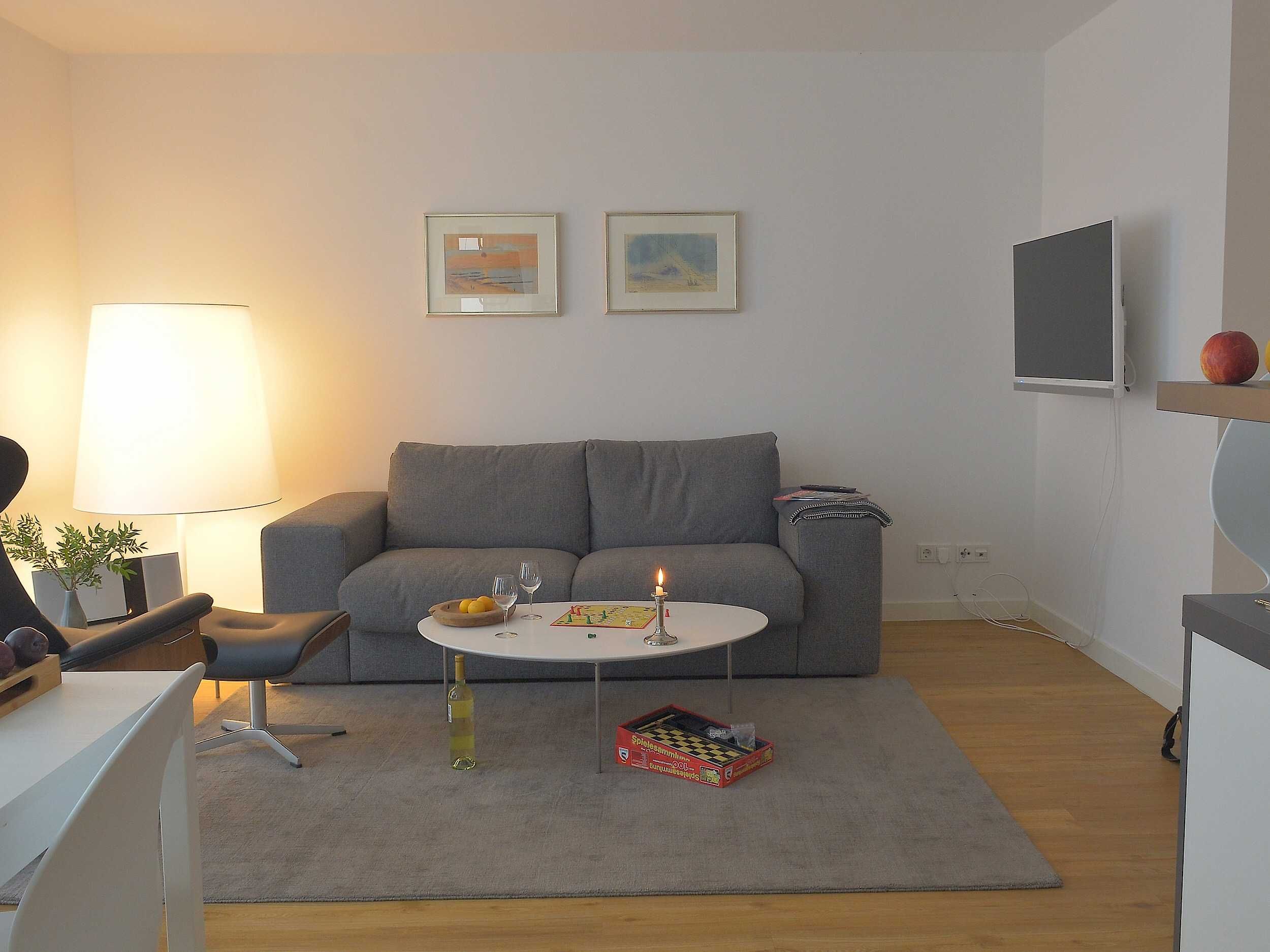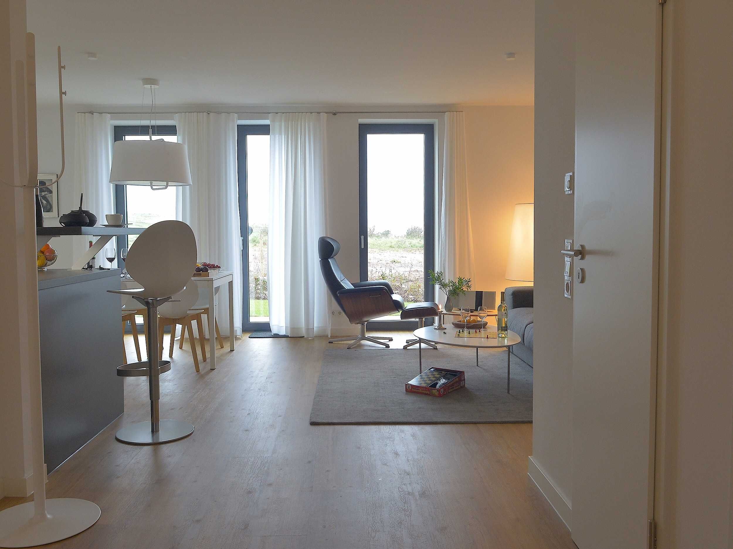 Die luxuriöse Wohnung hat ca. 59 qm Wohnfläche und befindet sich im Erdgeschoss. Der Wohnbereich mit offener, komplett ausgestatteter Küche und Essplatz hat einen Zugang zur Terrasse und einen unverbauten Blick auf die Nordsee und das grüne Oberland. Eine zweite Terrasse befindet sich auf der südlichen Sonnen-Seite der Wohnung.
