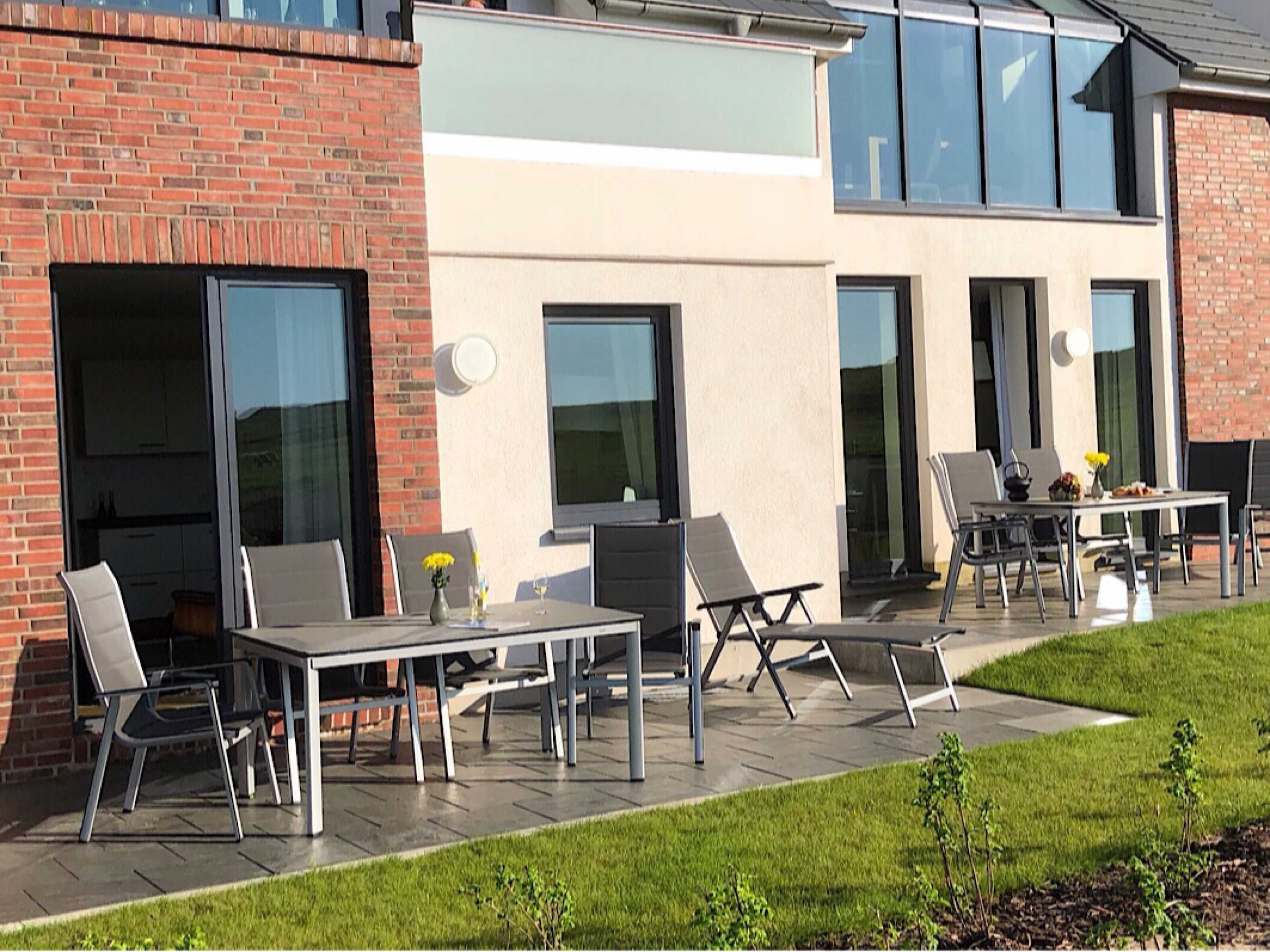 Die luxuriöse Wohnung hat ca. 59 qm Wohnfläche im Erdgeschoss. Der Wohnbereich über eine offene komplett ausgestattete Küche und Essplatz und Zugang zur Terrasse mit einem unverbauten Blick auf die Nordsee und das grüne Oberland. Duschbad und WC sind separat. WLAN, TV und Radio/Dockingstation sehen zur Verfügung. Bettwäsche und Handtücher sind inklusive und werden bei längeren Aufenthalten gewechselt.