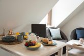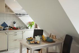 Eine kleine und komfortable Ferienwohnung, die für zwei Personen ideal ist. Gemütliche Kuschelecken unter dem Dach sind über die geschwungene Holztreppe erreichbar: hier befinden sich die beiden Schlafplätze der Ferienwohnung. Im Außenbereich steht Ihnen eine große gemeinschaftliche genutzte Terrasse mit Gartensauna, die einen Panoramablick auf das weite Land bietet, sowie Gartenmöbel, Strandkörbe mit Feuerstelle zum verweilen und einen Grill zur Verfügung.