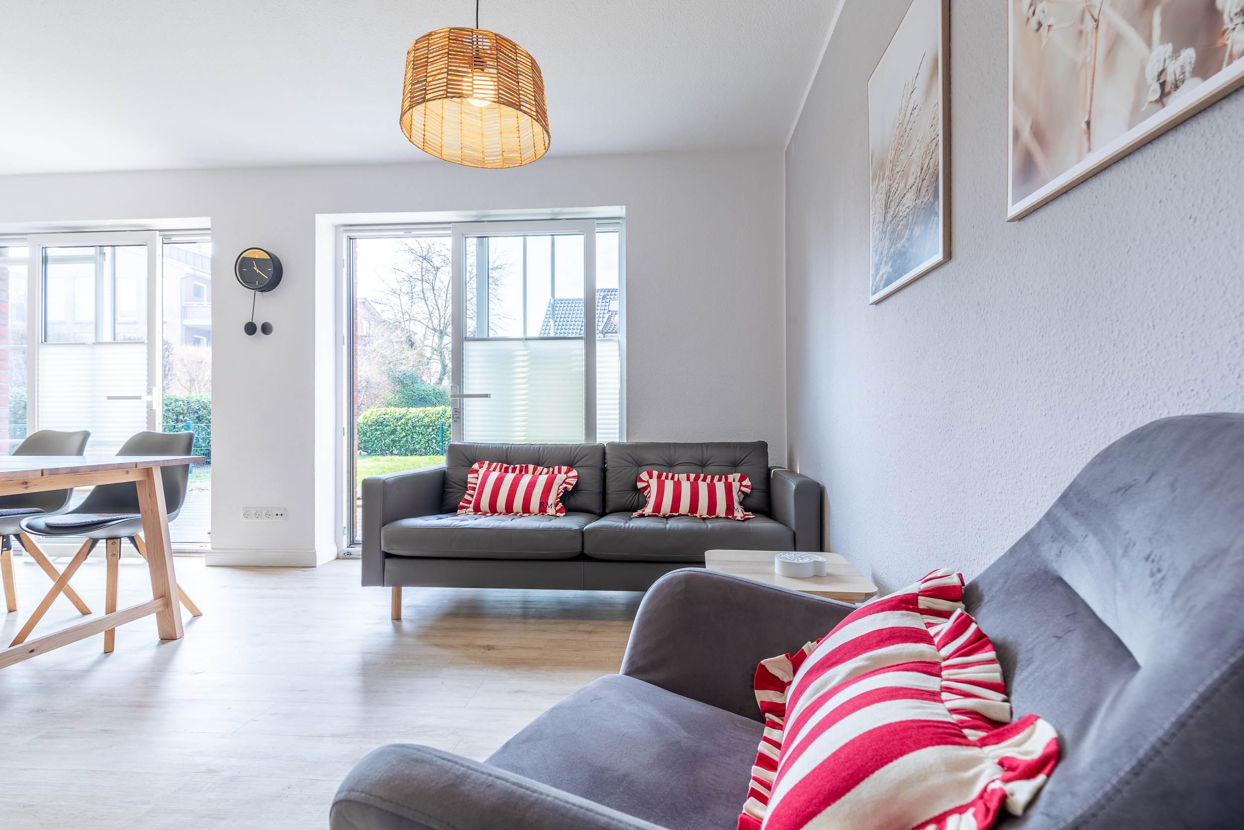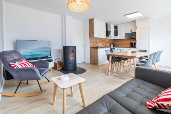 Die Haushälfte ist in separate Wohn- und Schlafbereiche aufgeteilt und verfügt über zwei Bäder für eine entspannte Urlaubsstimmung. Der Kamin und die Sauna sorgen auch in der kälteren Jahreszeit für Gemütlichkeit. Eine Soundbar und kostenloses WLAN sorgen für Unterhaltung und Komfort. Die Fußbodenheizung sorgt für angenehme Wärme.