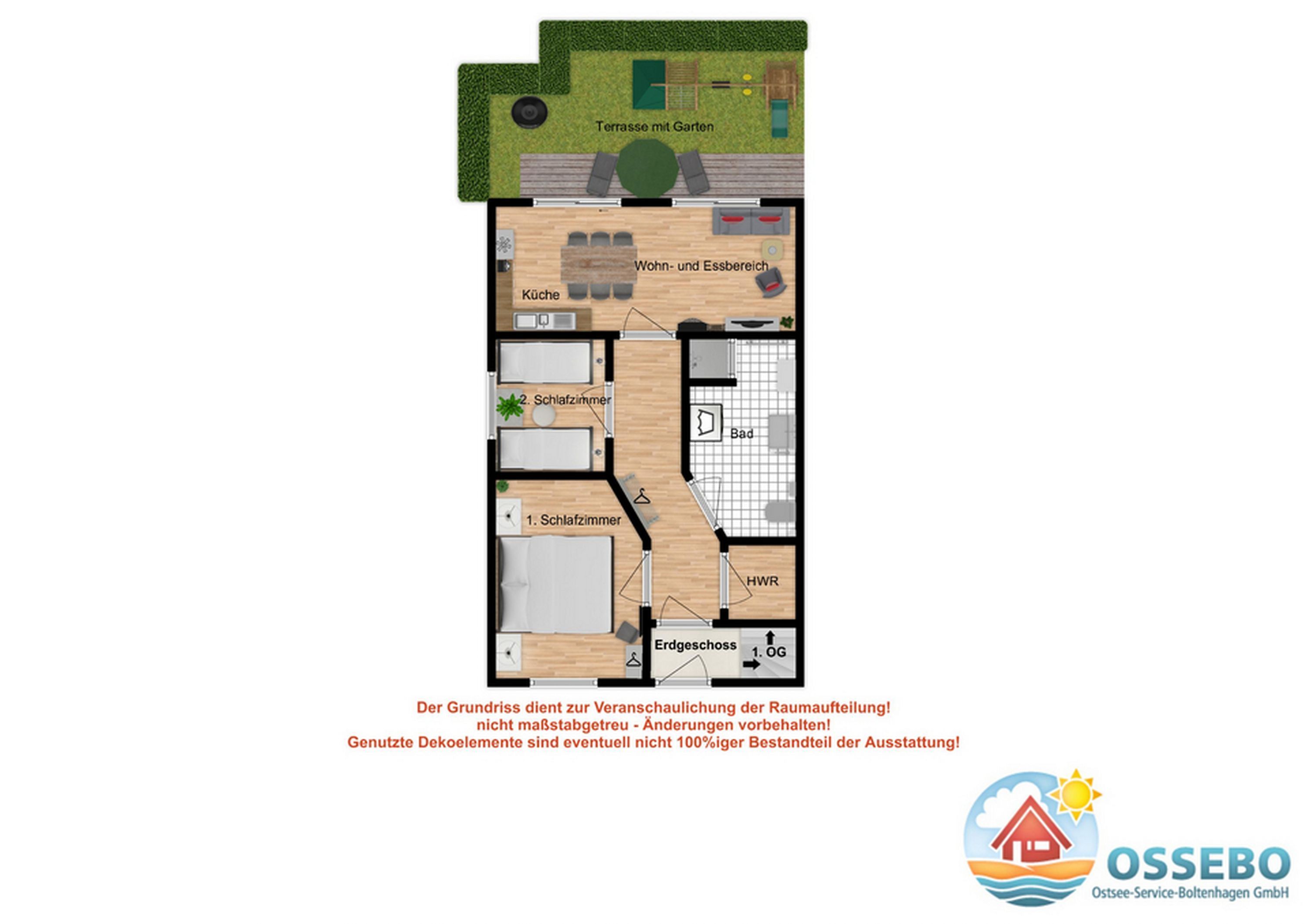 Das Nichtraucherhaus in Boltenhagen ist nicht nur kinderfreundlich sondern auch seniorengerecht. Auf der Terrasse ist Rauchen möglich. Für die kleinsten Gäste stehen hier 2 Reisebettchen und ein Hochstuhl zur kostenfreien Nutzung bereit. In den Bädern und in den Schlafräumen wurden Insektenschutzgitter installiert.