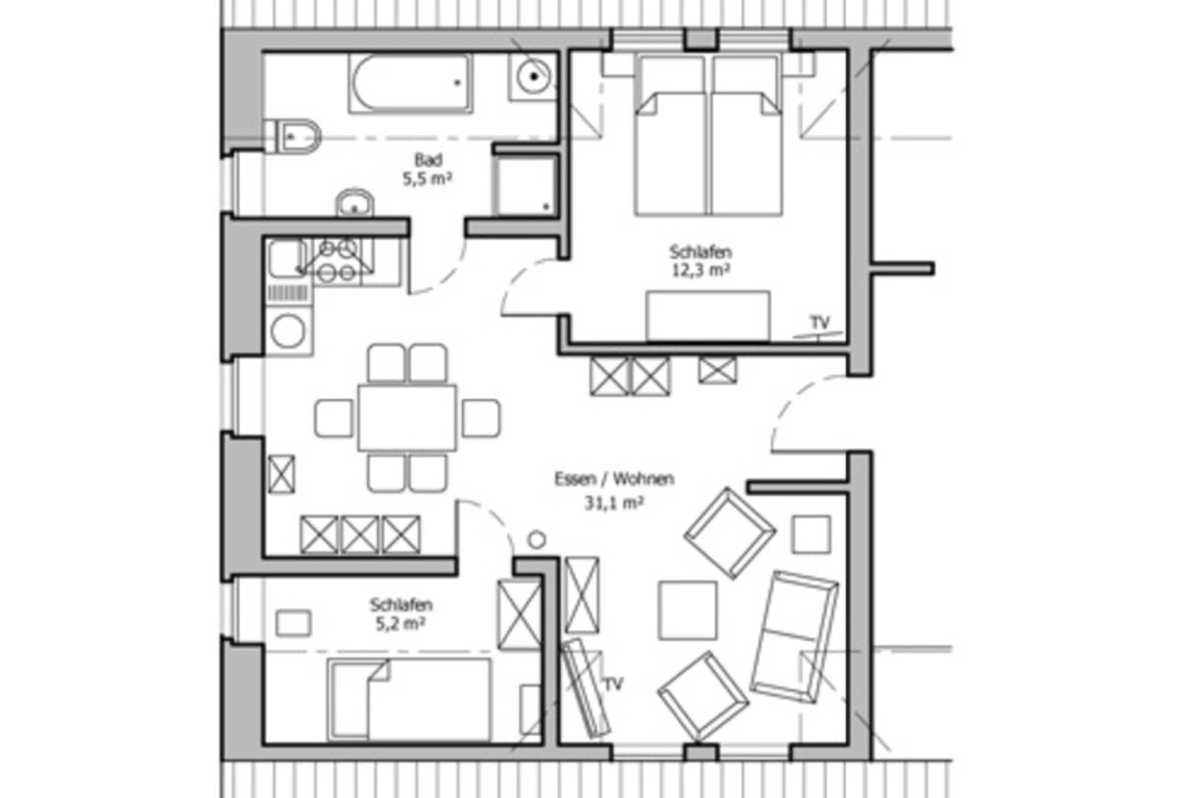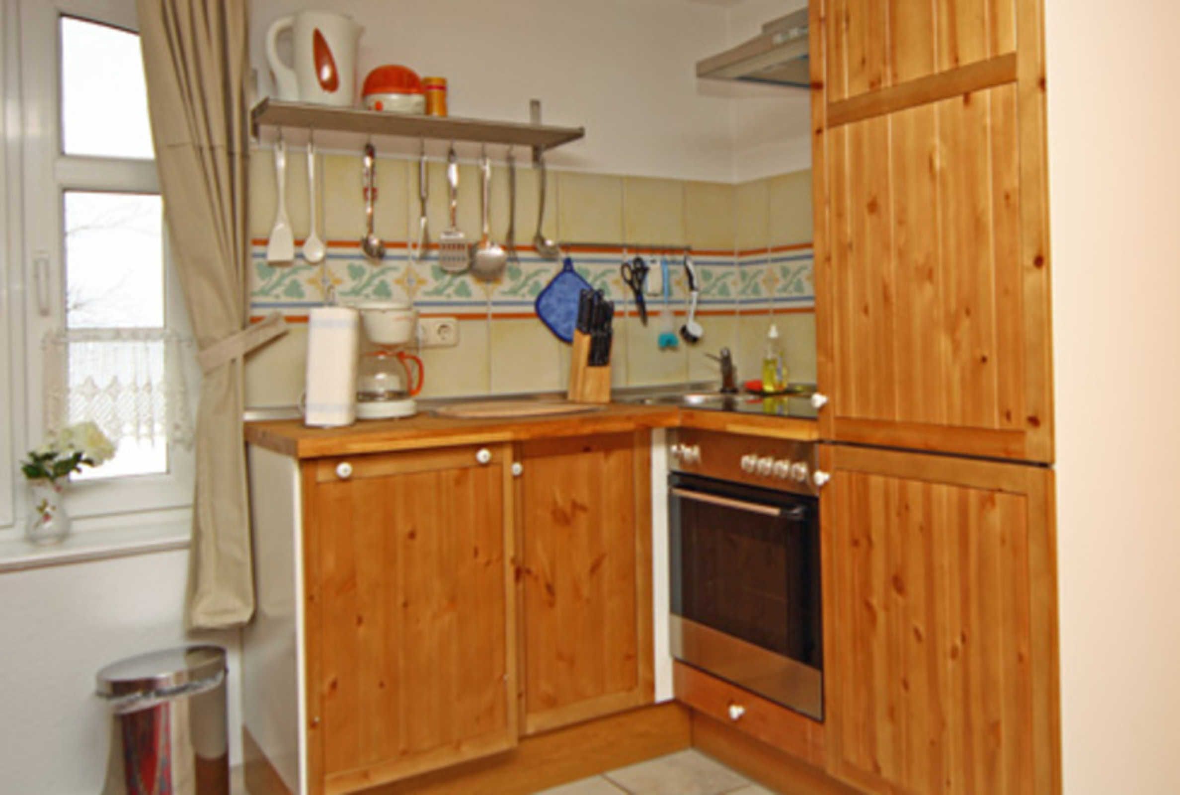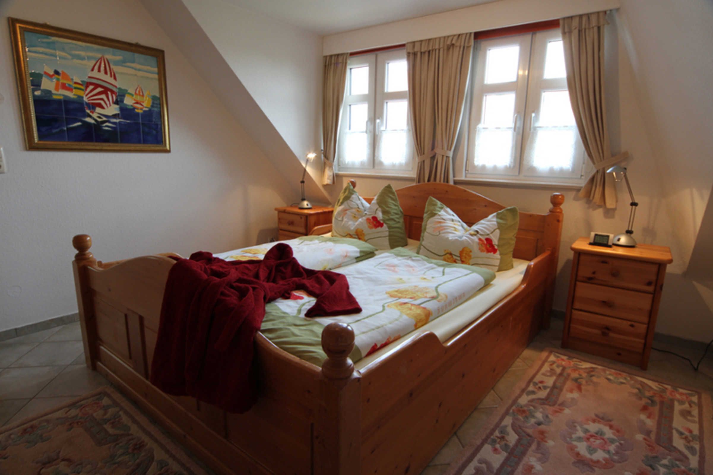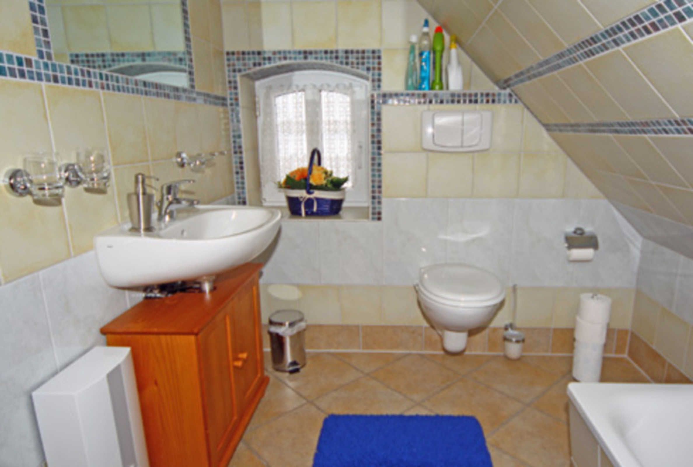 Die komfortable Nichtraucher-Fewo befindet sich im Hauptkomplex der Feriewohnanlage. Durch einen separaten Eingang gelangen Sie in den Gemeinschaftsflur der zu vier Wohnungen führt. Die Fewo liegt im DG und hat einen gemütlichen Wohnbereich mit Couchgarnitur, Stereoanlage, DVD-Player und SAT-TV, sowie einen vollständigen Küchenbereich mit Ceranfeld, Backofen, Geschirrspüler, Kühl-/Gefrierkombination, Mikrowelle, Kaffeemaschine, Toaster, Wasserkocher und Geschirr. Das Bad ist ausgestattet mit einer Dusche, Badewanne, WC, und Haarfön. Das Schlafzimmer ist mit Ehebetten und das Kinderzimmer mit einem Tandembetten ausgestattet. In der Fewo sind Dachschrägen vorhanden, die aber die Bewegungsfreiheit nicht einschränken. Genießen Sie in unseren 2500 qm großen Garten z.B. Ihr Frühstück. Grillmöglichkeit im Garten nach Absprache möglich.
