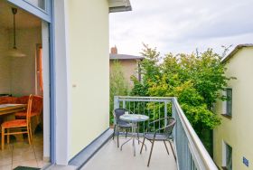 Die 2-Raumwohnung befindet sich im Obergeschoss und besitzt einen Balkon.