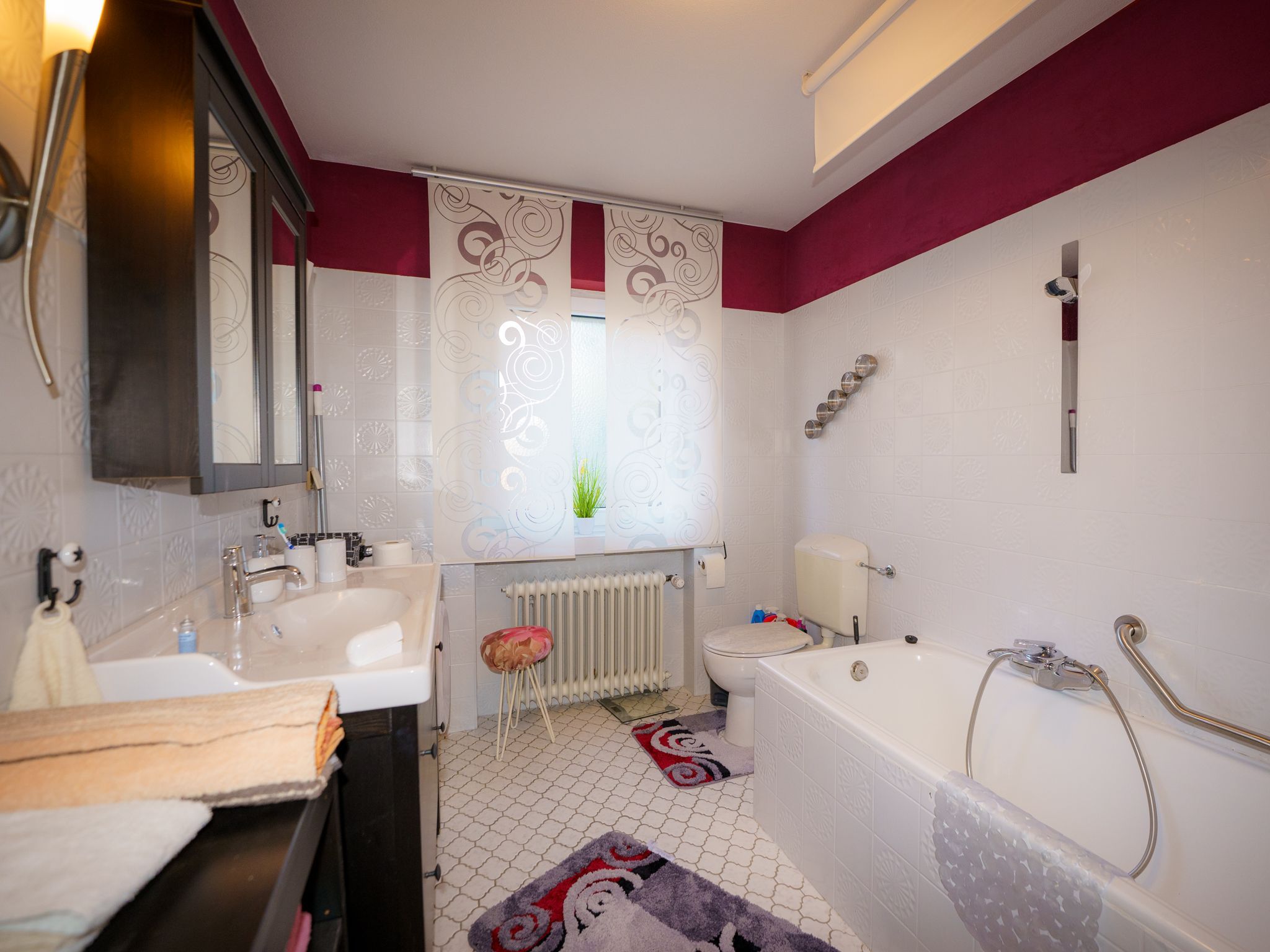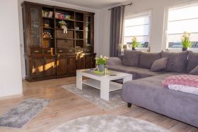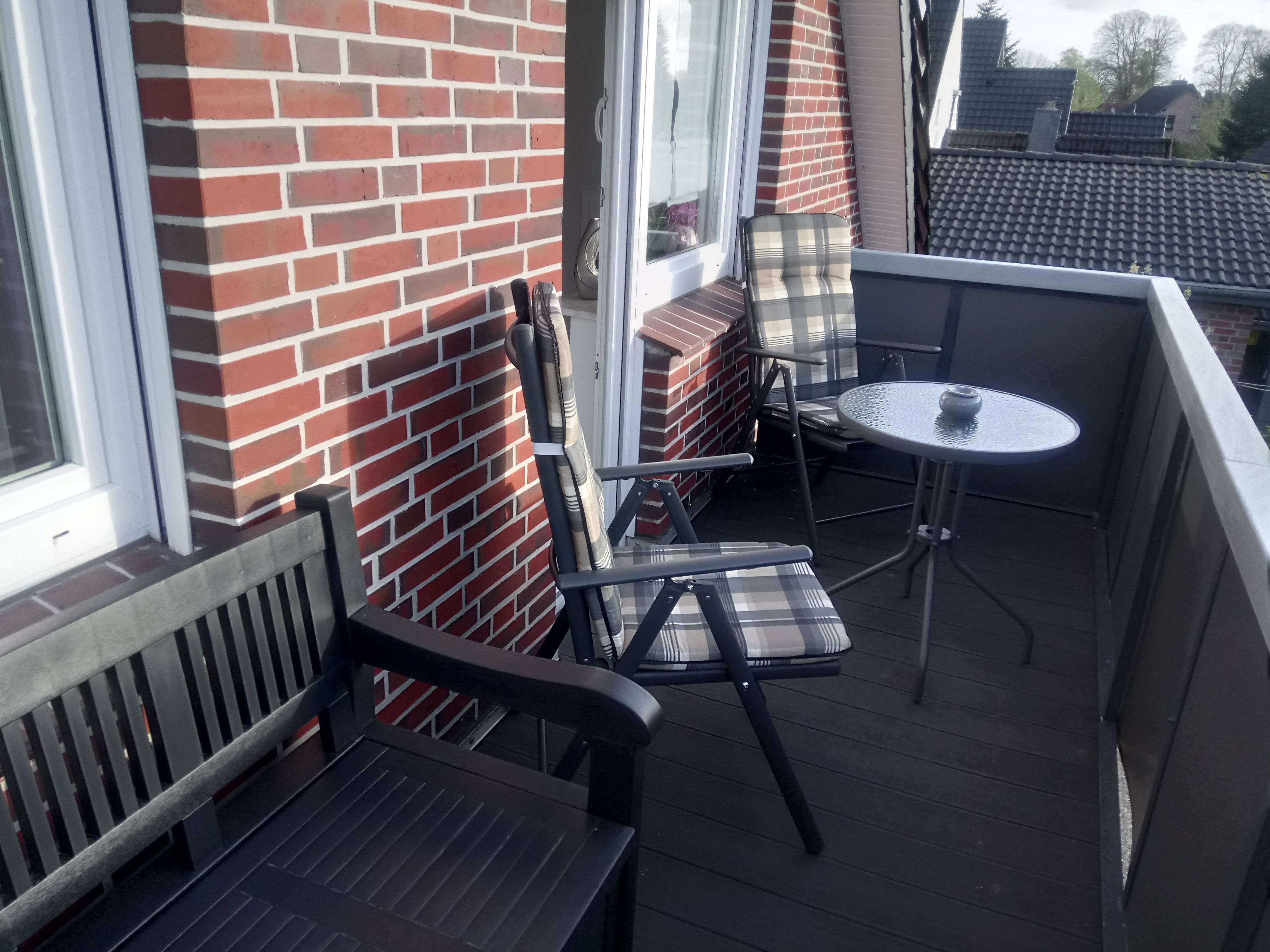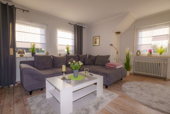 Das Wohnzimmer bietet zur Enspannung ein gemütliches Ecksofa mit einem großen Fernseher an. Von hier aus gelangen Sie auf den Balkon (1,4 m x 4,6m). Balkonmöbel zum Verweilen im Freien stehen für ein Sonnenbad bereit. Das Tageslichtbad ist mit einem Wannenbad mit Duschoption ausgestattet und ein Fön liegt für Sie bereit. Direkt vor dem Haus befindet sich Ihr PKW Stellplatz. Mitgebrachte Fahrräder dürfen gerne in der Garage untergestellt werden. Wann kommen Sie?