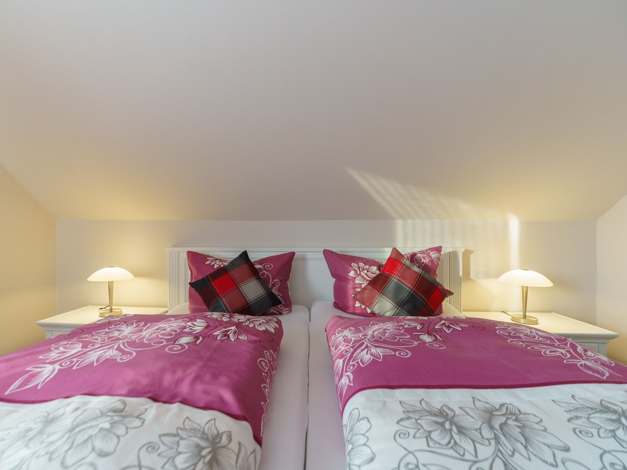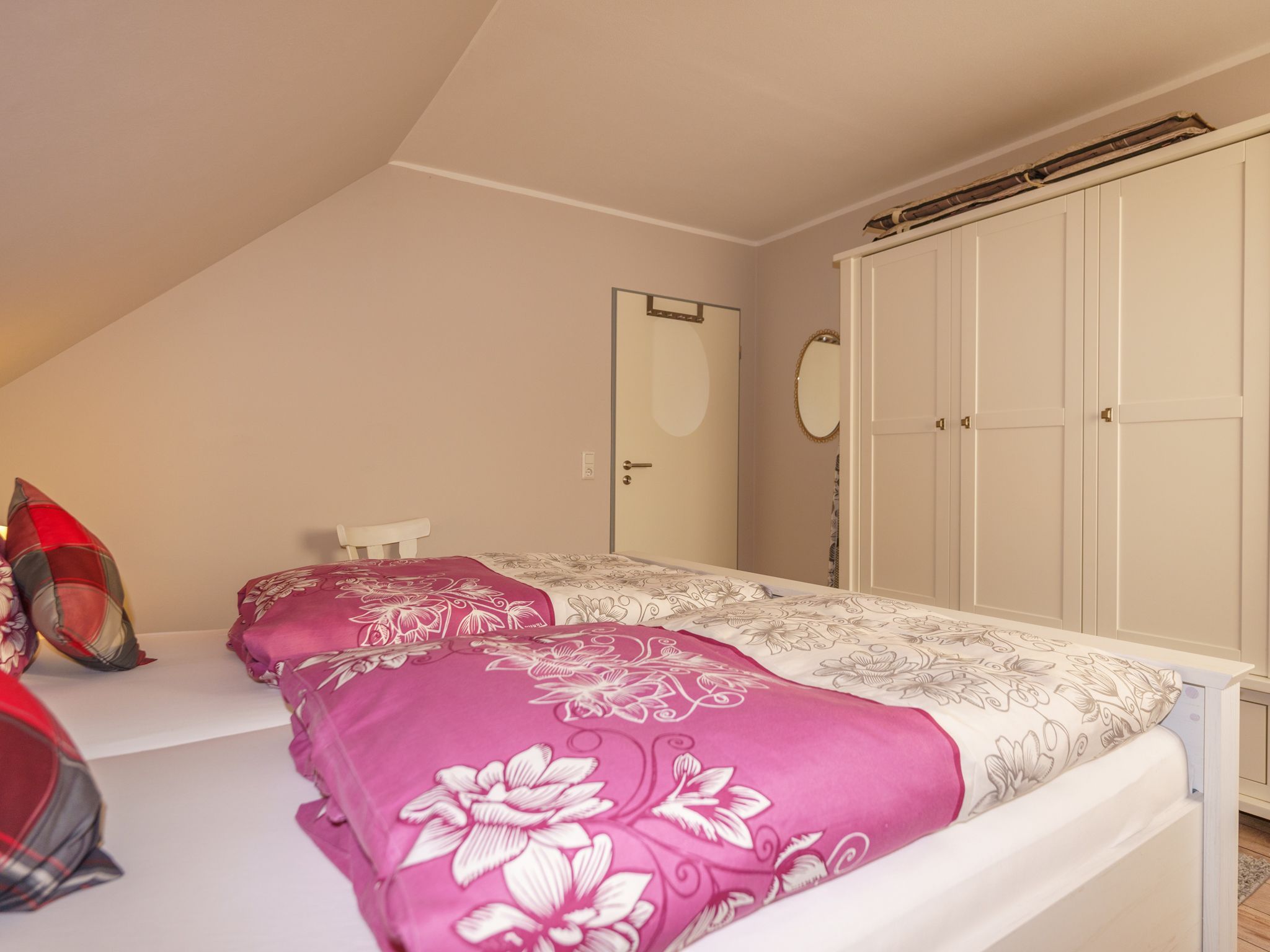Das große Schlafzimmer ist mit einem Doppelbett und einem großen Kleiderschrank ausgestattet. Das kleine Schlafzimmer bietet Ihnen ein Einzelbett, das auf Wunsch seine Liegefläche verdoppeln kann, sodass zwei Personen bequem schlafen können. Die Wohnküche ist vollausgestattet mit einem Geschirrspüler, einem Ceranfeldherd und einem Backofen, einer Kühl-, Gefriekombination, einer Mikrowelle, einem Toaster, einem Wasserkocher, einer Senseopad-Kaffeemaschine, einem Eierkocher und einem Mixer.