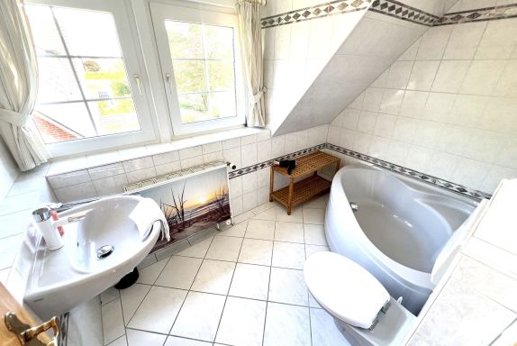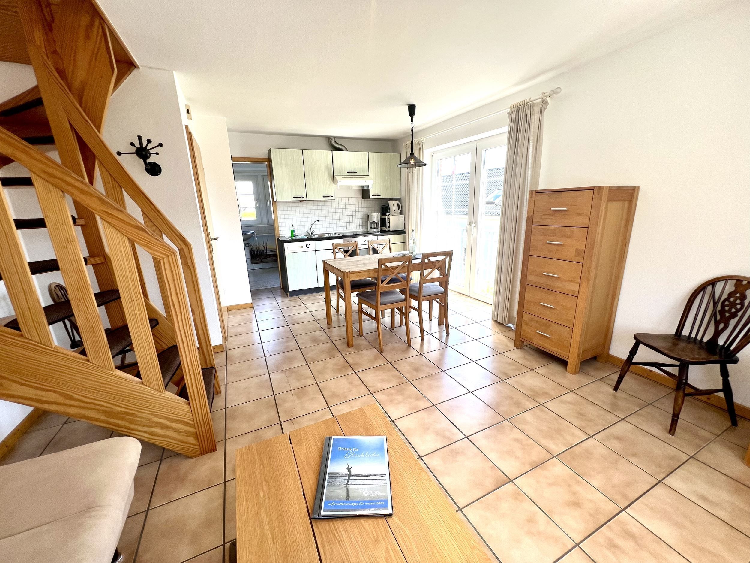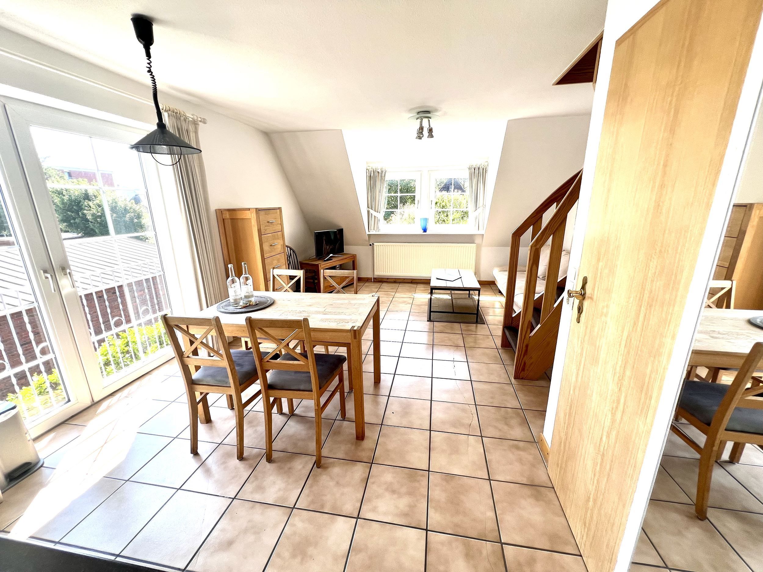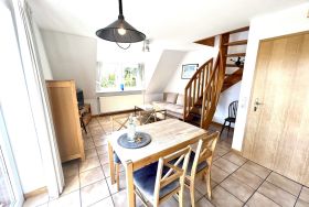 Zentral gelegene Ferienwohnung mit ca. 50 qm. Verteilt über 1. Obergeschoss und Dachgeschoss mit französischem Balkon. Im 1. Obergeschoss finden Sie den Wohnraum mit Küchenzeile sowie das geräumige Duschbad. Eine steile Wendeltreppe führt Sie ins Dachgeschoss, wo Sie Ihr Schlafzimmer vorfinden. Hier ist ein weiterer Fernseher für Sie bereitgestellt.