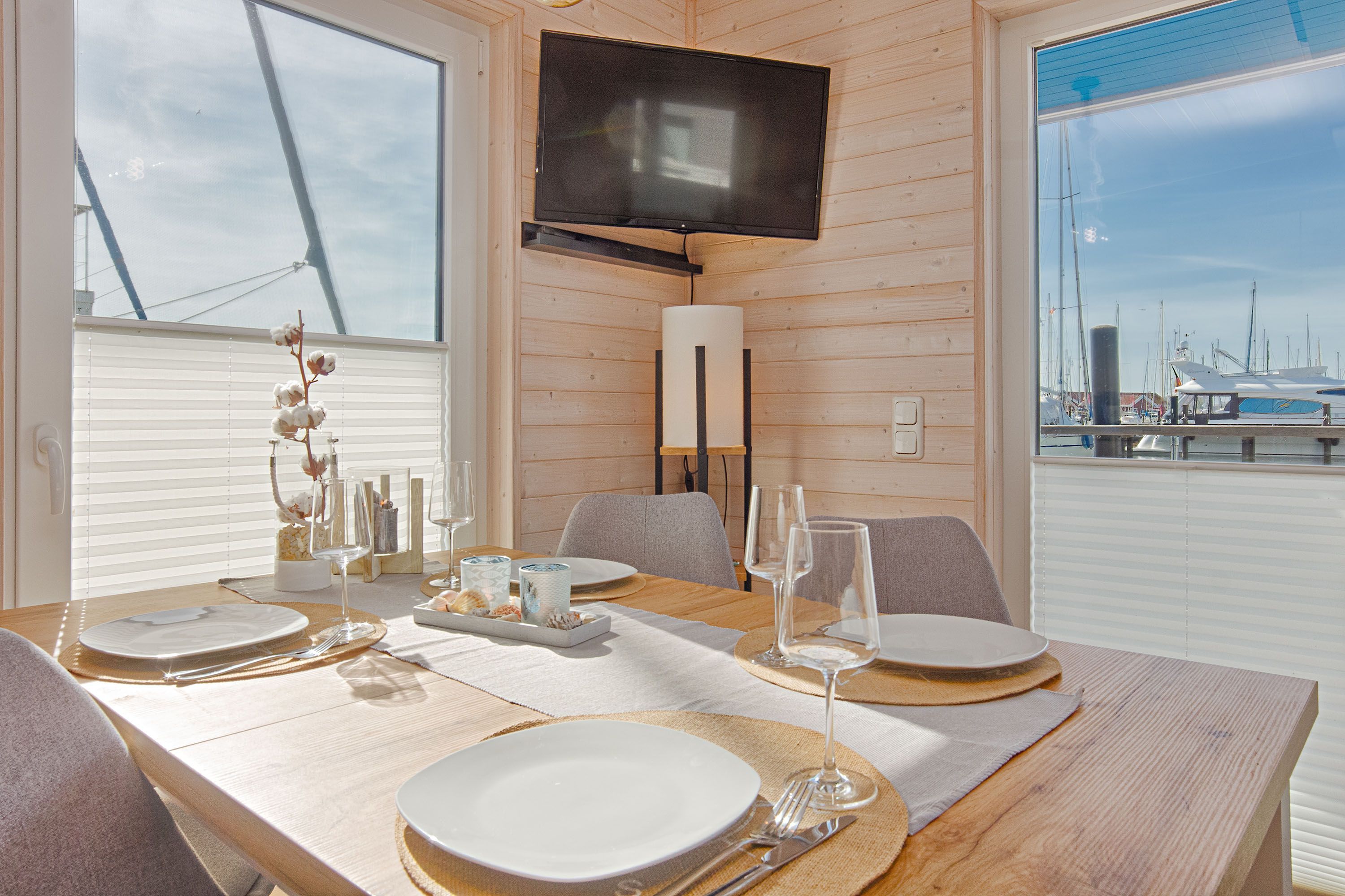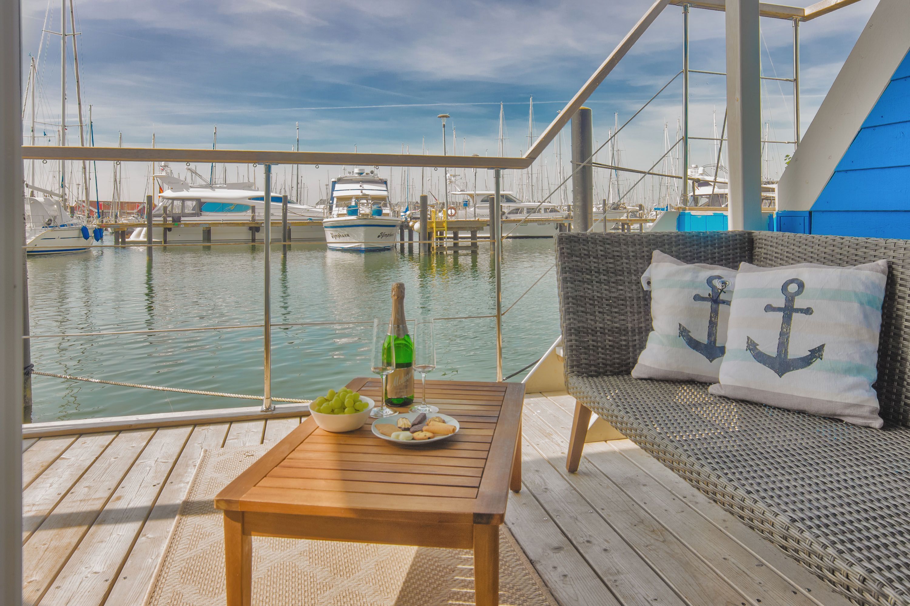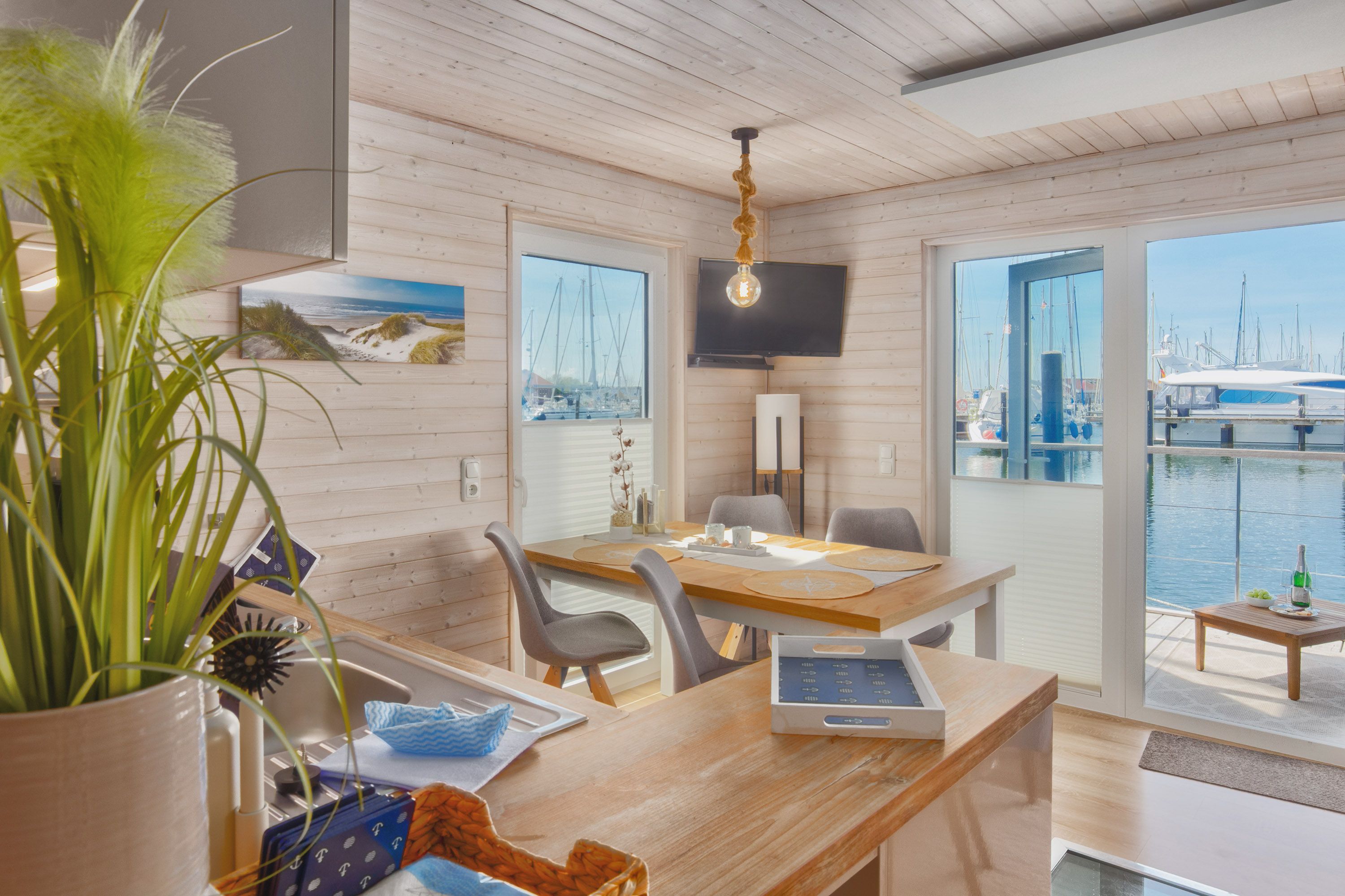 Der offene Wohn und Essbereich lädt zu gemeinsamen Spieleabenden und gemütlichen Stunden ein, mit toller Aussicht auf den Hafen. Erleben Sie einzigartige Sonnenuntergänge in gemütlichen Loungemöbeln oder im Strandkorb vom großen Sonnendeck aus.