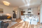 Die beiden bodentiefen Fenstertüren im EG lassen den Sonnenschein herein und bilden einen fließenden Übergang zu den Terrassen und dem Garten. Sie können Ihren ersten Kaffee oder Tee auf der kleineren Ostterrasse in der Morgensonne genießen, auf der Südterrasse bis zum späten Nachmittag sonnenbaden oder sich abends zum Grillen mit Freunden treffen.