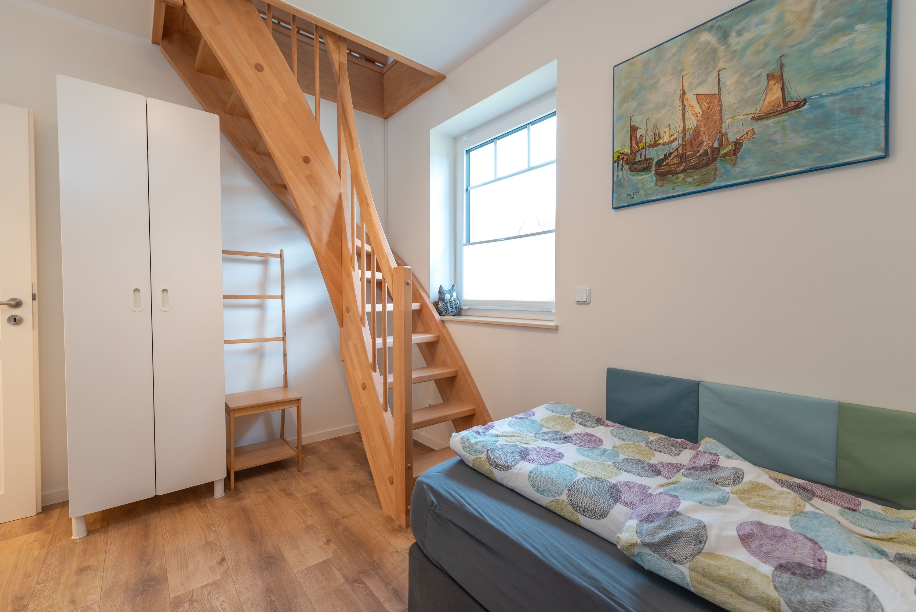 Das ausgebaute Dachgeschoss ist mit zwei Betten, die man aufeinander bauen oder nebeneinander aufstellen kann, ausgestattet und kann ebenfalls mitgemietet werden. Hier ist der ideale Ru?ckzugsort fu?r ältere Kinder oder jung gebliebene Erwachsene.