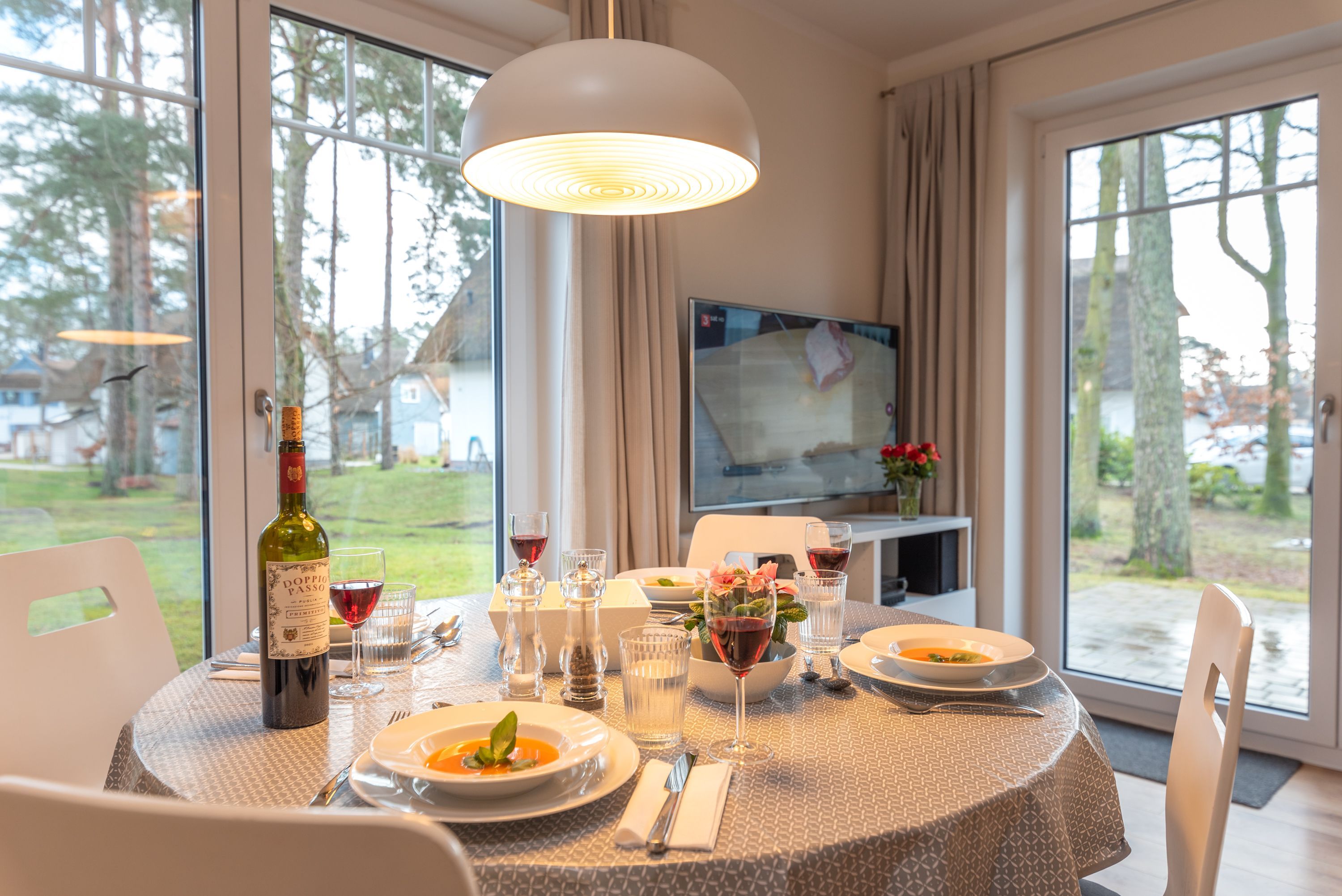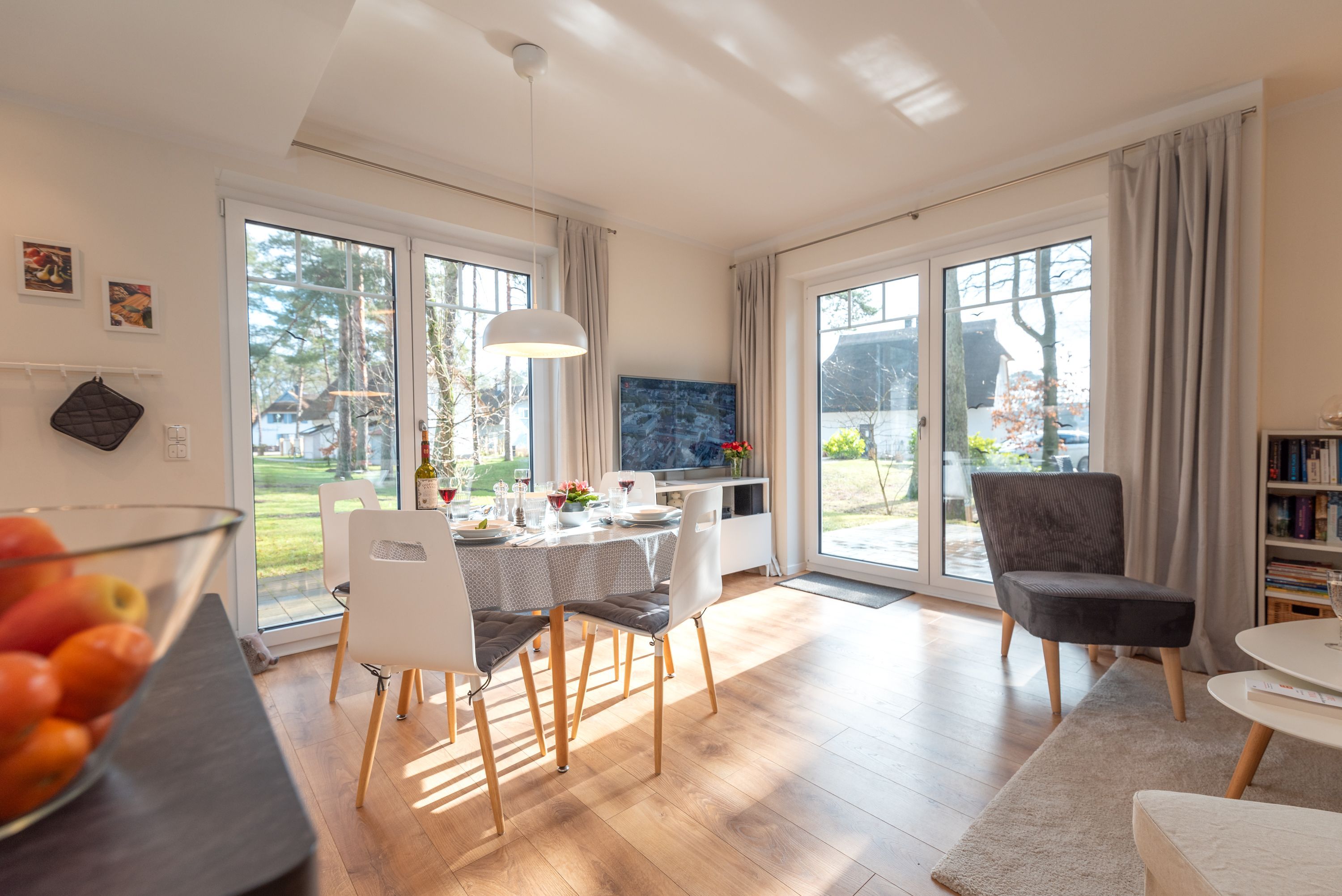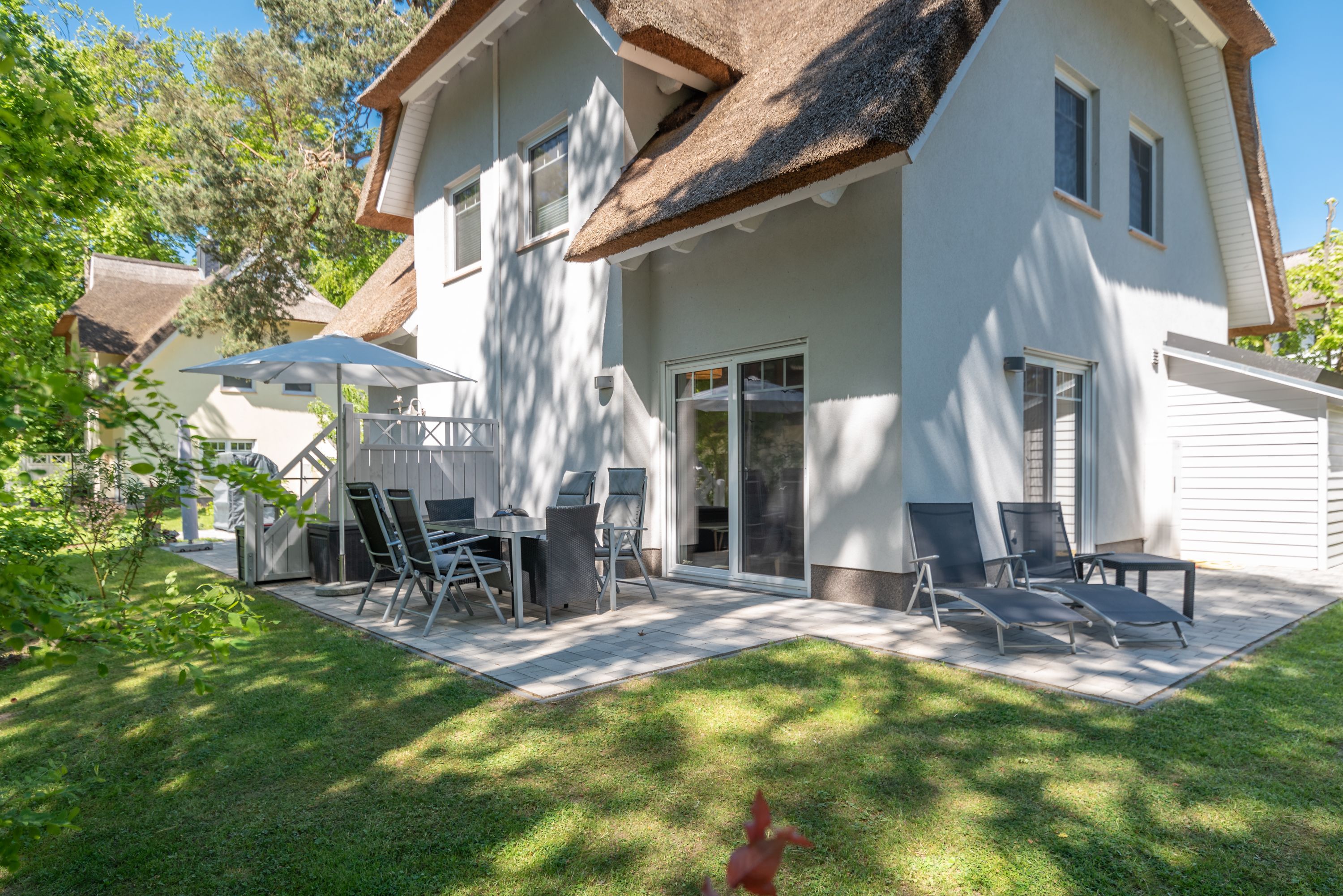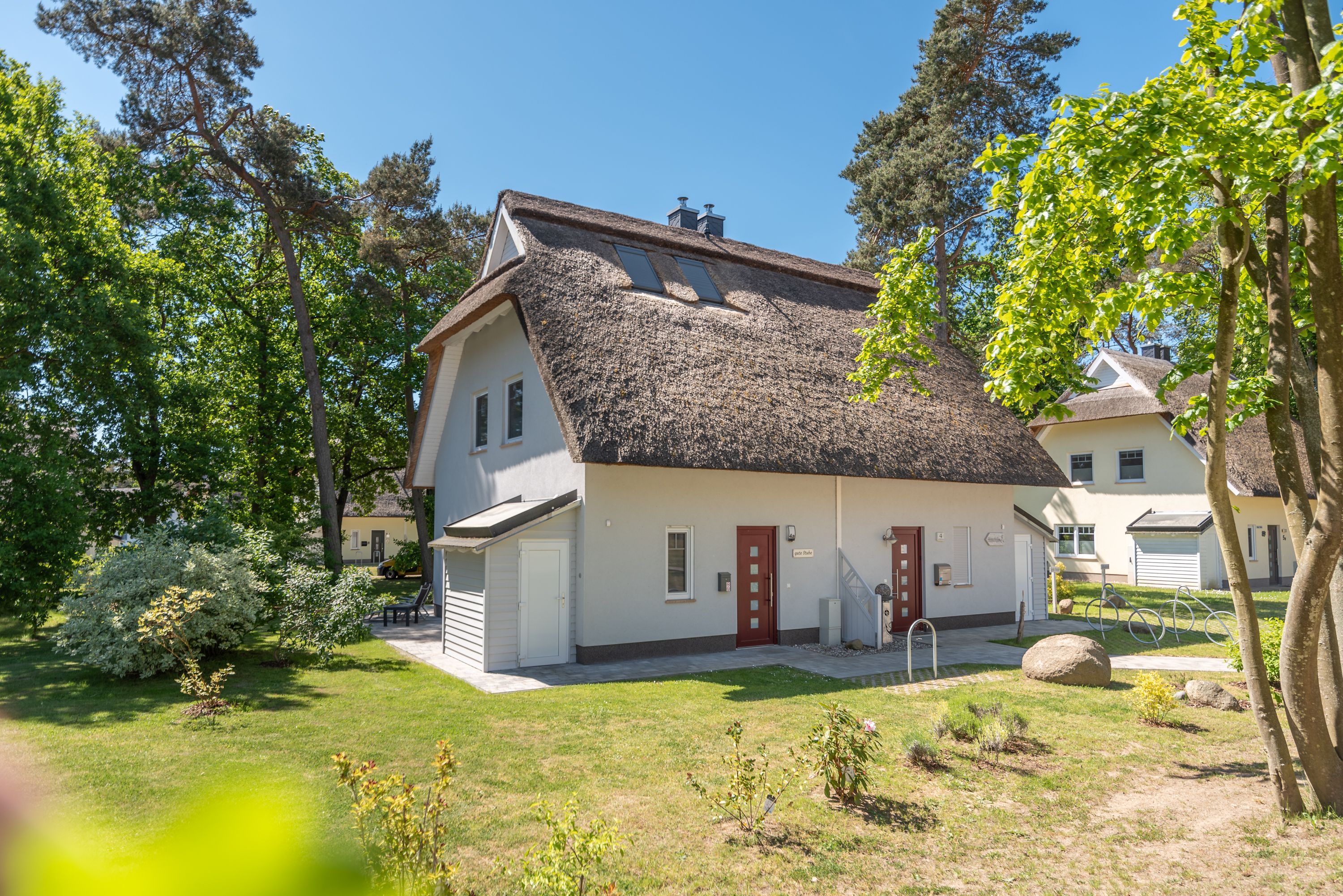 Das charmante Ferienhaus Gute Stube befindet sich im Fischerdorf Zirchow auf Usedom und wurde 2019 fertiggestellt. Es handelt sich um eine Doppelhaushälfte mit gemütlichem Reetdach am Ende einer kleinen Stichstraße, so dass Sie auch vom geringen Autoverkehr im Dorf nicht behelligt werden und die Kinder um das Haus herum im Garten spielen können. Das Haus erstreckt sich u?ber zwei Etagen und ein ausgebautes Dachgeschoss. Es ist modern und freundlich eingerichtet.