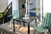 Unser Ferienhaus Wolkenlos bietet zwei großzügige 1-Raum-Apartements mit separatem Eingang und jeweils einer eigenen, überdachten Terrasse.