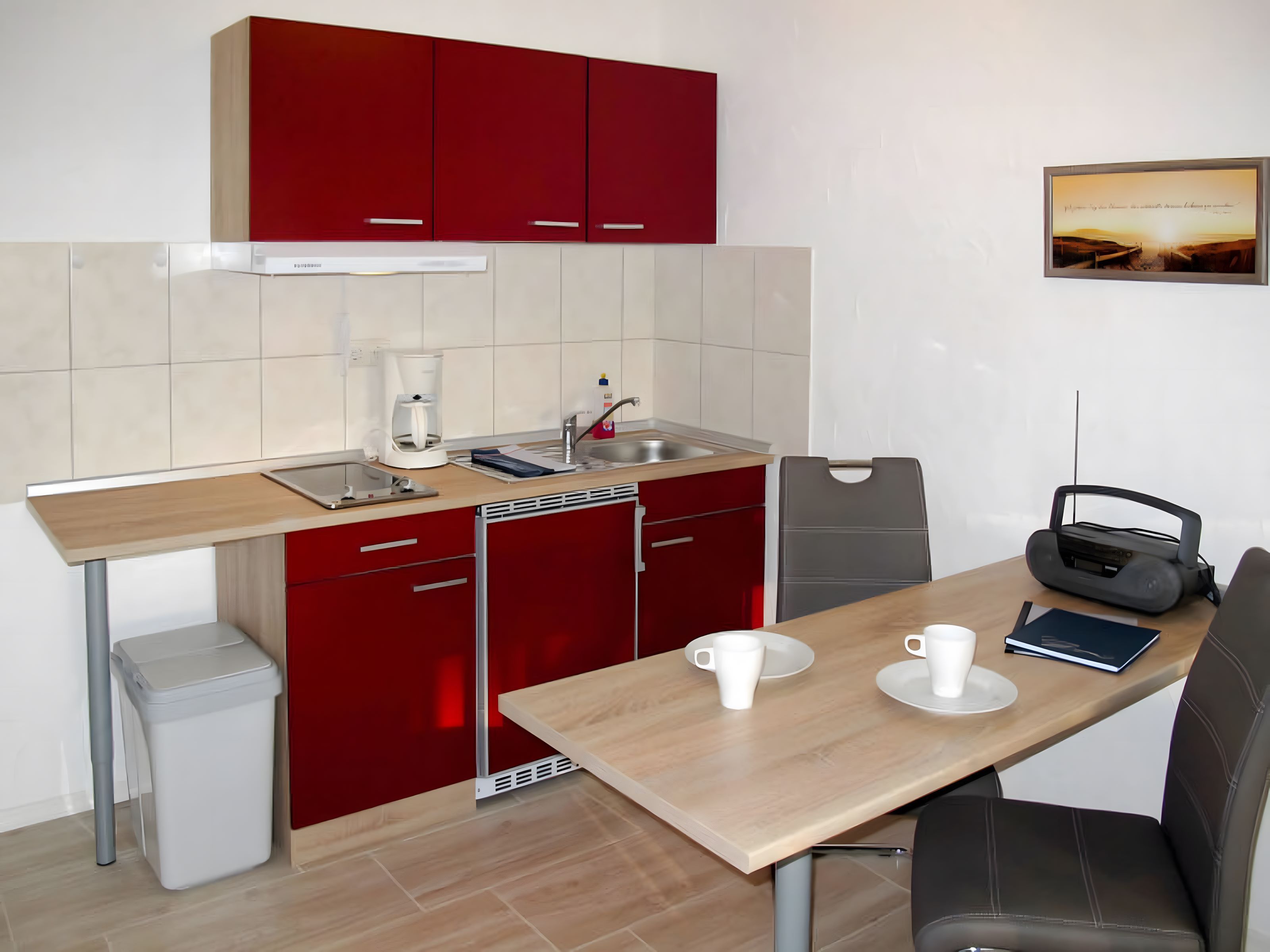 Das Appartement Wolkenlos01 begeistert mit einer einladend modernen Einrichtung und liebevoll ausgewählten Accessoires mit Bezug zur Ostsee ein echtes Highlight für alle, die Komfort und Stil lieben! Auf 35 m² finden 2 Personen und ein Kleinkind viel Platz zum Entspannen und Wohlfühlen. Die Wohnung überzeugt mit einem hellen, offenen Wohn-/Schlafzimmer, das mit einem gemütlichen Doppelbett und einer bequemen Sitzgelegenheit ausgestattet ist. Der abgetrennte Küchenbereich mit Essplatz bietet Ihnen alles, was Sie für eine schnelle Mahlzeit oder ein kräftigendes Frühstück brauchen von Kühlschrank über Cerankochfelder bis hin zu Mikrowelle, Kaffeemaschine, Wasserkocher und Toaster.