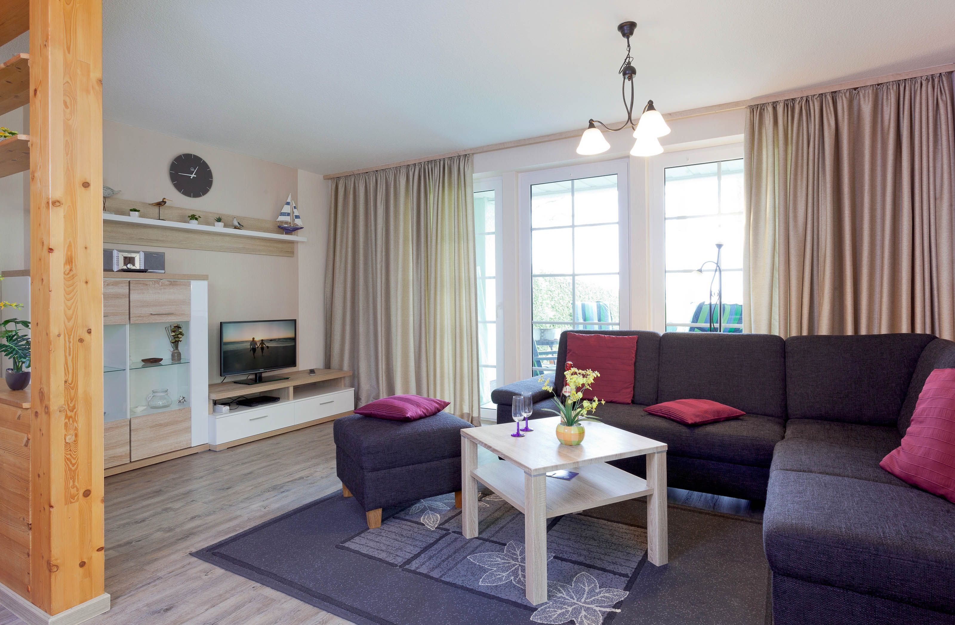 Im Erdgeschoss können Sie es sich zu jeder Zeit im großzügigen Wohnbereich mit Sitzgarnitur und Flat-TV gemütlich machen.