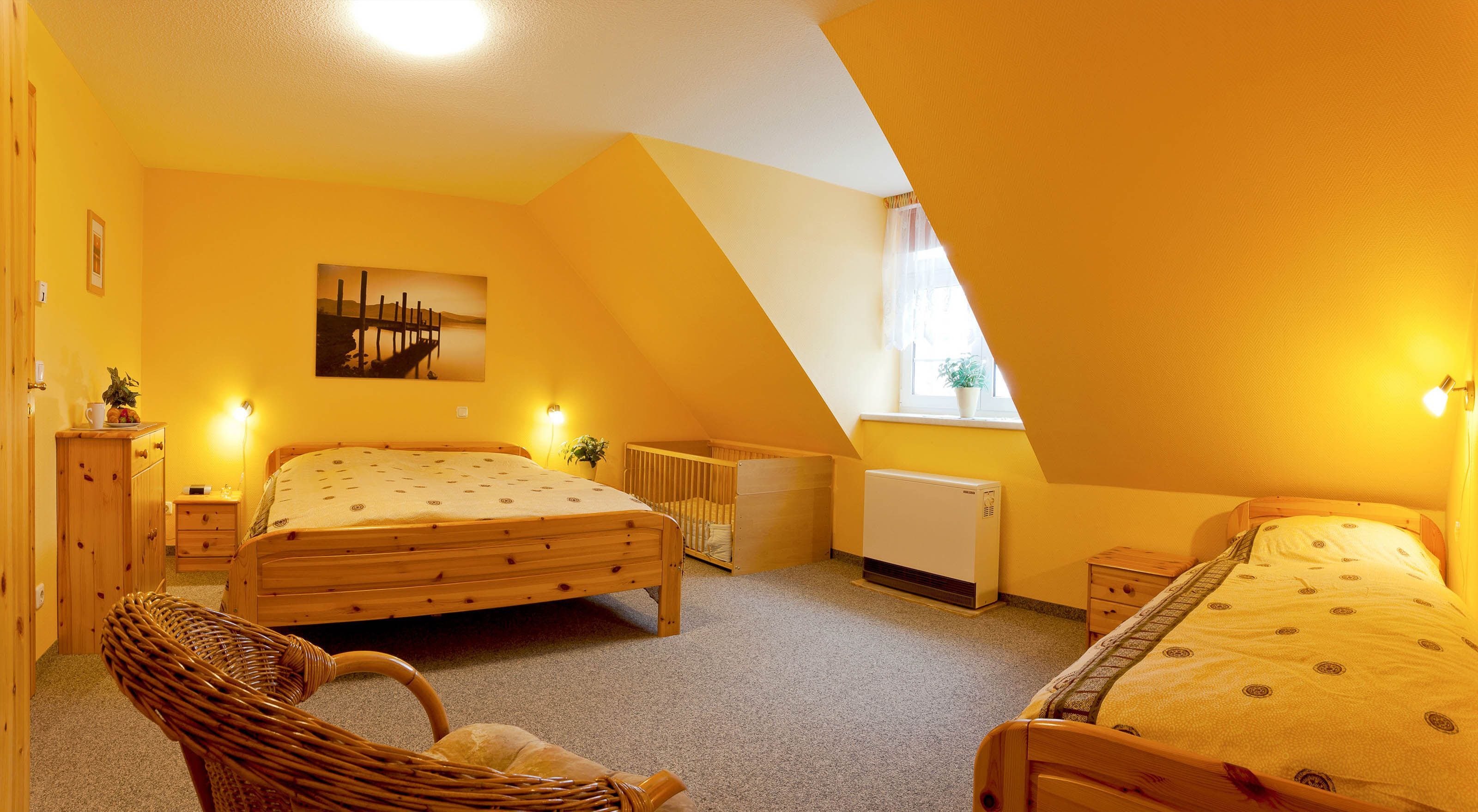 Das modern eingerichtete Haus verfügt über zwei separate Schlafzimmer im Obergeschoss mit je einem großen, bequemen Doppelbett. Zusätzlich stehen Ihnen in den Schlafzimmern je ein Einzelbett bzw. eine Schlafcouch und ein Kinderbett zur Verfügung, sowie verschiedene Verstau- und Ablagemöglichkeiten.