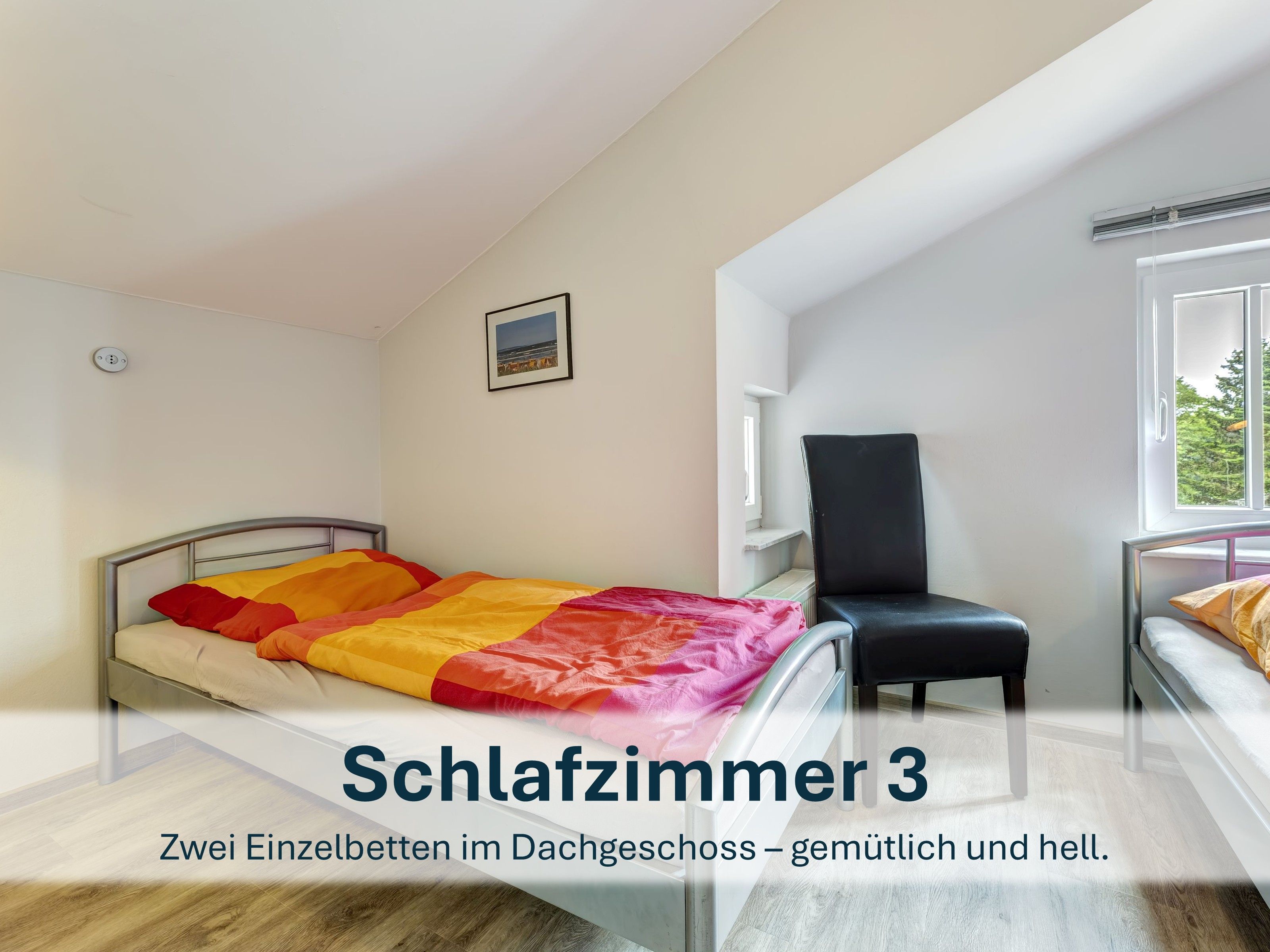 Schlafzimmer mit zwei Einzelbetten & Kommode,