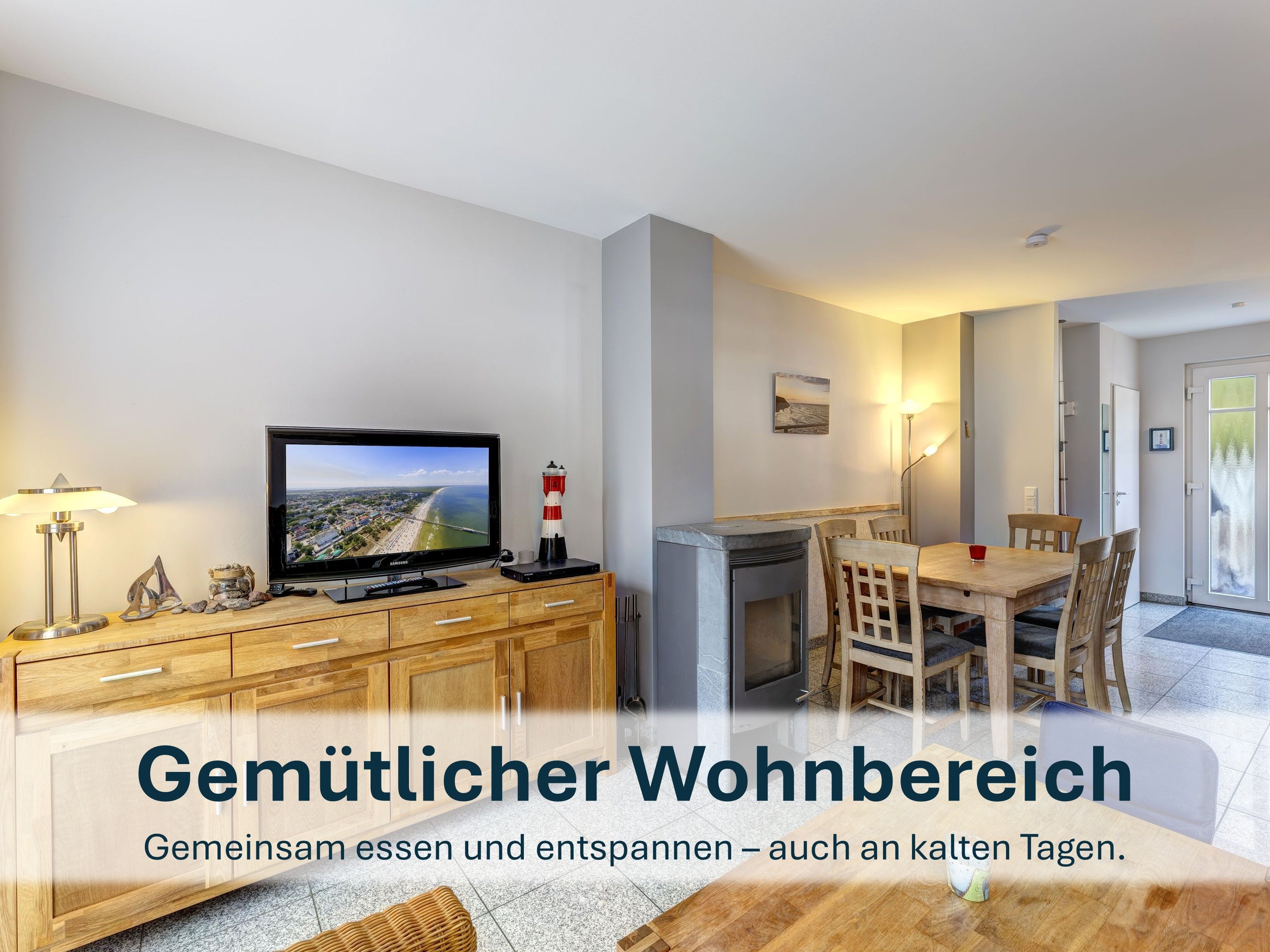 Großer Essbereich & Wohnraum mit Kaminofen für gemütliche Abende