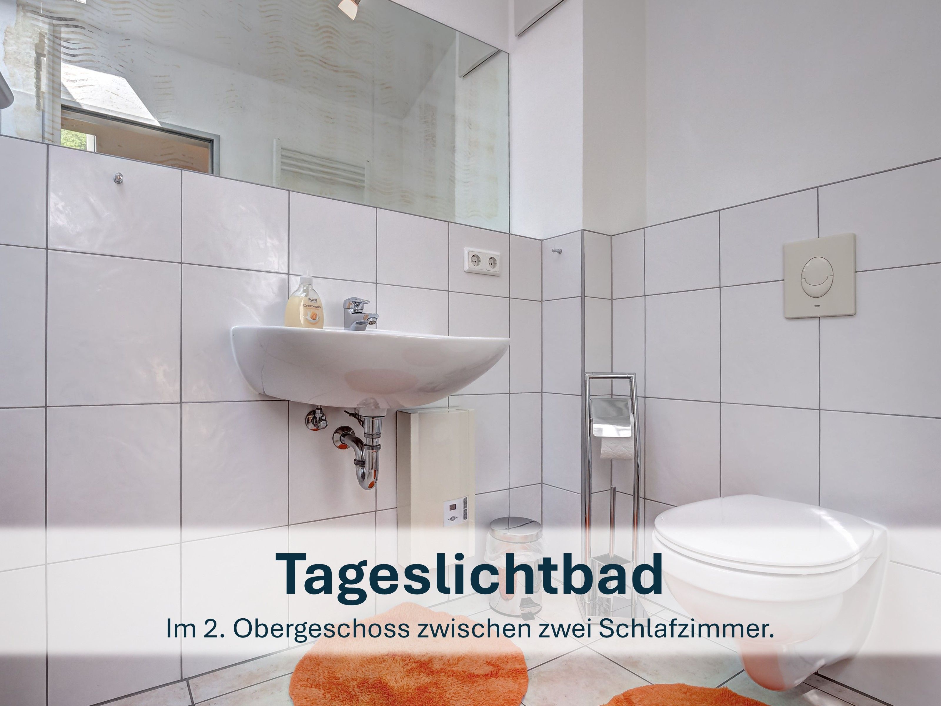 Badezimmer mit Badewanne, WC & Waschbecken,