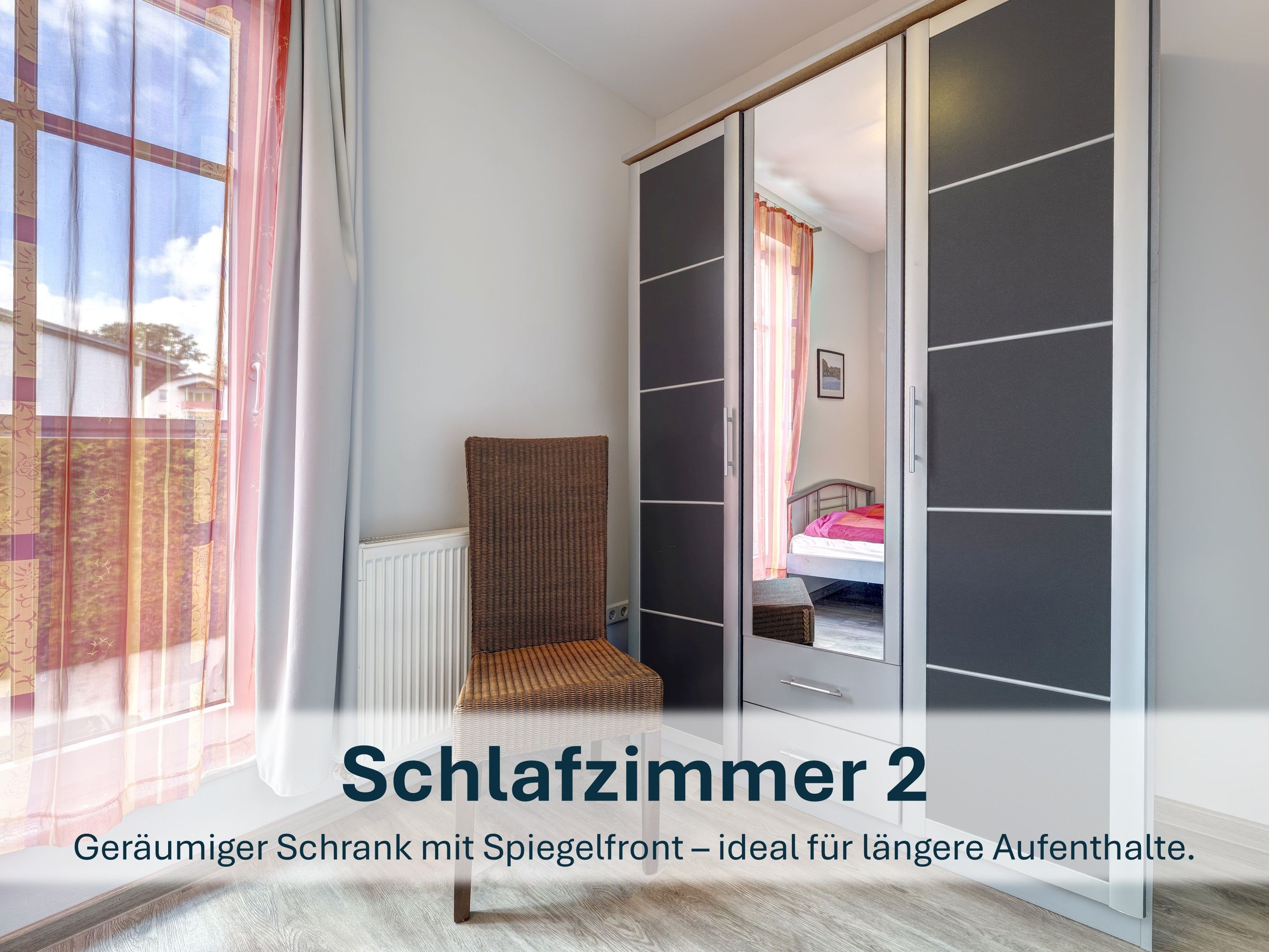 Schlafzimmer mit Doppelbett (140cm breit) & Kleiderschrank,