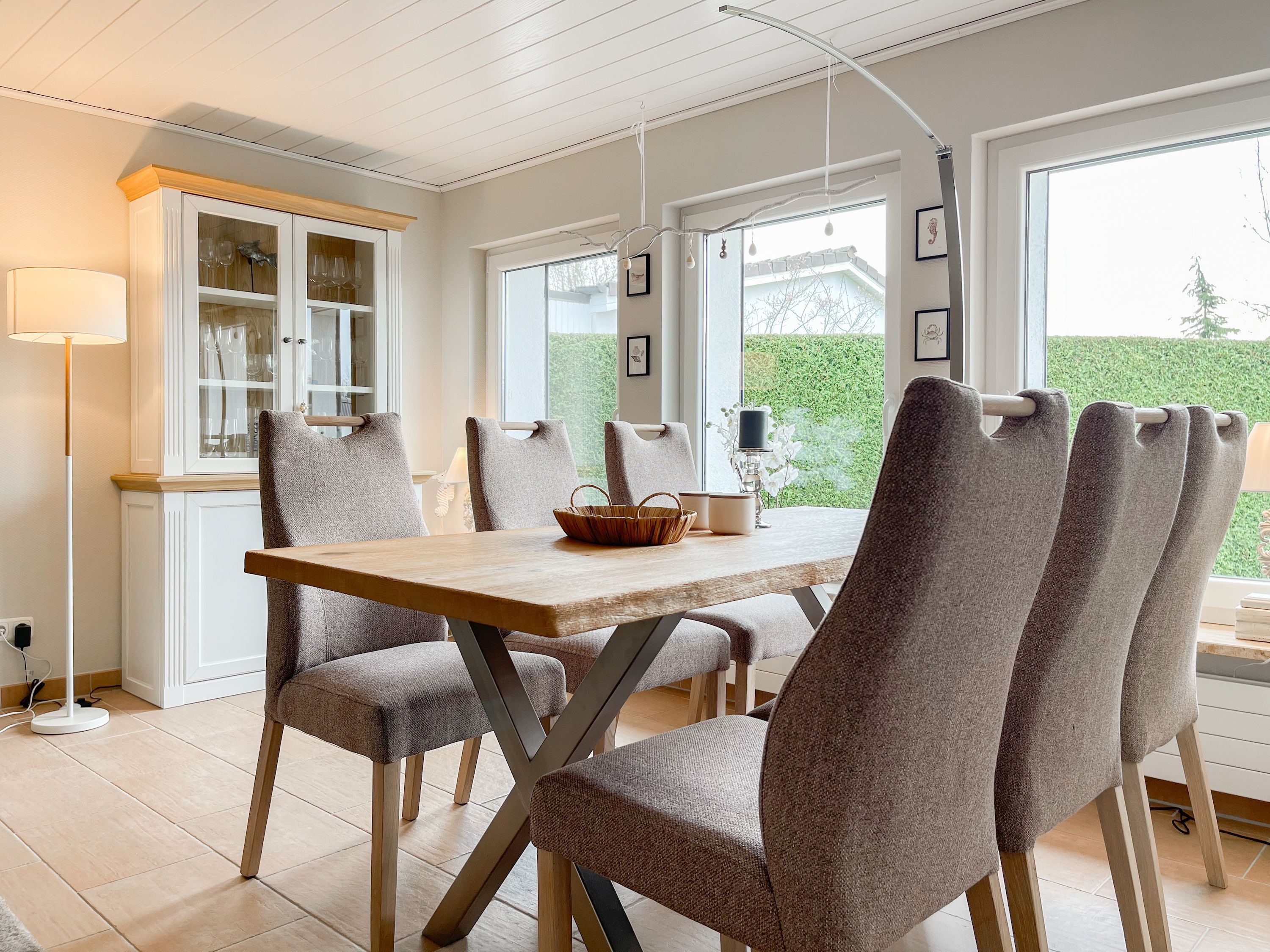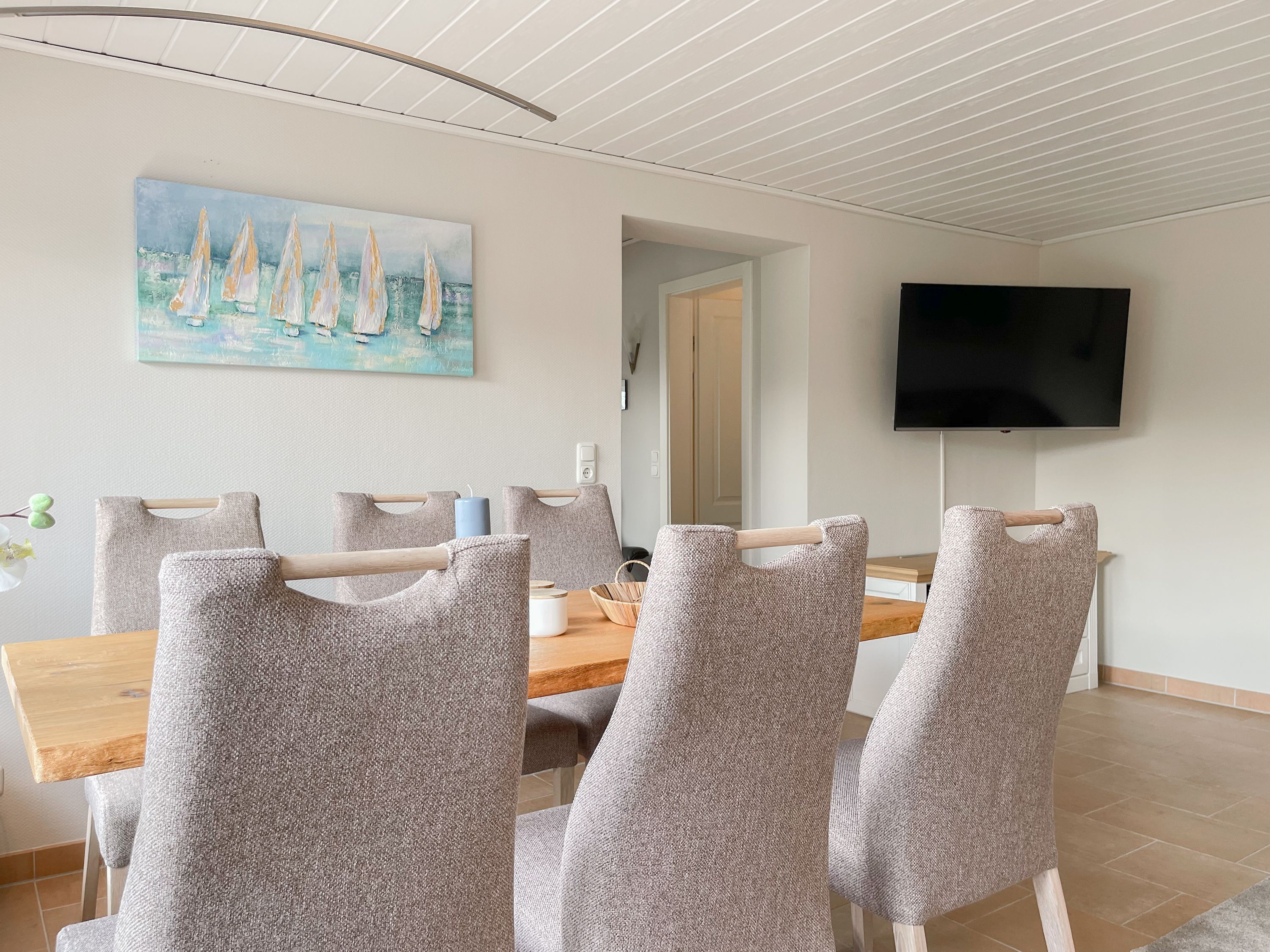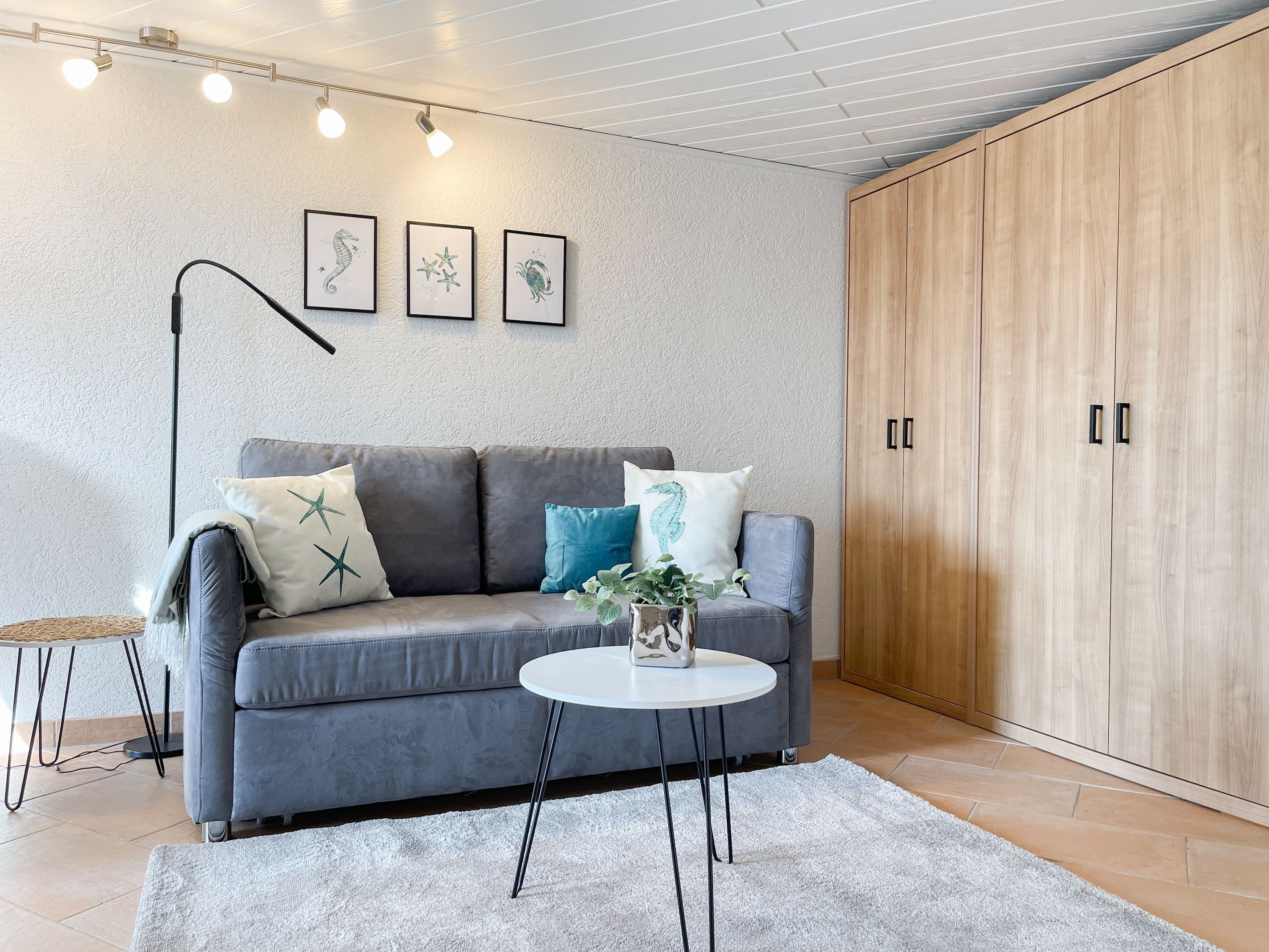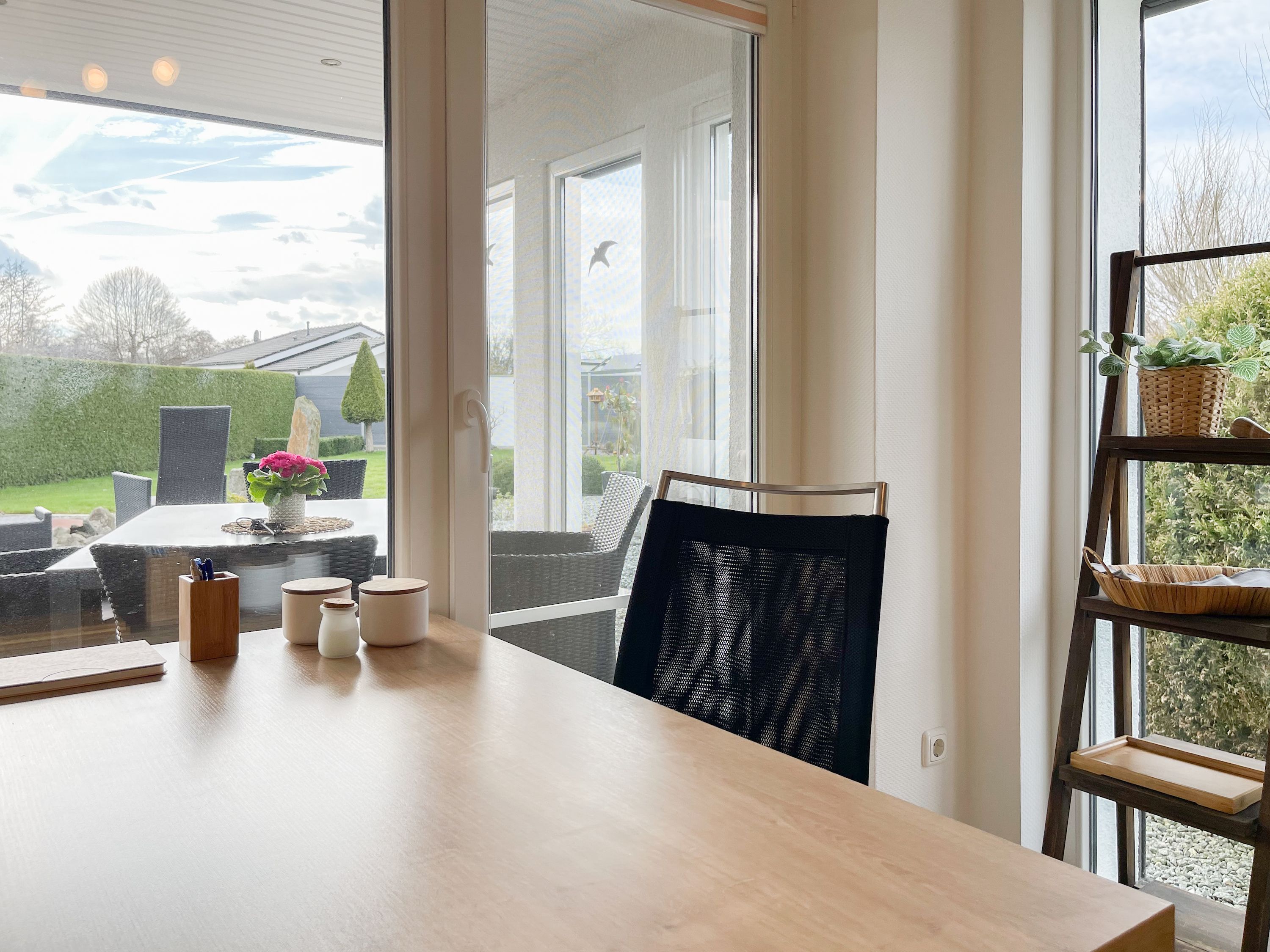 Das Objekt besteht aus 2 Wohneinheiten mit separaten Eingängen, die direkt nebeneinander liegen. Die Hauptwohneinheit bietet auf ca. 75 qm ausreichend Platz für eine Familie bis zu 5 Personen. Es erwartet Sie ein lichtdurchfluteter Wohnbereich mit wunderschönem Blick in den weitläufigen Garten; eingerichtet mit einem Sofa und einem großzügigen Essbereich für gemeinsame Mahlzeiten, Spieleabende oder gemütliches Beisammensein. Hobbyköche können sich freuen, denn die Küche ist mit allen technischen Geräten bis zur integrierten Waschmaschine perfekt ausgestattet. Der überdachte Bereich der Terrasse schließt sich direkt an die Küche an, sodass kurze Wege für Outdoor Mahlzeiten garantiert sind. Es gibt ein kleines Schlafzimmer mit einem Einzelbett (90x200) sowie zwei weitere Schlafzimmer mit Doppelbetten (160x200 und 140x200), die über das Bad zu erreichen sind. Das separate Studio (Deckenhöhe 209 cm) ist mit einem Schlafsofa (140x200), einem Relaxsessel, Kleiderschrank, TV und einem Essbereich für 2 Personen eingerichtet. Es gibt ein weiteres Duschbad sowie eine kleine Küche mit Kühlschrank, kleiner Kochplatte, Kaffeemaschine, Wasserkocher, Toaster, Waschmaschine und Trockner.