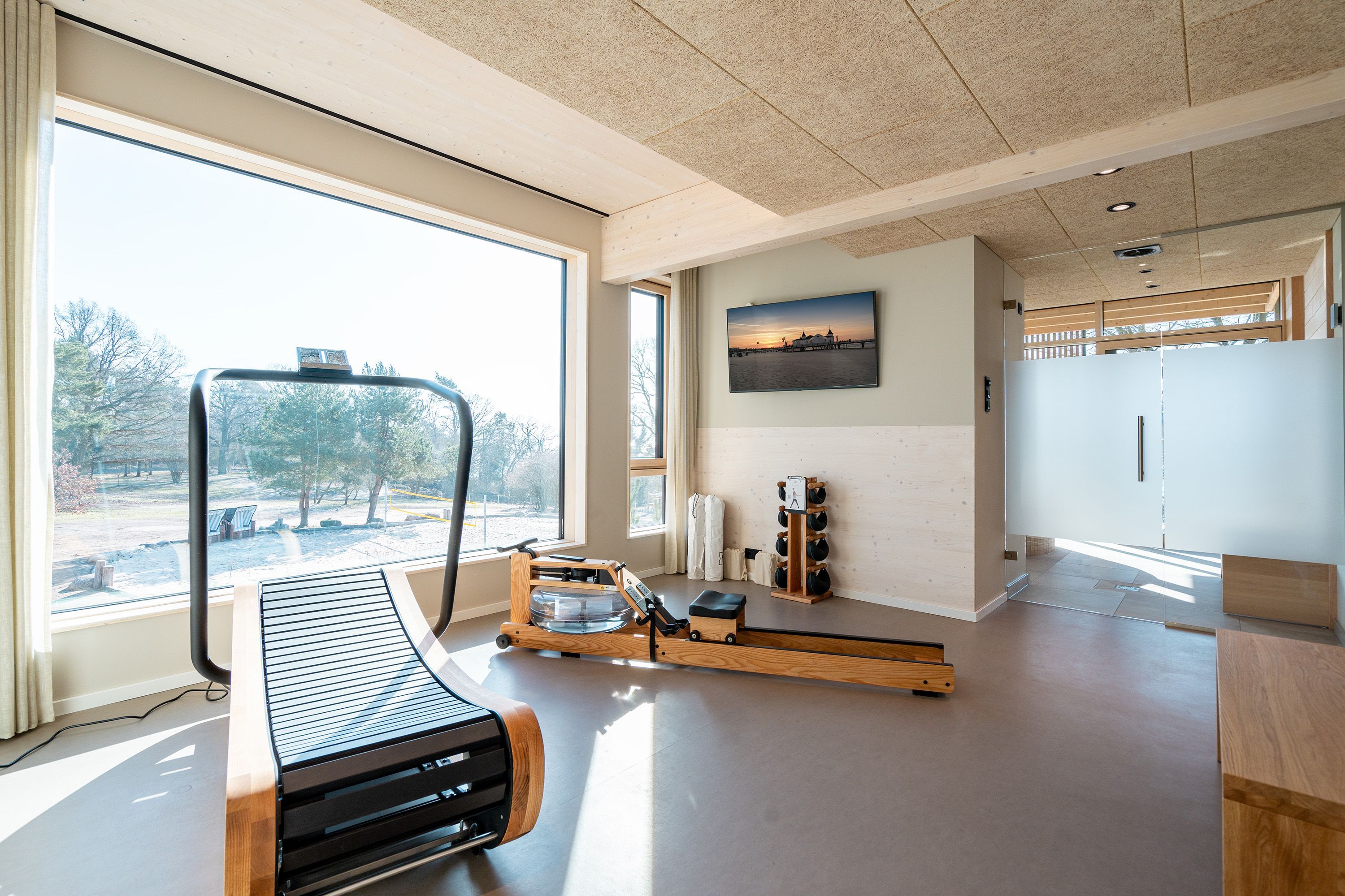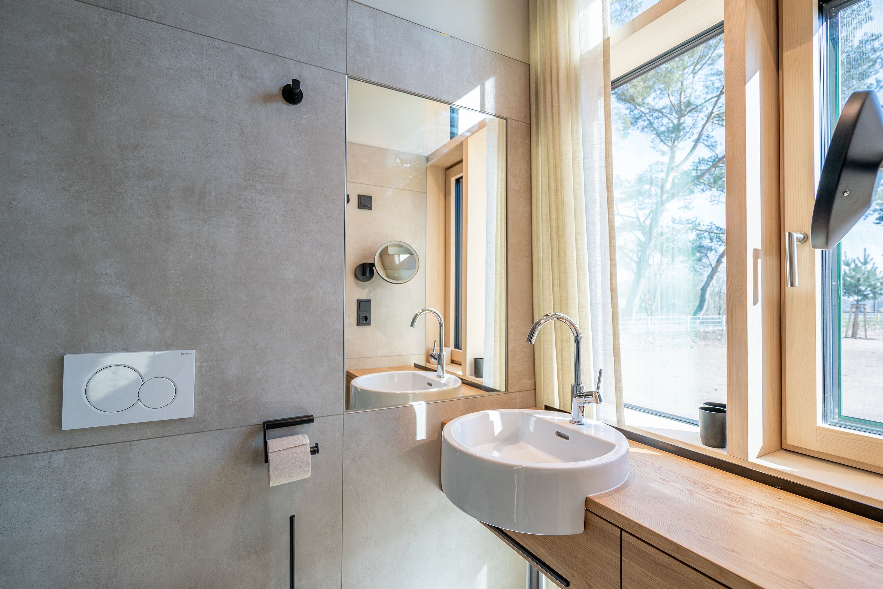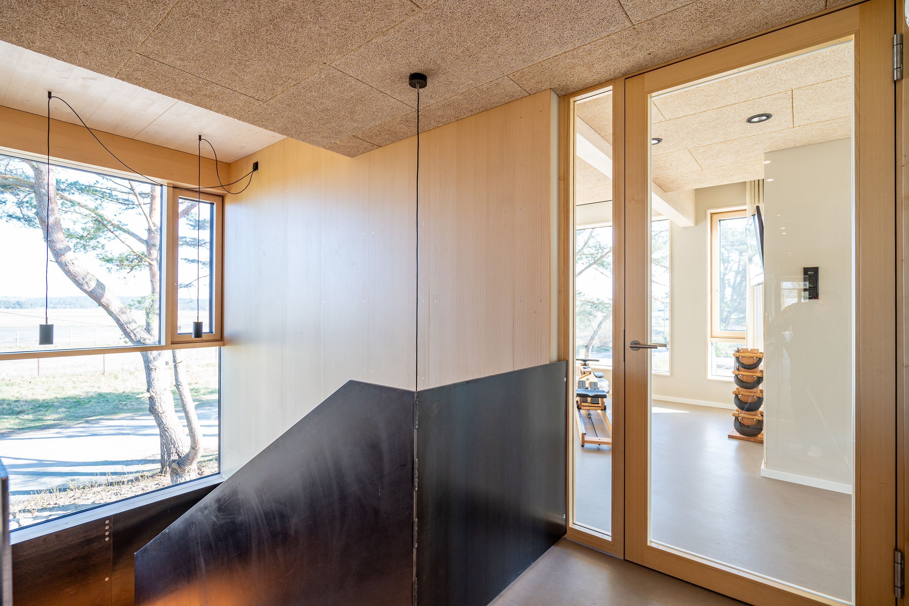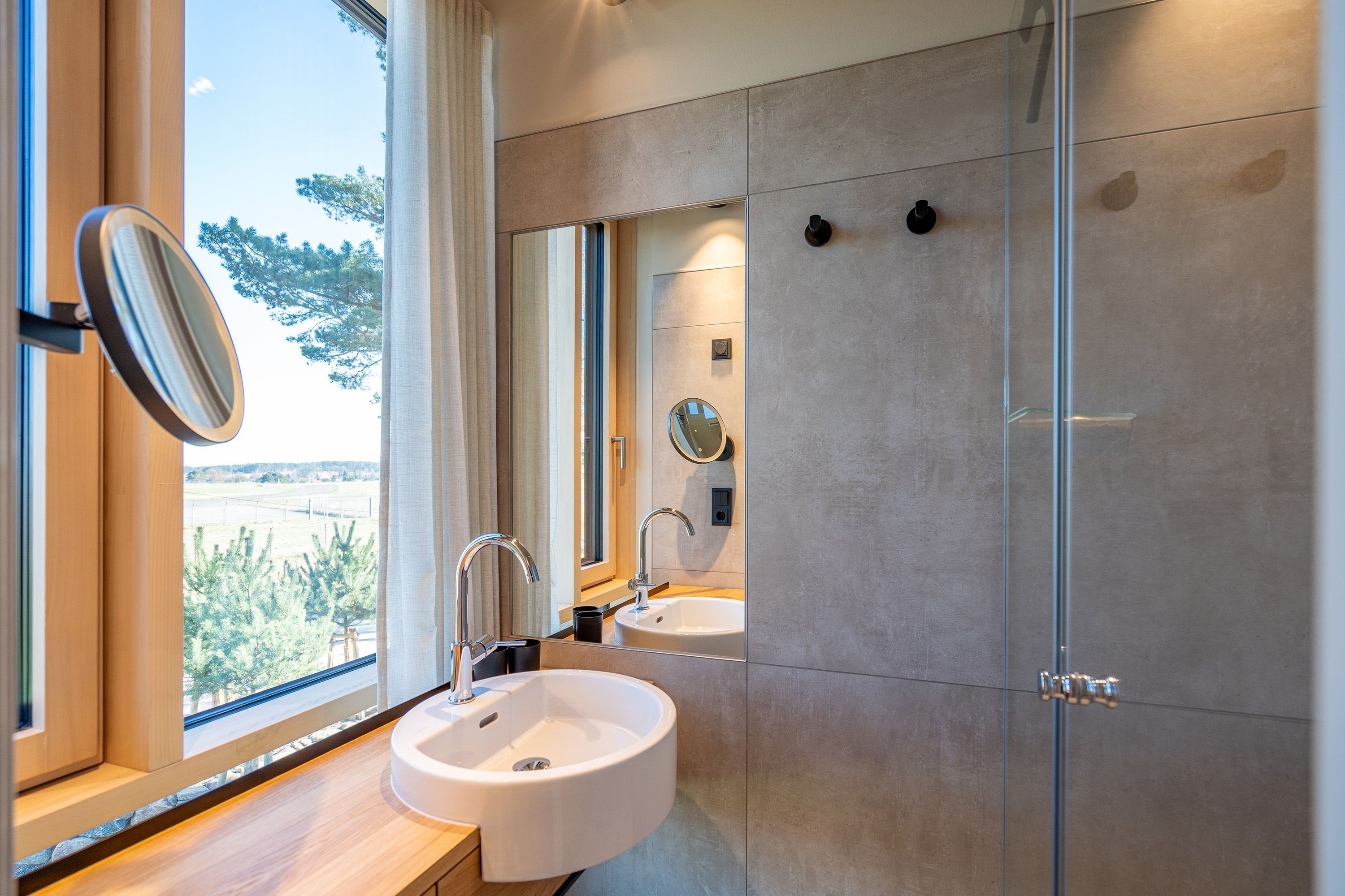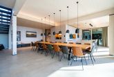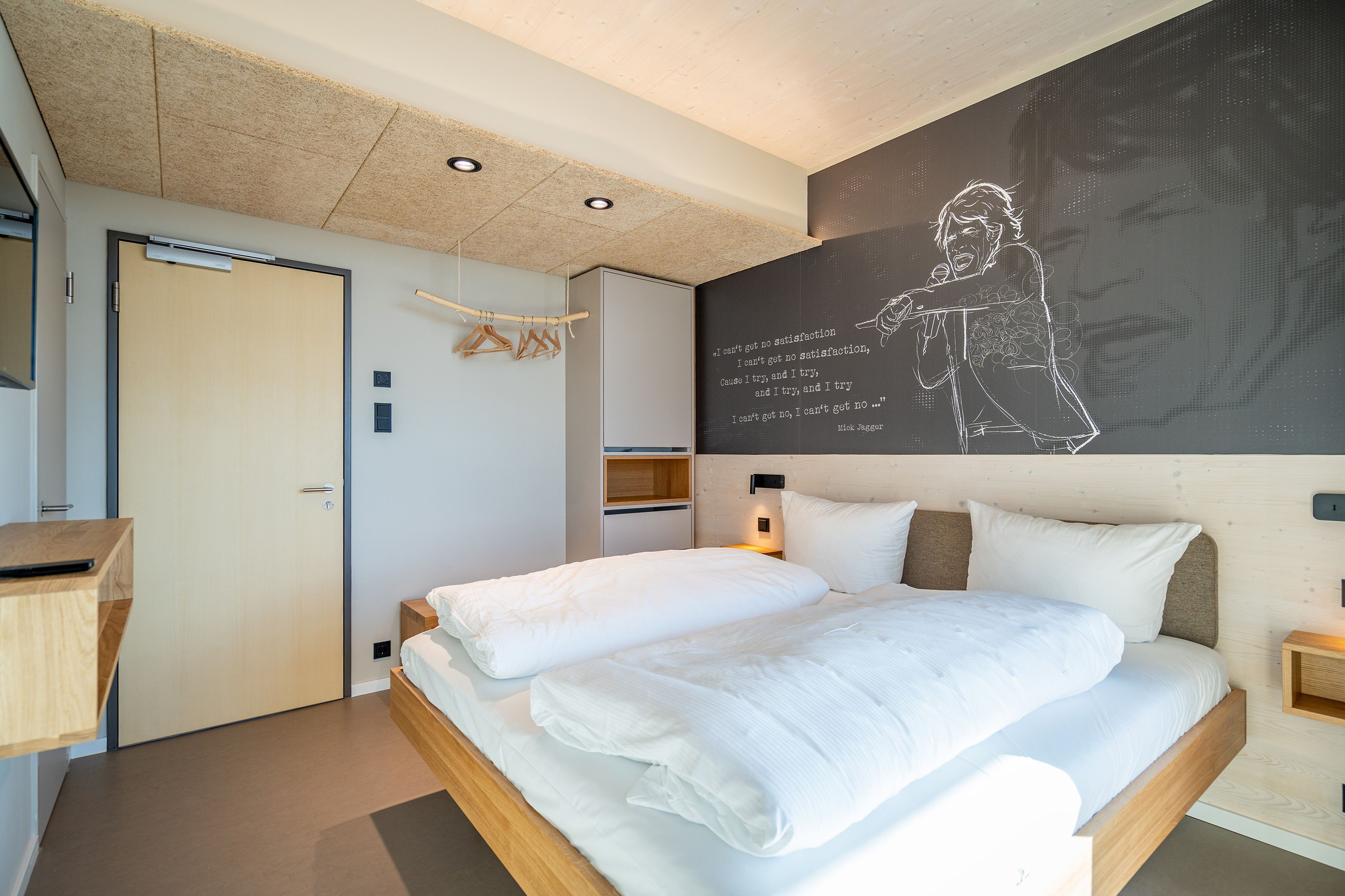In dem 300 Quadratmeter großen Seminar- und Gästehaus mit großzügiger Außenanlage können bis zu 16 Personen nebst einem Kleinkind im Kinderreisebett beim Arbeiten oder Feiern, gemeinsam die Zeit genießen. In dieser besonderen Location kommen Bewohner nicht nur runter, sondern auf schöpferische Ideen voller Rhythm and Blues. Denn in der modernen Architektur des Hauses aus Stahl, Beton und Holz stecken jede Menge Reminiszenzen an die großen Künstler des Rockn Roll. Die Liebe zum musikalischen Detail steckt in vielen Kleinigkeiten. Wer mit offenen Augen durchs Haus schlendert, wird garantiert inspiriert. Legen Sie doch eine Platte auf dem Plattenspieler auf und träumen Sie sich in die Klänge großartiger Songs.Ein großer und offener Wohnbereich im Erdgeschoss ist perfekt dafür gemacht, Produktivität und Freizeit miteinander zu verbinden. Auch für große Familientreffen ist die Küstenkiste bestens geeignet. Im loftähnlichen Gemeinschaftsbereich lässt es sich wunderbar feiern, essen, gemeinsam kochen oder einfach nur zusammensitzen und das Leben genießen. Der Wohnbereich mit Ledersofas, Kamin und Klavier, der Essbereich mit riesiger Holztafel, die sich auch bestens zum Brainstormen, Diskutieren und Pläneschmieden eignet, und die supermoderne Küche sorgen für ein Gefühl von Freiheit und Nähe, von Unbeschwertheit und dem Fokus auf das Wesentliche. Auch im Innenhof und auf der Sonnenterrasse mit Grill laden zwei große Tafeln zum gemeinsamen Essen und Entspannen ein. Die Küche ist mit allem ausgestattet, was man sich für das Kochen in Gesellschaft nur wünschen kann. Sie verfügt über einen 6-Platten-Induktionsherd, einen Backofen sowie eine Mikrowelle-Backofen-Kombination. Auch mit 16 Mitbewohnern ist der Abwasch kein Problem. Denn den übernehmen zwei große Geschirrspüler. In den Schränken und in einem Serviceraum mit Waschmaschine, Trockner und zusätzlichem Kühl- und Gefrierschrank findet sich viel Stauraum für alle brauchbaren Utensilien, die dank Beschriftung, leicht zu finden sind. Die Gäste wohnen in acht Studios zwei im Erdgeschoss, sechs im 1. Obergeschoss mit Doppelbett, Kleiderschrank, Flat-TV, eigenem Tageslicht-Duschbad und separatem WC. Drei der Schlafzimmer verfügen über einen Zugang zum Balkon mit Haffblick. Aber auch alle anderen Zimmer haben aus dem Bett einen Blick ins Grüne. Jedes Zimmer ist einem anderen Musikgenie gewidmet. Entscheiden Sie selbst, ob Sie sich und ihre Träume lieber von Janis Joplin, Joni Mitchel oder von Bob Dylan beflügeln lassen wollen. Im Obergeschoss gibt es einen weiteren Loungebereich mit Flat-TV und Zugang zum Balkon. In einem Fitnessraum kann man sich an den hochwertigen Geräten der Firma Nohrd wunderbar auspowern, um anschließend in der Sauna oder im Whirlpool, die Energieakkus wieder aufzuladen. Doch das eigentliche Highlight des Anwesens ist der weitläufige Garten mit Beachvolleyballfeld auf echtem Strandsand, lauschigen Eckchen zum Sitzen, einem Hot Tub und einer großen Chillterrasse mit Haffblick. Parkplätze und eine Wallbox für Elektroautos (gegen Gebühr) gibt es vor dem Haus. Tierliebe Gäste können gegen Aufpreis bis zu zwei ihrer Lieblinge mitbringen.