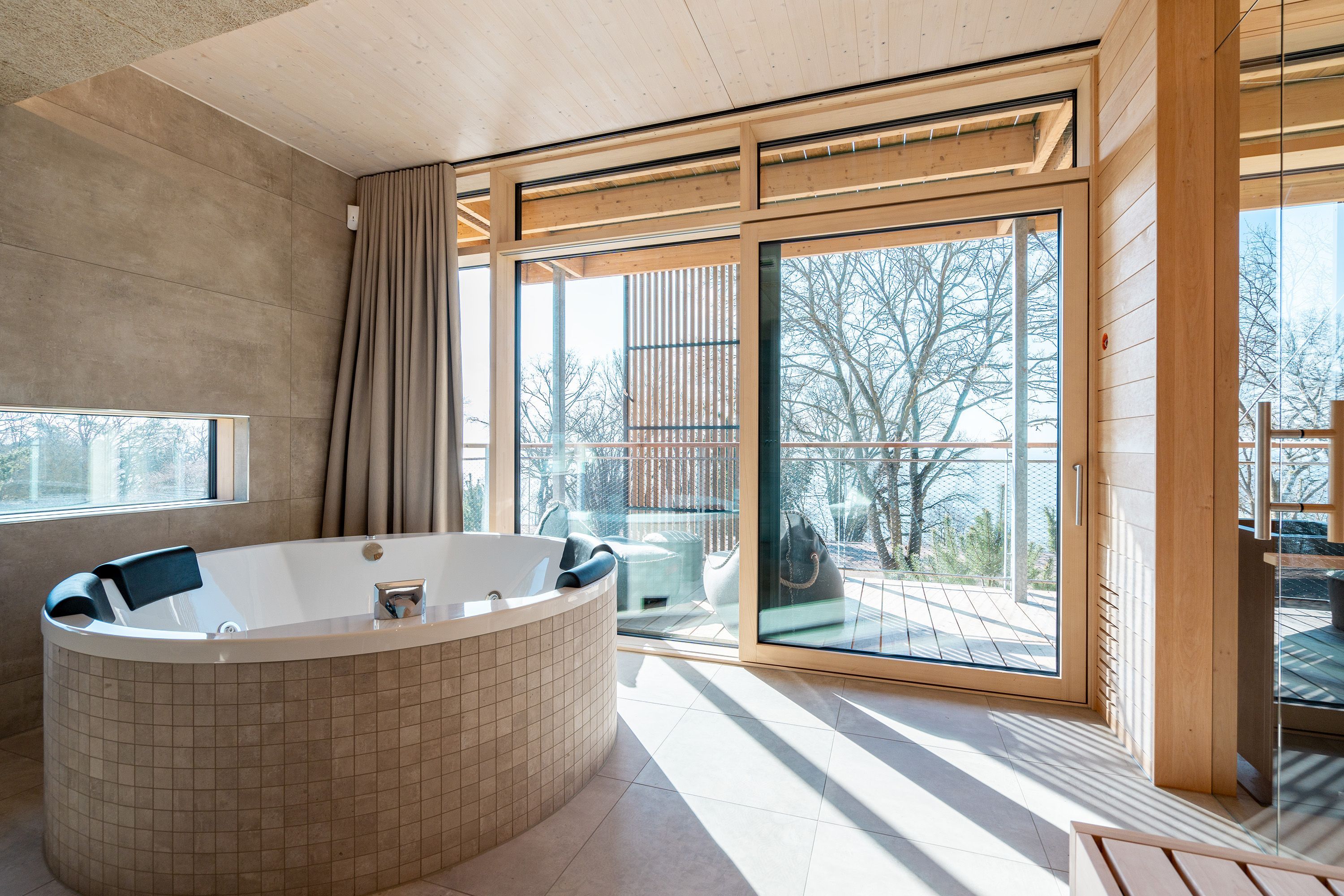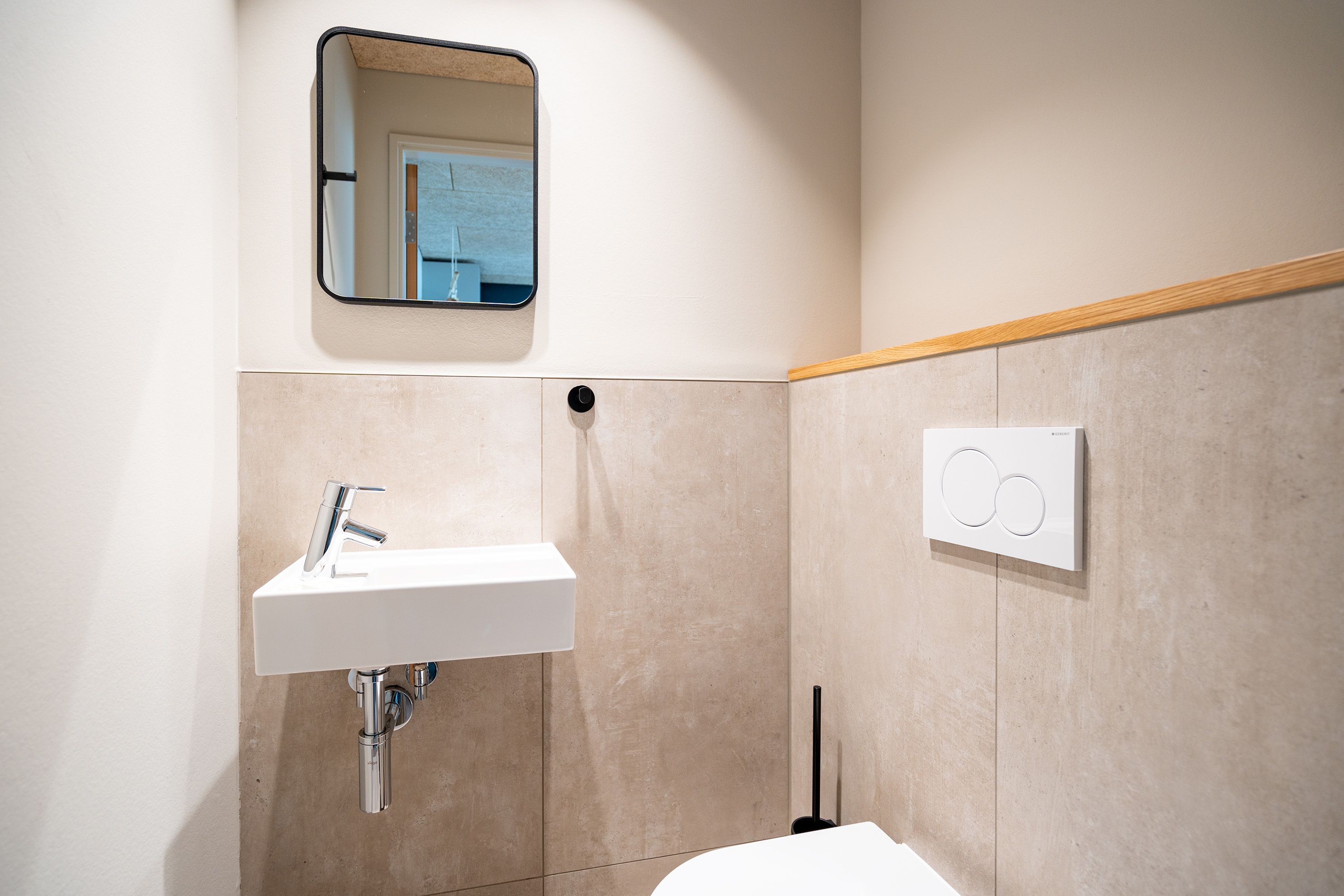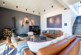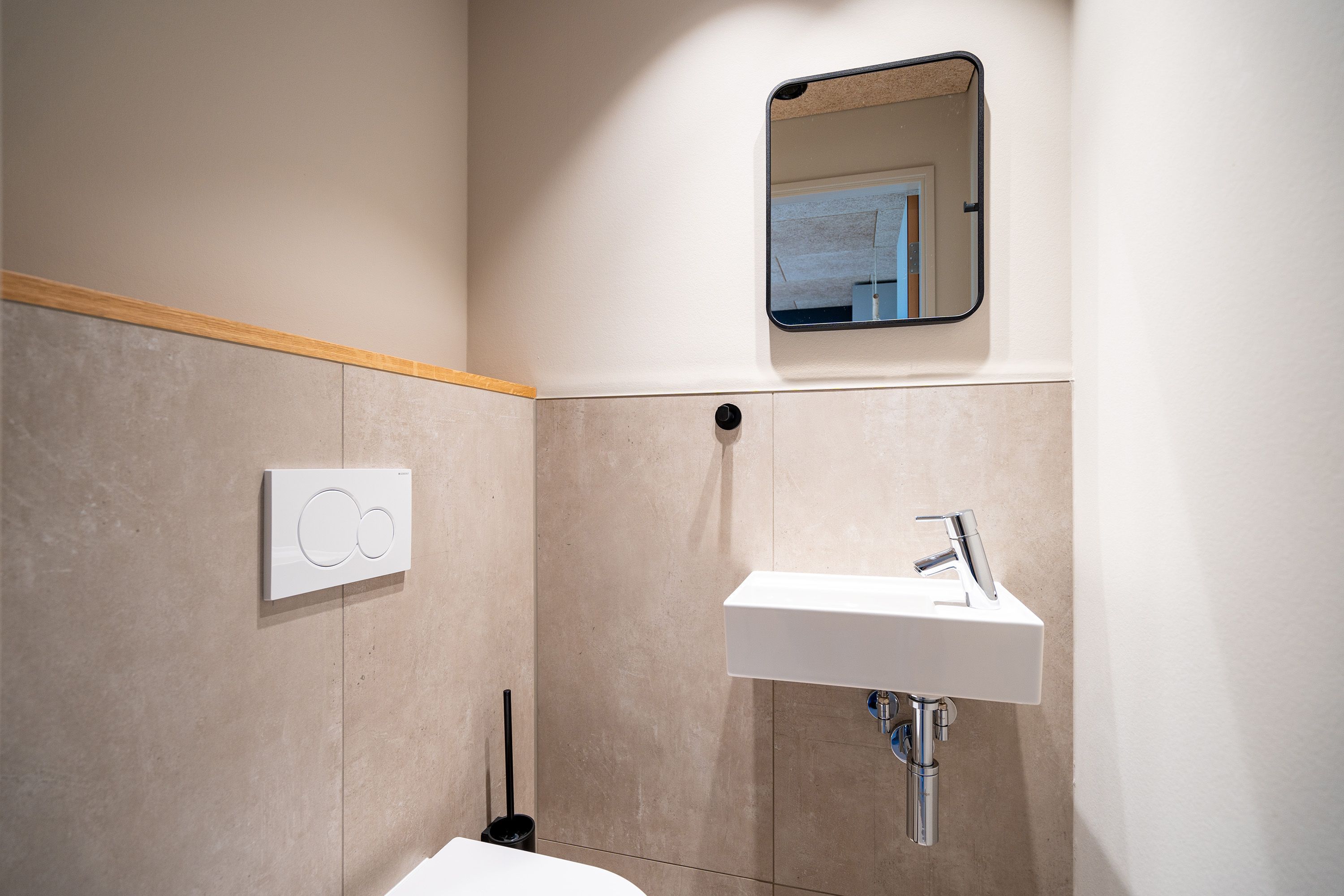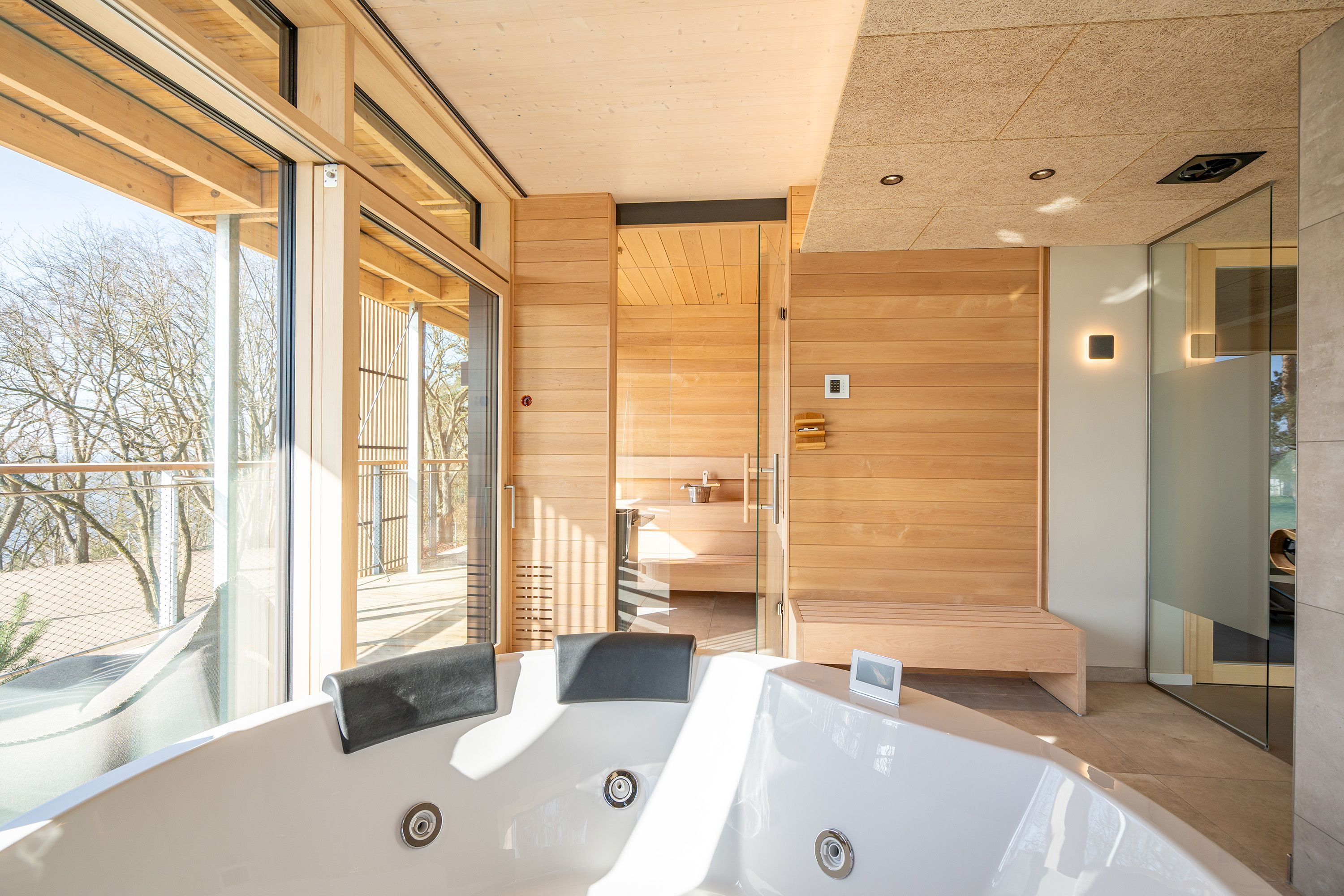 In dem 300 Quadratmeter großen Seminar- und Gästehaus mit großzügiger Außenanlage können bis zu 16 Personen nebst einem Kleinkind im Kinderreisebett beim Arbeiten oder Feiern, gemeinsam die Zeit genießen. In dieser besonderen Location kommen Bewohner nicht nur runter, sondern auf schöpferische Ideen voller Rhythm and Blues. Denn in der modernen Architektur des Hauses aus Stahl, Beton und Holz stecken jede Menge Reminiszenzen an die großen Künstler des Rockn Roll. Die Liebe zum musikalischen Detail steckt in vielen Kleinigkeiten. Wer mit offenen Augen durchs Haus schlendert, wird garantiert inspiriert. Legen Sie doch eine Platte auf dem Plattenspieler auf und träumen Sie sich in die Klänge großartiger Songs.Ein großer und offener Wohnbereich im Erdgeschoss ist perfekt dafür gemacht, Produktivität und Freizeit miteinander zu verbinden. Auch für große Familientreffen ist die Küstenkiste bestens geeignet. Im loftähnlichen Gemeinschaftsbereich lässt es sich wunderbar feiern, essen, gemeinsam kochen oder einfach nur zusammensitzen und das Leben genießen. Der Wohnbereich mit Ledersofas, Kamin und Klavier, der Essbereich mit riesiger Holztafel, die sich auch bestens zum Brainstormen, Diskutieren und Pläneschmieden eignet, und die supermoderne Küche sorgen für ein Gefühl von Freiheit und Nähe, von Unbeschwertheit und dem Fokus auf das Wesentliche. Auch im Innenhof und auf der Sonnenterrasse mit Grill laden zwei große Tafeln zum gemeinsamen Essen und Entspannen ein. Die Küche ist mit allem ausgestattet, was man sich für das Kochen in Gesellschaft nur wünschen kann. Sie verfügt über einen 6-Platten-Induktionsherd, einen Backofen sowie eine Mikrowelle-Backofen-Kombination. Auch mit 16 Mitbewohnern ist der Abwasch kein Problem. Denn den übernehmen zwei große Geschirrspüler. In den Schränken und in einem Serviceraum mit Waschmaschine, Trockner und zusätzlichem Kühl- und Gefrierschrank findet sich viel Stauraum für alle brauchbaren Utensilien, die dank Beschriftung, leicht zu finden sind. Die Gäste wohnen in acht Studios zwei im Erdgeschoss, sechs im 1. Obergeschoss mit Doppelbett, Kleiderschrank, Flat-TV, eigenem Tageslicht-Duschbad und separatem WC. Drei der Schlafzimmer verfügen über einen Zugang zum Balkon mit Haffblick. Aber auch alle anderen Zimmer haben aus dem Bett einen Blick ins Grüne. Jedes Zimmer ist einem anderen Musikgenie gewidmet. Entscheiden Sie selbst, ob Sie sich und ihre Träume lieber von Janis Joplin, Joni Mitchel oder von Bob Dylan beflügeln lassen wollen. Im Obergeschoss gibt es einen weiteren Loungebereich mit Flat-TV und Zugang zum Balkon. In einem Fitnessraum kann man sich an den hochwertigen Geräten der Firma Nohrd wunderbar auspowern, um anschließend in der Sauna oder im Whirlpool, die Energieakkus wieder aufzuladen. Doch das eigentliche Highlight des Anwesens ist der weitläufige Garten mit Beachvolleyballfeld auf echtem Strandsand, lauschigen Eckchen zum Sitzen, einem Hot Tub und einer großen Chillterrasse mit Haffblick. Parkplätze und eine Wallbox für Elektroautos (gegen Gebühr) gibt es vor dem Haus. Tierliebe Gäste können gegen Aufpreis bis zu zwei ihrer Lieblinge mitbringen.
