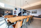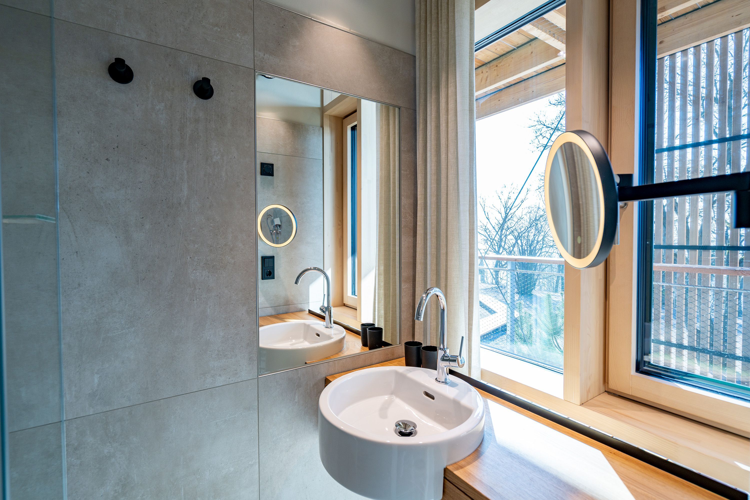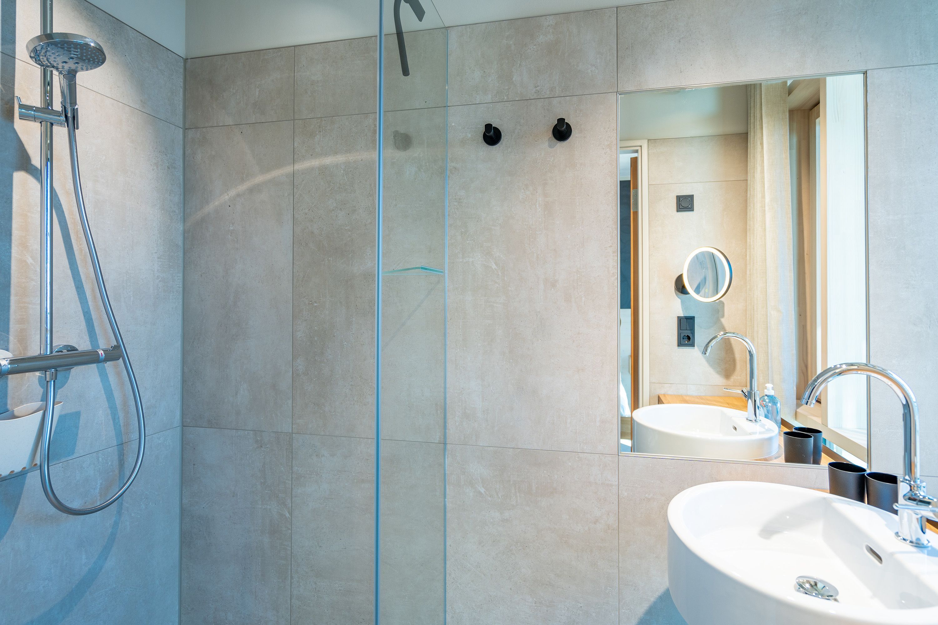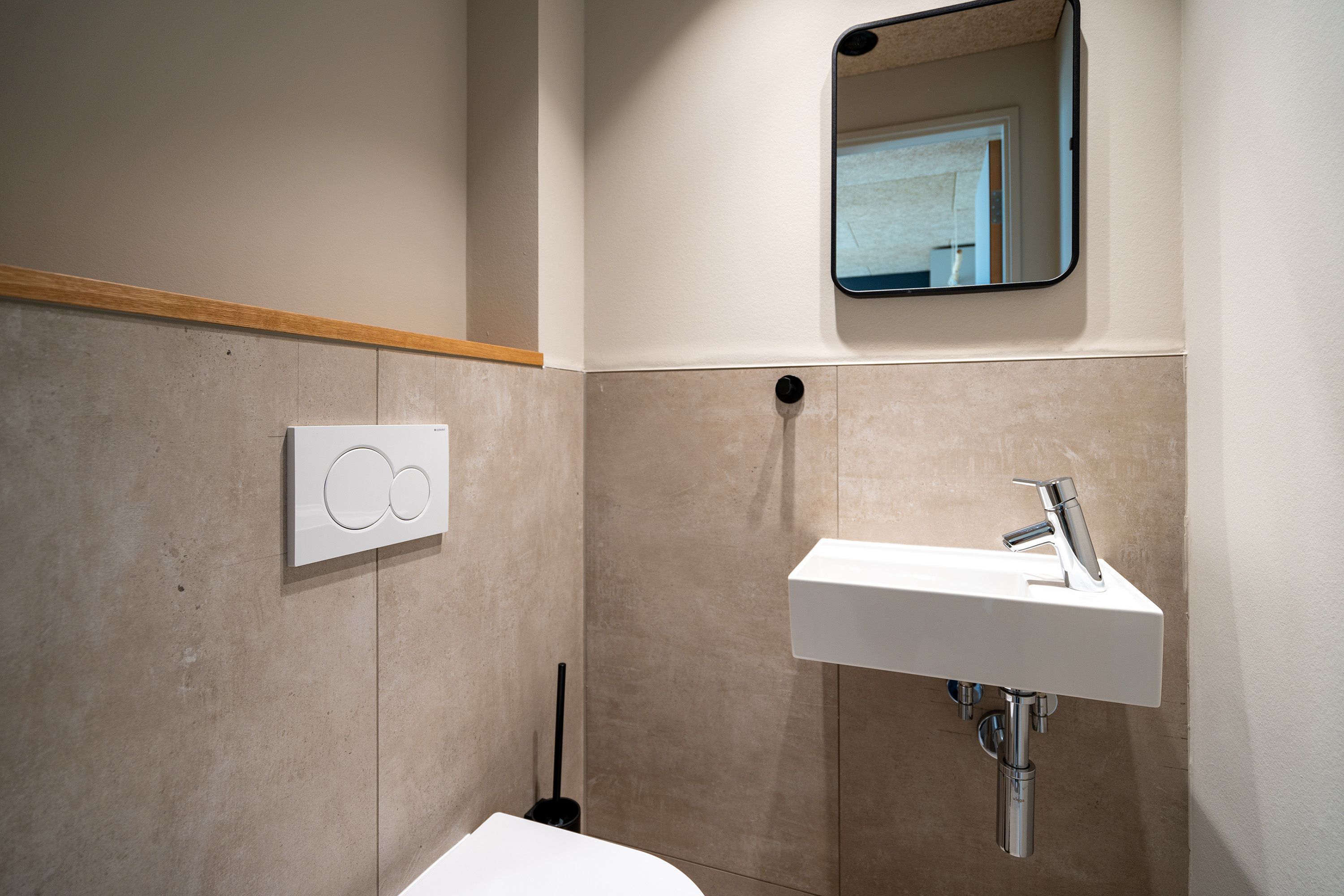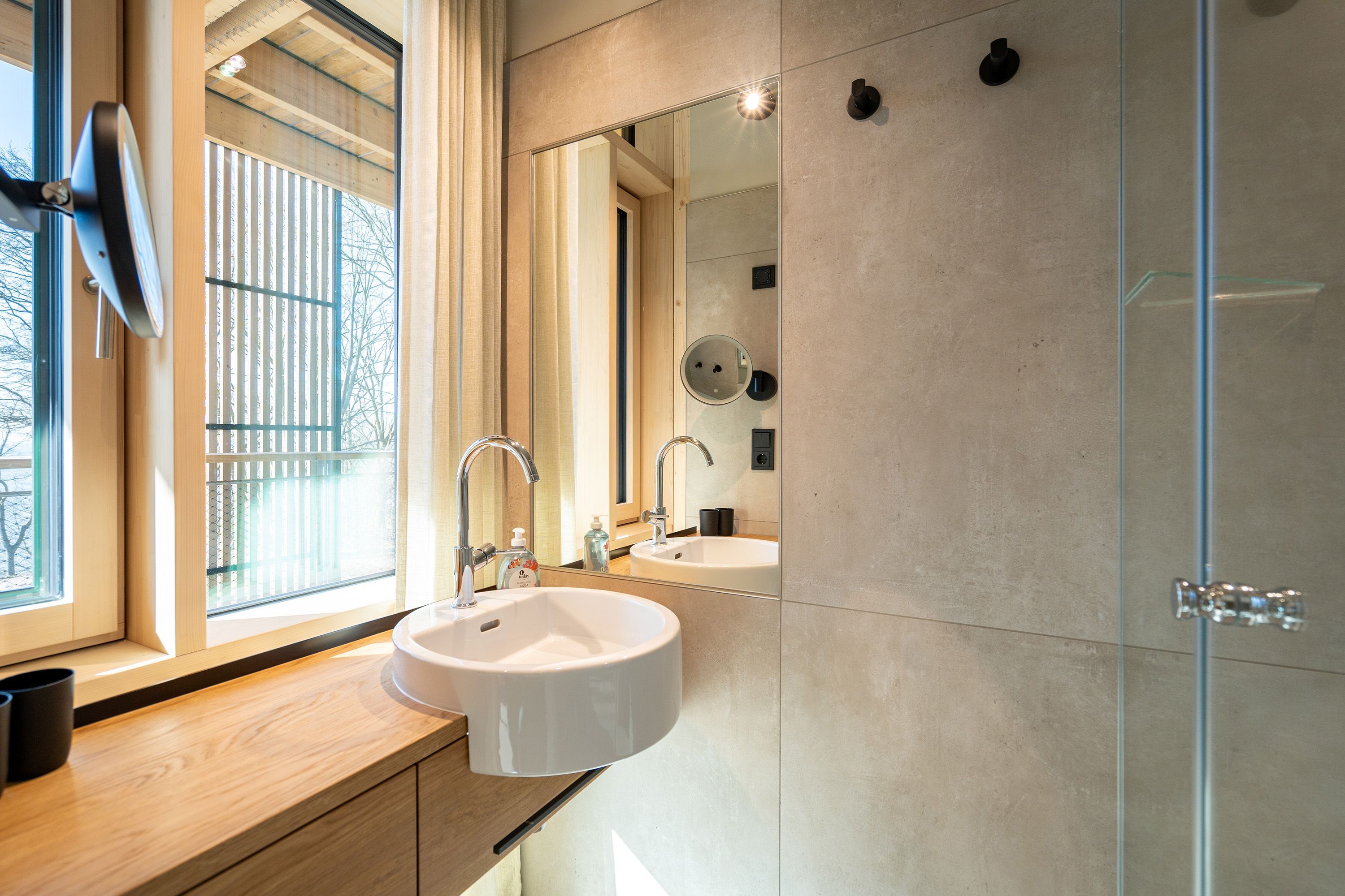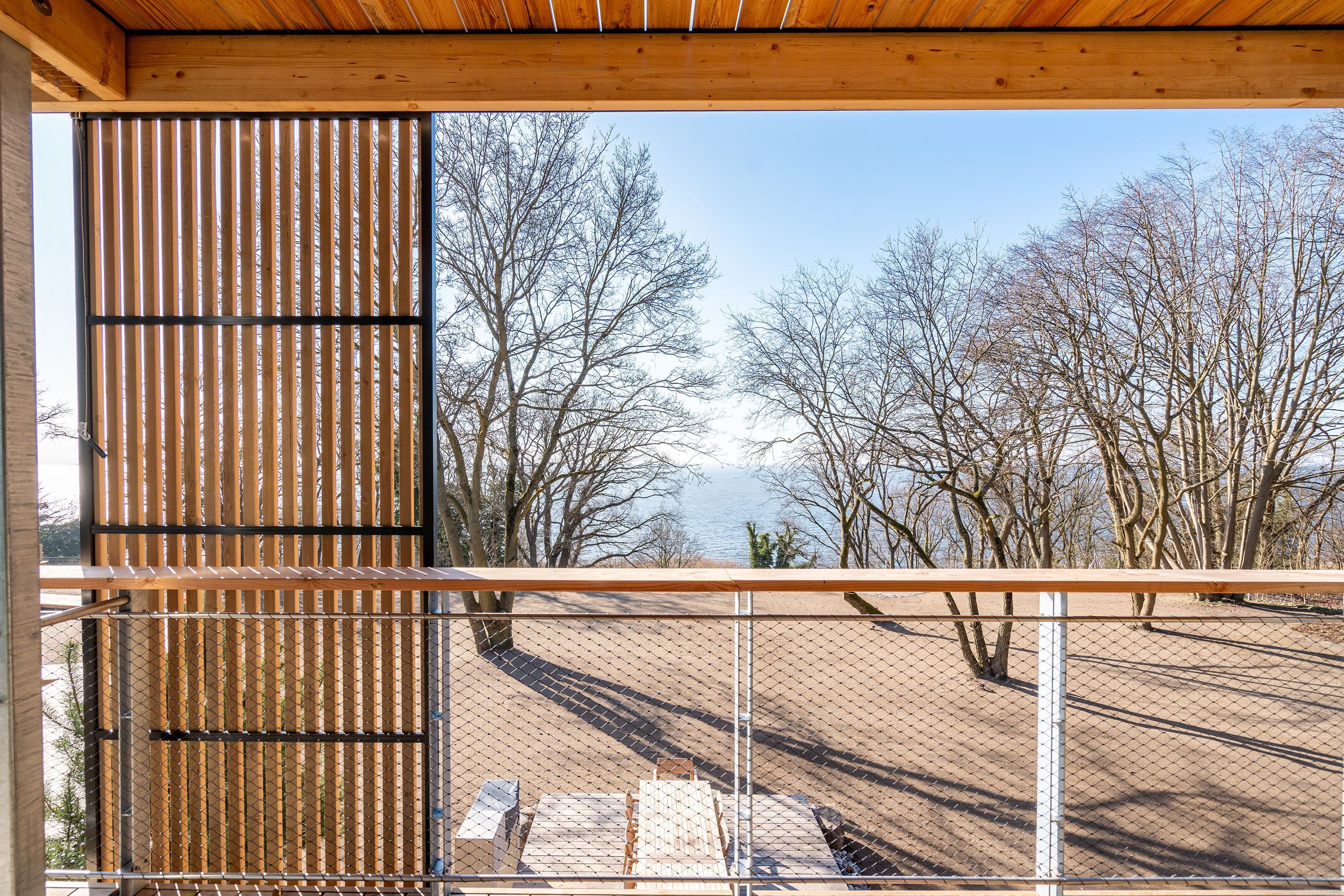 In dem 300 Quadratmeter großen Seminar- und Gästehaus mit großzügiger Außenanlage können bis zu 16 Personen nebst einem Kleinkind im Kinderreisebett beim Arbeiten oder Feiern, gemeinsam die Zeit genießen. In dieser besonderen Location kommen Bewohner nicht nur runter, sondern auf schöpferische Ideen voller Rhythm and Blues. Denn in der modernen Architektur des Hauses aus Stahl, Beton und Holz stecken jede Menge Reminiszenzen an die großen Künstler des Rockn Roll. Die Liebe zum musikalischen Detail steckt in vielen Kleinigkeiten. Wer mit offenen Augen durchs Haus schlendert, wird garantiert inspiriert. Legen Sie doch eine Platte auf dem Plattenspieler auf und träumen Sie sich in die Klänge großartiger Songs.Ein großer und offener Wohnbereich im Erdgeschoss ist perfekt dafür gemacht, Produktivität und Freizeit miteinander zu verbinden. Auch für große Familientreffen ist die Küstenkiste bestens geeignet. Im loftähnlichen Gemeinschaftsbereich lässt es sich wunderbar feiern, essen, gemeinsam kochen oder einfach nur zusammensitzen und das Leben genießen. Der Wohnbereich mit Ledersofas, Kamin und Klavier, der Essbereich mit riesiger Holztafel, die sich auch bestens zum Brainstormen, Diskutieren und Pläneschmieden eignet, und die supermoderne Küche sorgen für ein Gefühl von Freiheit und Nähe, von Unbeschwertheit und dem Fokus auf das Wesentliche. Auch im Innenhof und auf der Sonnenterrasse mit Grill laden zwei große Tafeln zum gemeinsamen Essen und Entspannen ein. Die Küche ist mit allem ausgestattet, was man sich für das Kochen in Gesellschaft nur wünschen kann. Sie verfügt über einen 6-Platten-Induktionsherd, einen Backofen sowie eine Mikrowelle-Backofen-Kombination. Auch mit 16 Mitbewohnern ist der Abwasch kein Problem. Denn den übernehmen zwei große Geschirrspüler. In den Schränken und in einem Serviceraum mit Waschmaschine, Trockner und zusätzlichem Kühl- und Gefrierschrank findet sich viel Stauraum für alle brauchbaren Utensilien, die dank Beschriftung, leicht zu finden sind. Die Gäste wohnen in acht Studios zwei im Erdgeschoss, sechs im 1. Obergeschoss mit Doppelbett, Kleiderschrank, Flat-TV, eigenem Tageslicht-Duschbad und separatem WC. Drei der Schlafzimmer verfügen über einen Zugang zum Balkon mit Haffblick. Aber auch alle anderen Zimmer haben aus dem Bett einen Blick ins Grüne. Jedes Zimmer ist einem anderen Musikgenie gewidmet. Entscheiden Sie selbst, ob Sie sich und ihre Träume lieber von Janis Joplin, Joni Mitchel oder von Bob Dylan beflügeln lassen wollen. Im Obergeschoss gibt es einen weiteren Loungebereich mit Flat-TV und Zugang zum Balkon. In einem Fitnessraum kann man sich an den hochwertigen Geräten der Firma Nohrd wunderbar auspowern, um anschließend in der Sauna oder im Whirlpool, die Energieakkus wieder aufzuladen. Doch das eigentliche Highlight des Anwesens ist der weitläufige Garten mit Beachvolleyballfeld auf echtem Strandsand, lauschigen Eckchen zum Sitzen, einem Hot Tub und einer großen Chillterrasse mit Haffblick. Parkplätze und eine Wallbox für Elektroautos (gegen Gebühr) gibt es vor dem Haus. Tierliebe Gäste können gegen Aufpreis bis zu zwei ihrer Lieblinge mitbringen.