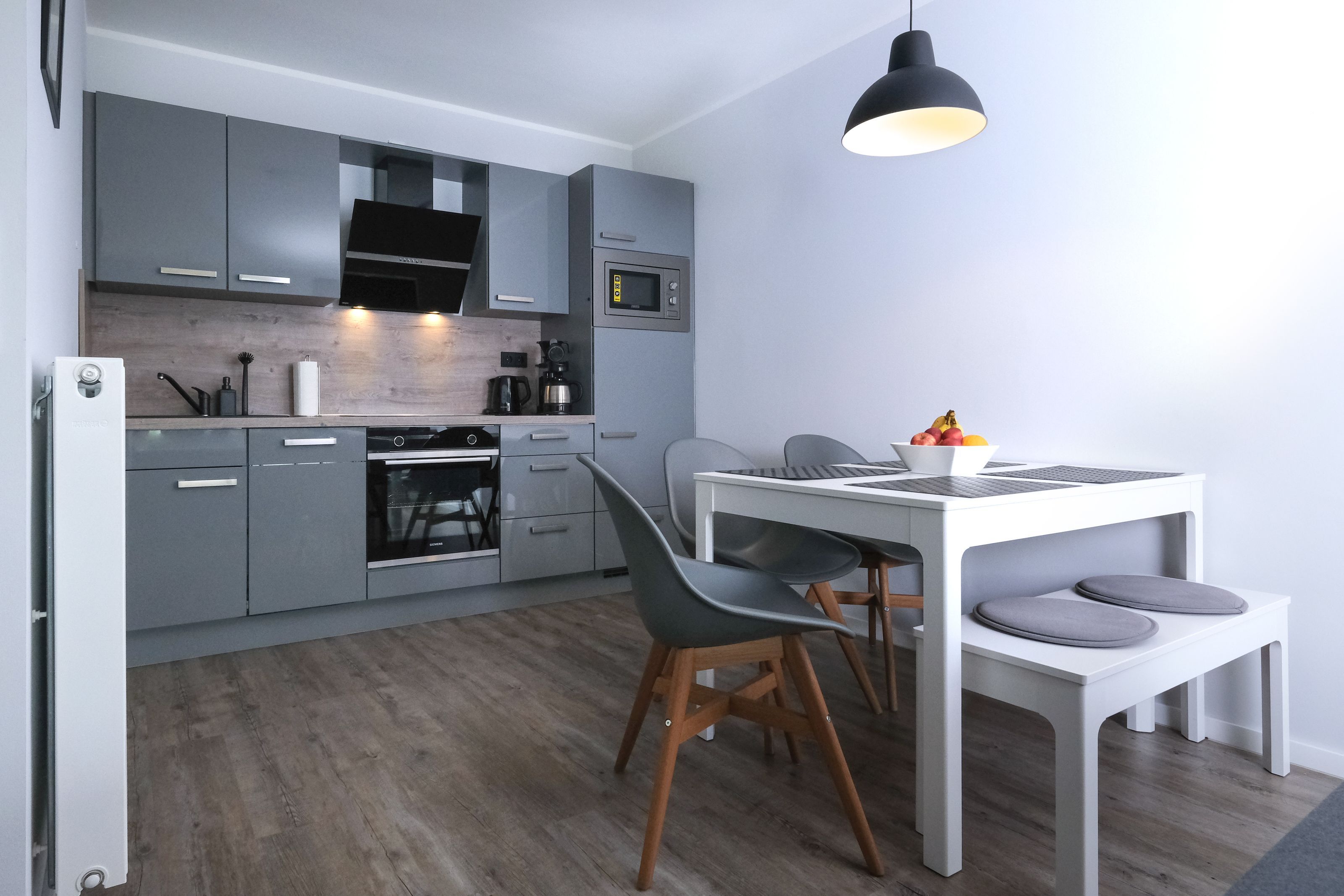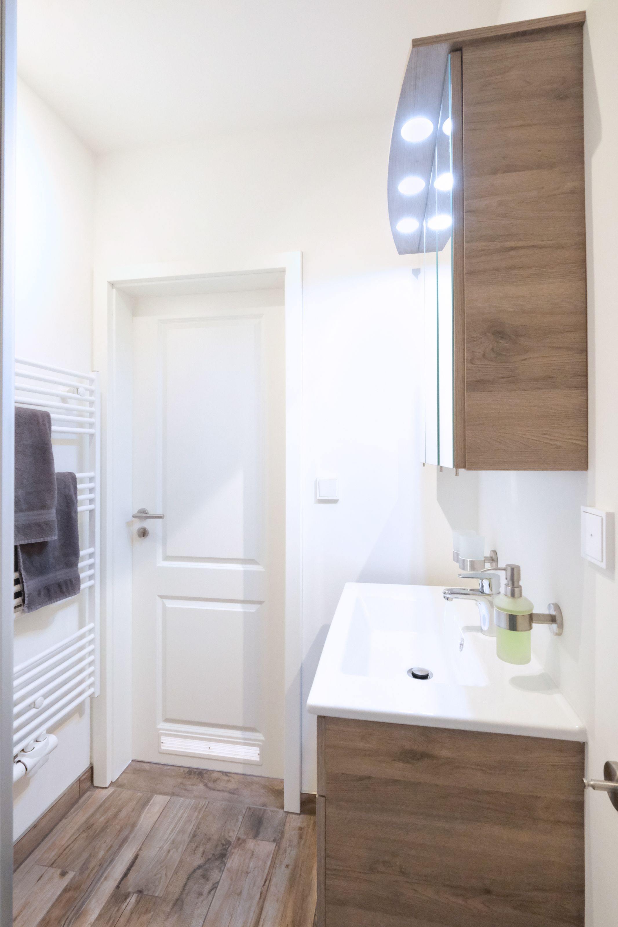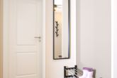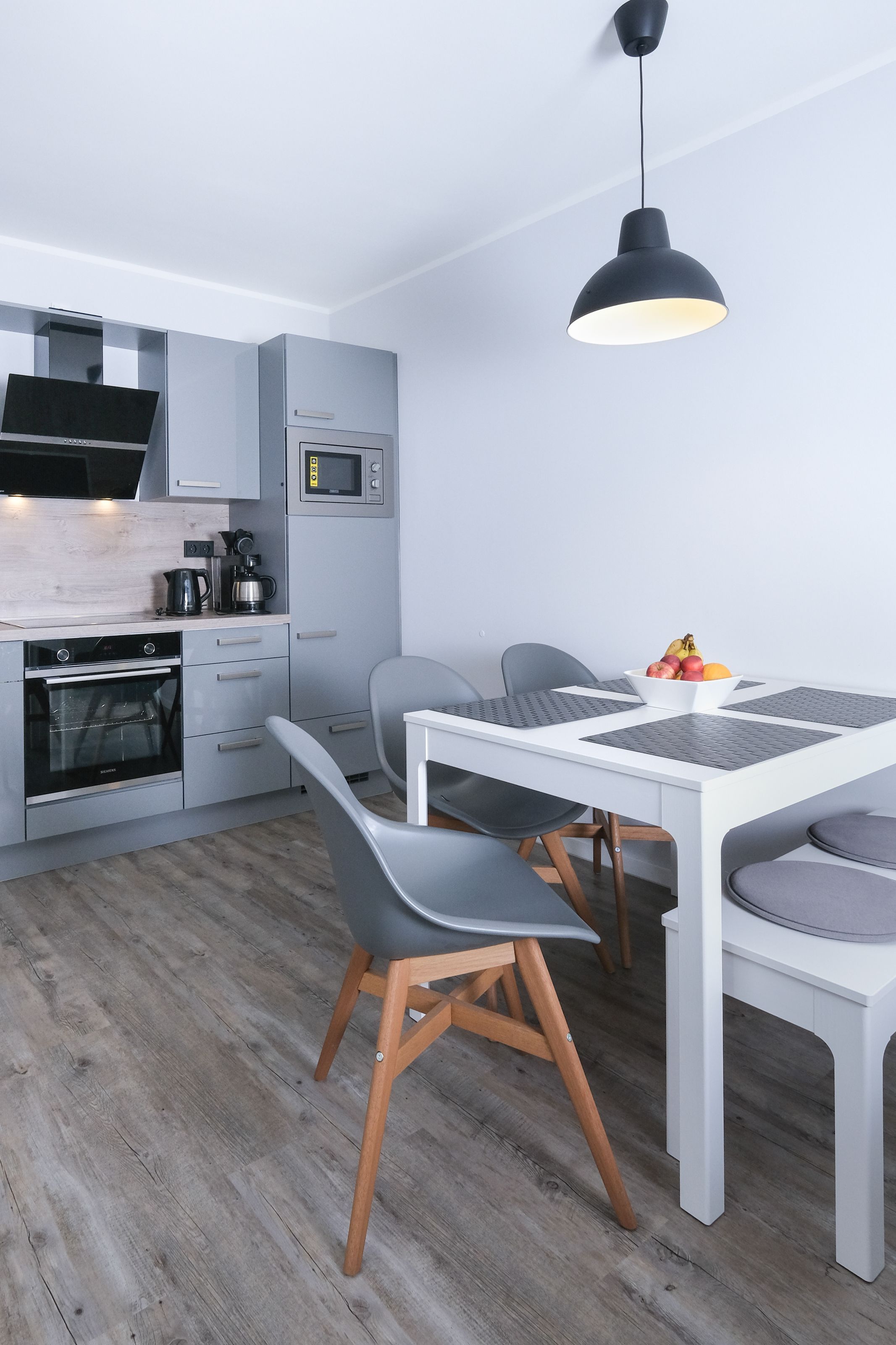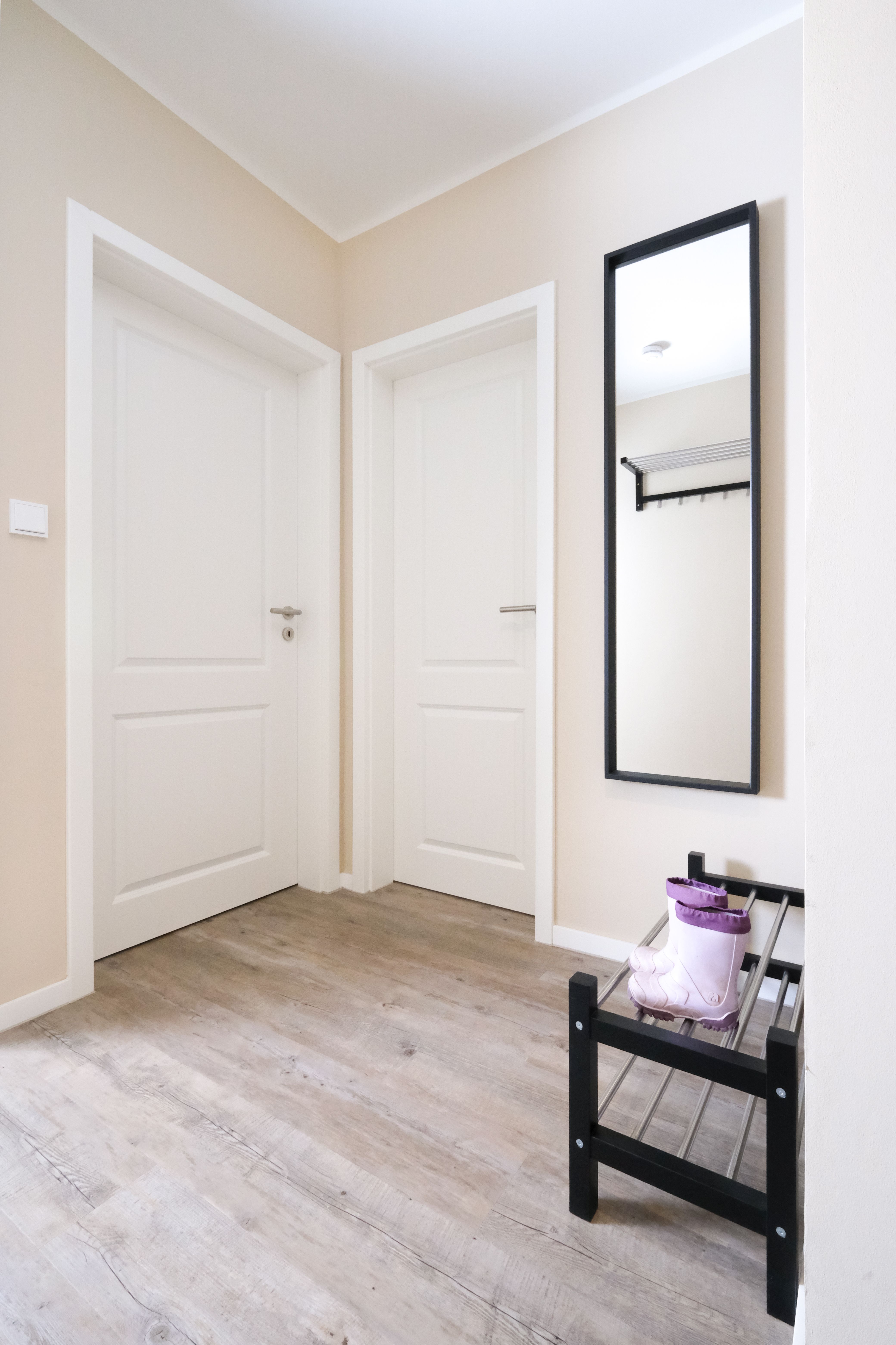 Die Wohnung Nr. 2 im Friesenhuus Carolinensiel verfügt über einen geräumigen Flur mit Garderobe und gewährt Zutritt zum modernen Badezimmer mit WC, Waschtisch, bodengleicher Dusche und Fön. Den Mittelpunkt der Wohnung stellt der offen gestalte Wohn- und Essbereich mit großer Fensterfront zu Terrasse und Garten dar. Hier lädt eine gemütliche Couch-Ecke mit Sessel zum Verweilen ein. Für die passende Unterhaltung sorgen Gesellschaftsspiele, ein Flachbild-TV mit Smart-TV, Blu-ray-Player und Hi-Fi-System. Die hochwertige Küchenzeile ist voll ausgestattet und verfügt über eine Spülmaschine, einen Backofen mit Cerankochfeld, eine Mikrowelle, einen großen Kühlschrank mit separatem Gefrierfach, eine Kaffeemaschine (wahlweise Pad oder Filter), einen Wasserkocher, Toaster u.v.m. Am Esstisch finden bis zu 5 Personen Platz.