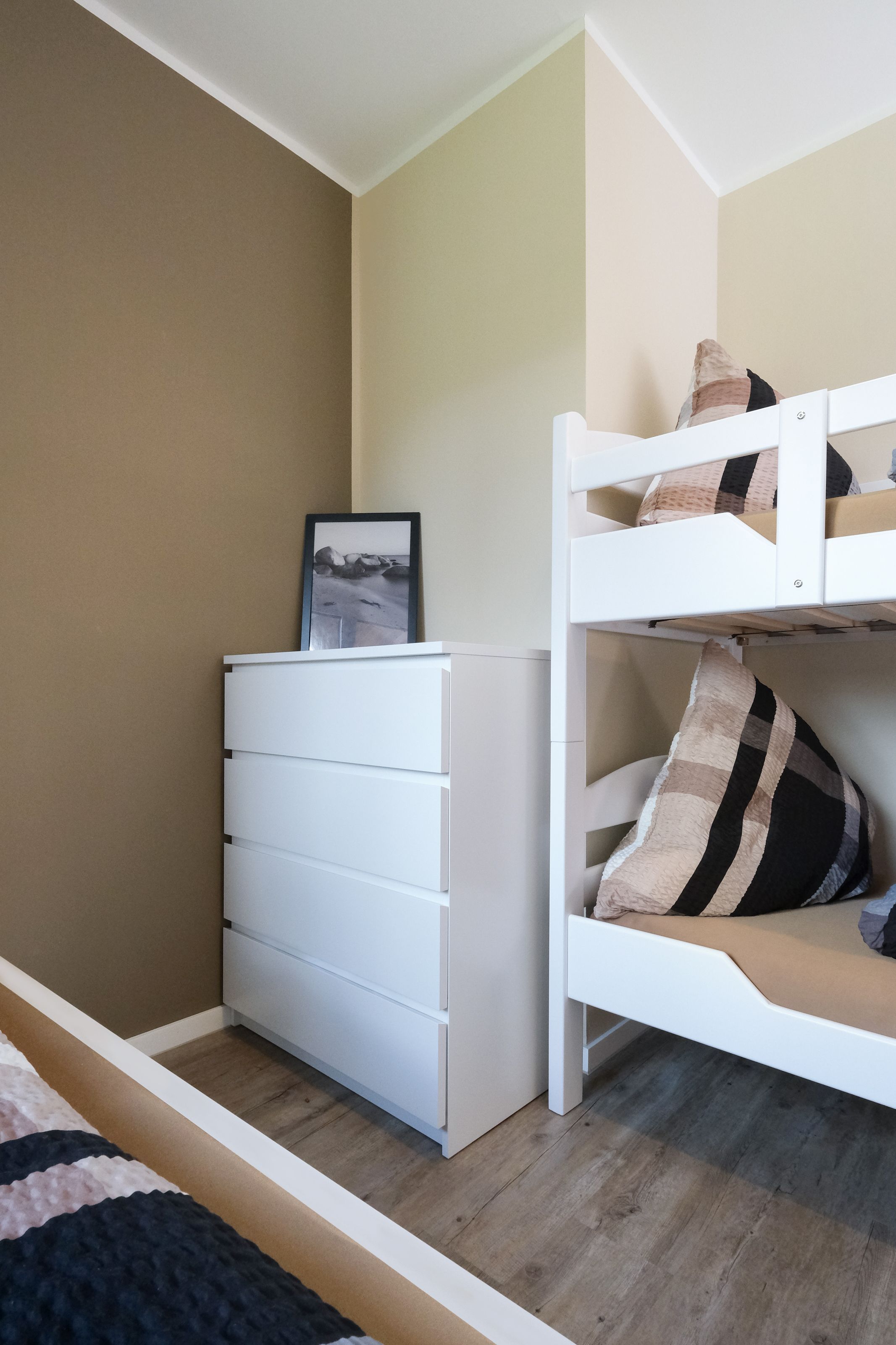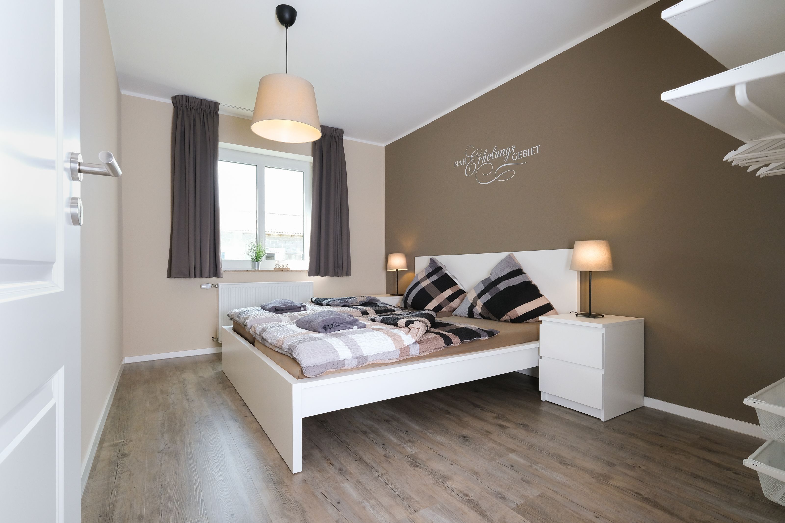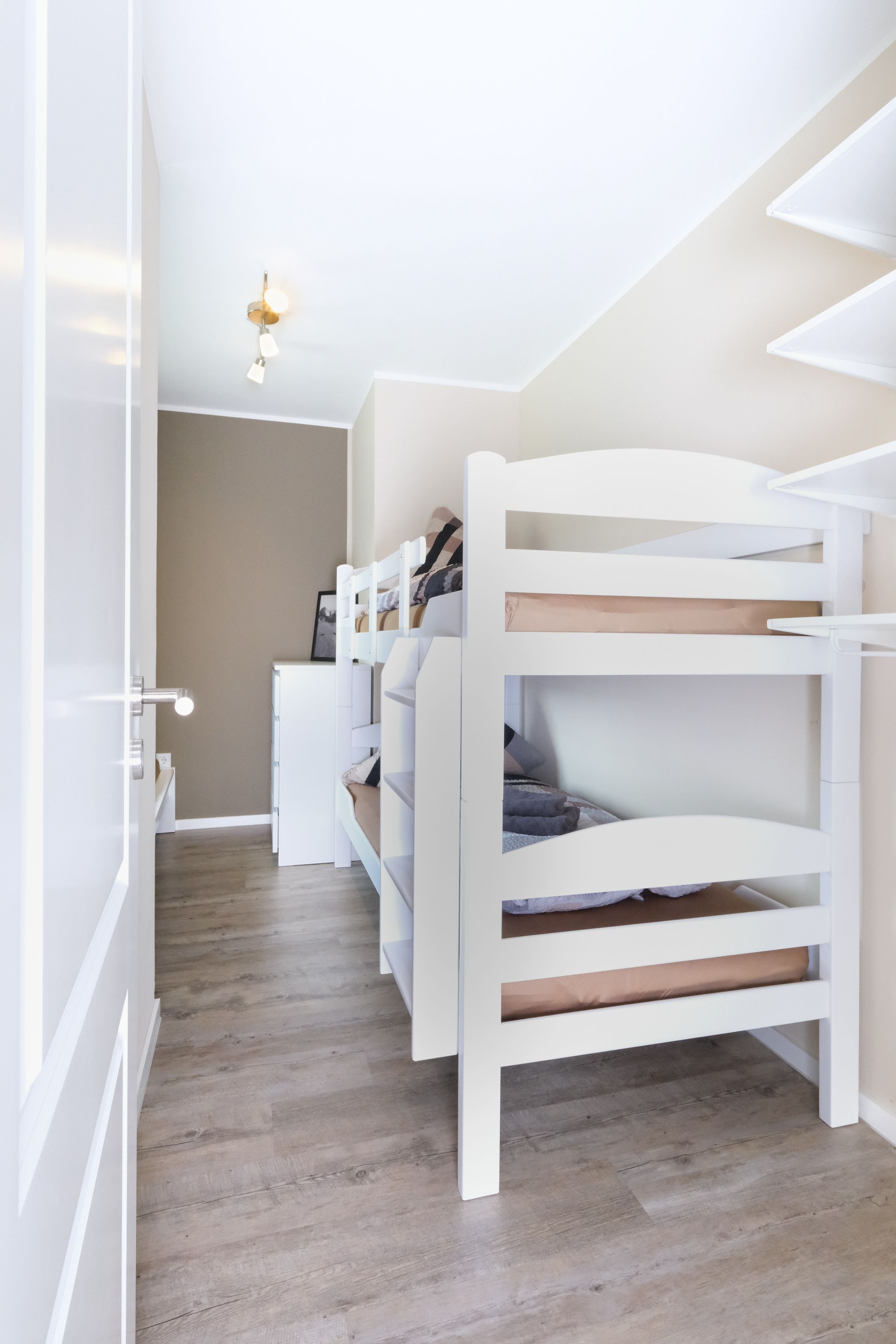 Das Elternschlafzimmer ist großzügig geschnitten und bietet Ihnen einen direkten Blick in den Garten. Es ist mit einem Doppelbett (180x200) mit offenem Fußende ausgestattet. Im zweiten Schlafzimmer steht Ihnen ein Einzelbett und ein Etagenbett (je 90x200) zur Verfügung. Damit ist das Schlafzimmer für 2 Erwachsene oder 3 Kinder optimal ausgelegt. Beide Schlafzimmer verfügen über einen Wandschrank und Verdunklungsmöglichkeiten.