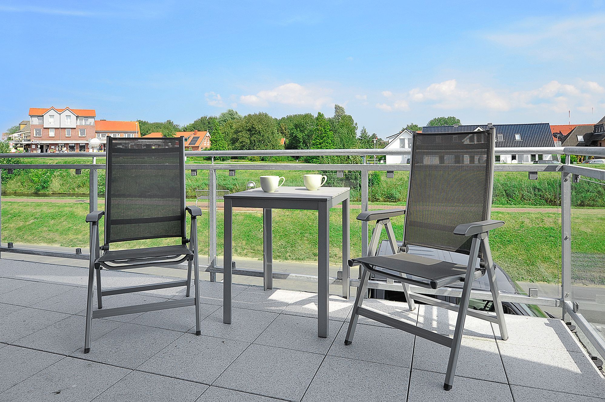 Das besondere Highlight der Ferienwohnung Deichblick ist der einzigartige Blick vom Balkon über das Benser Tief bis zum Siel.