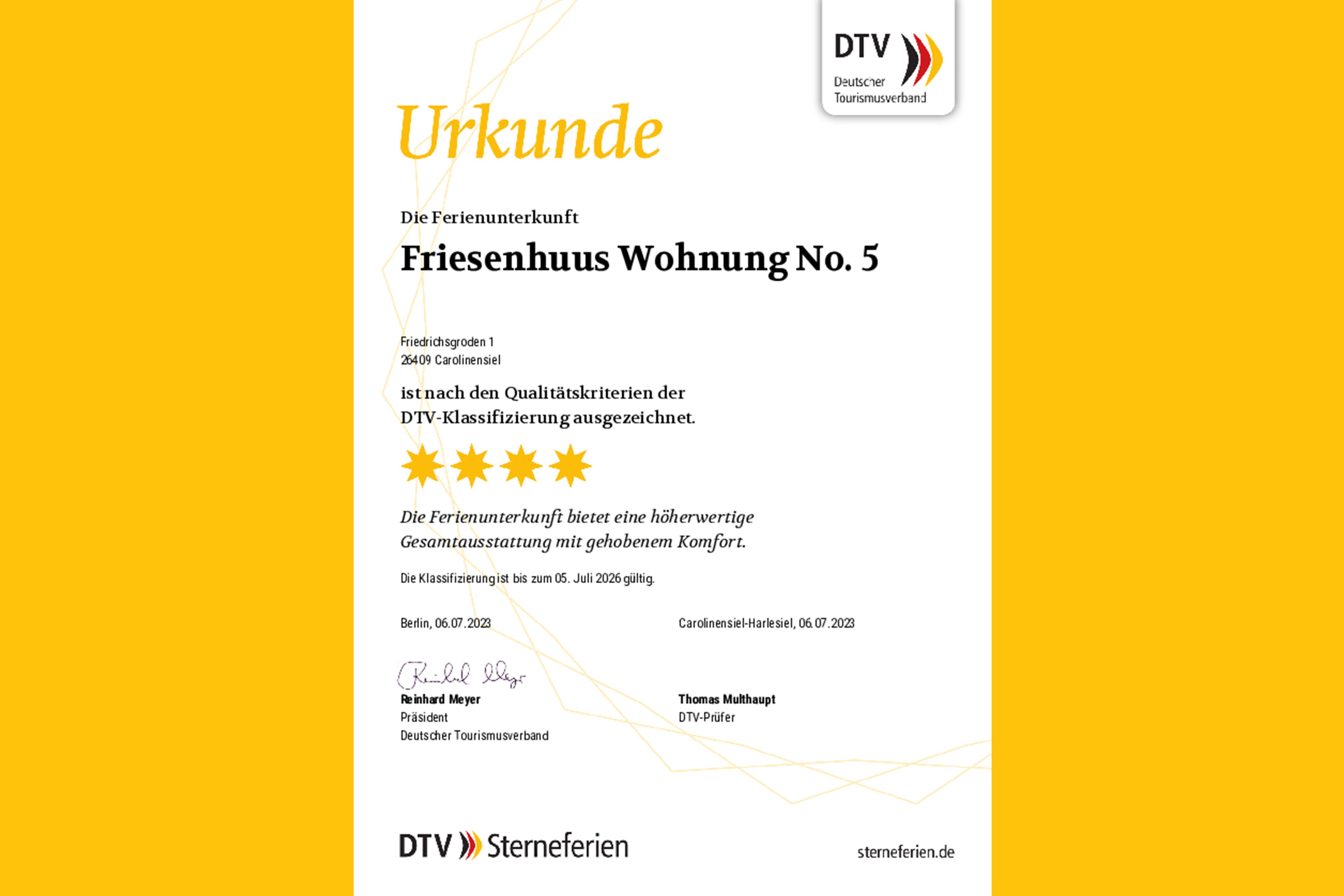 Im 1. OG des Hauses befindet sich die Ferienwohnung Friesenhuus Carolinensiel Nr. 5. Nach einer zweijährigen Kernsanierungsphase steht die moderne Ferienwohnung seit 2023 Urlaubsgästen als Ferienunterkunft zur Verfügung und verspricht modernes, maritimes Flair und gehobenen Komfort.