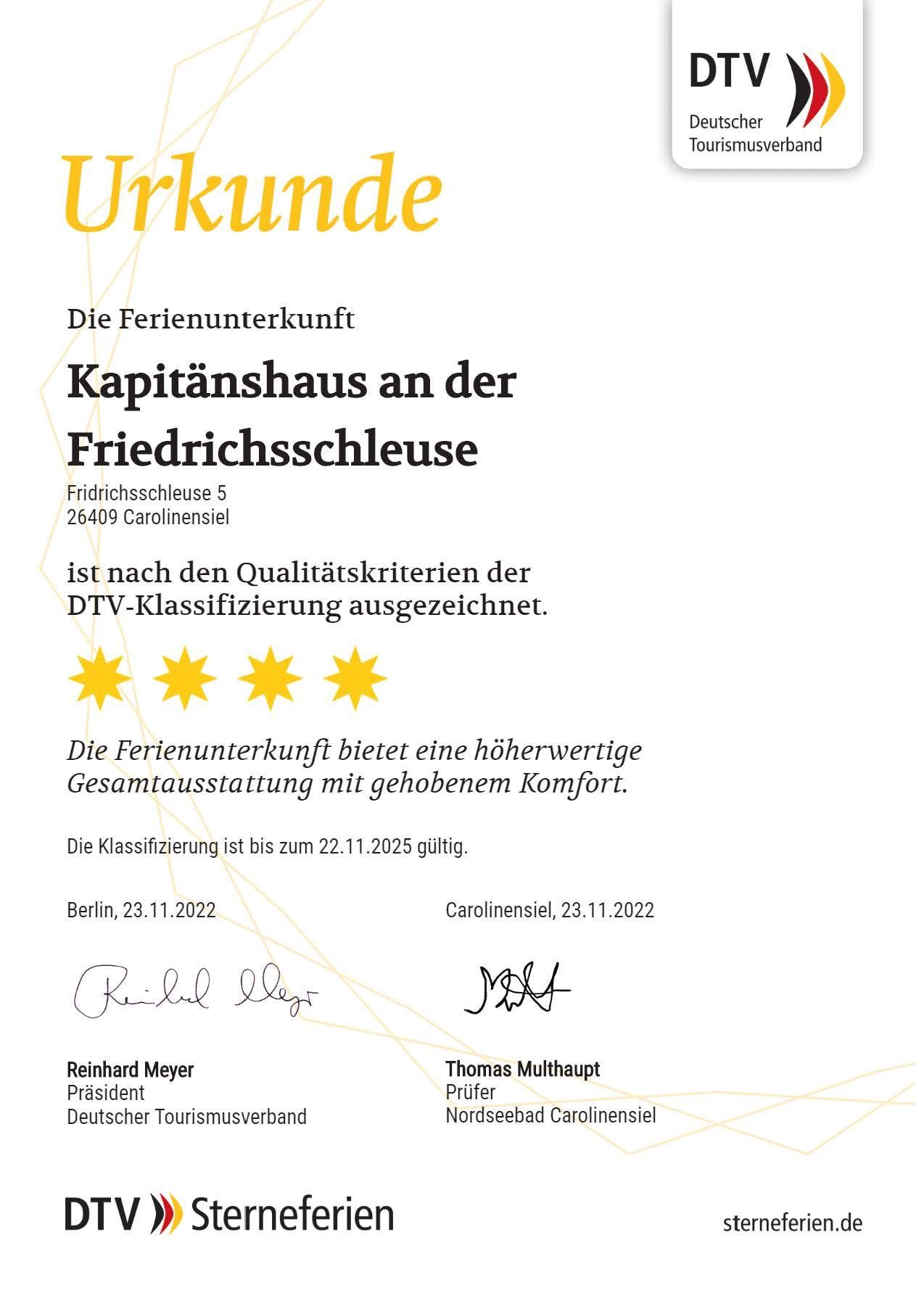 Das Kapitänshaus an der Friedrichsschleuse ist vom Deutschen Tourismusverband DTV mit 4 Sternen ausgezeichnet und verspricht gehobenen Komfort und eine erstklassige Ausstattung.