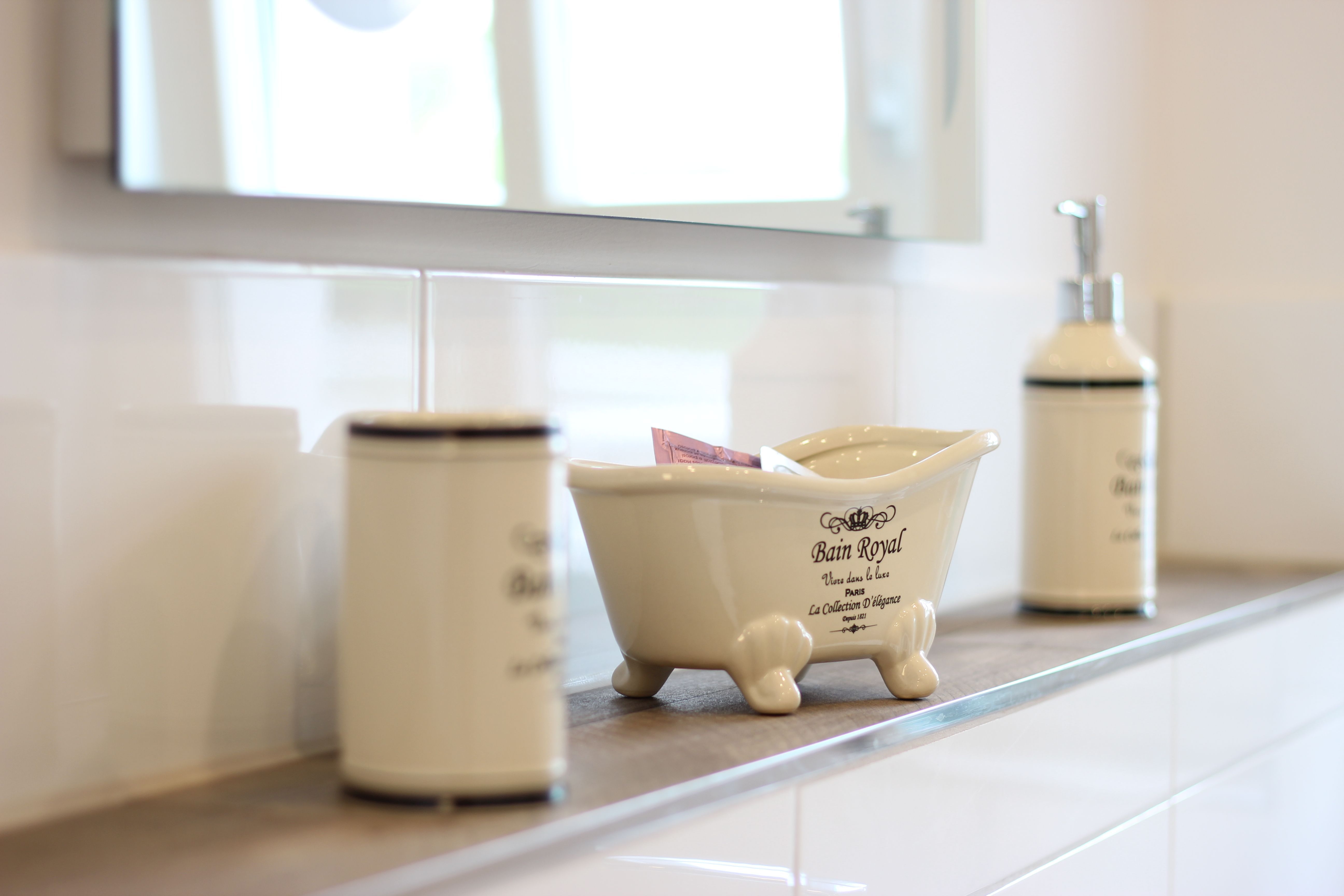 Sowohl im EG als auch im UG finden Sie modernste Wellnessbäder mit hochwertiger Ausstattung: Ebenerdige Regenduschen, Handtuch- und Fußbodenheizung, sowie einer Infrarotsauna für wohltuende Wärme nach einem Tag am Meer.
